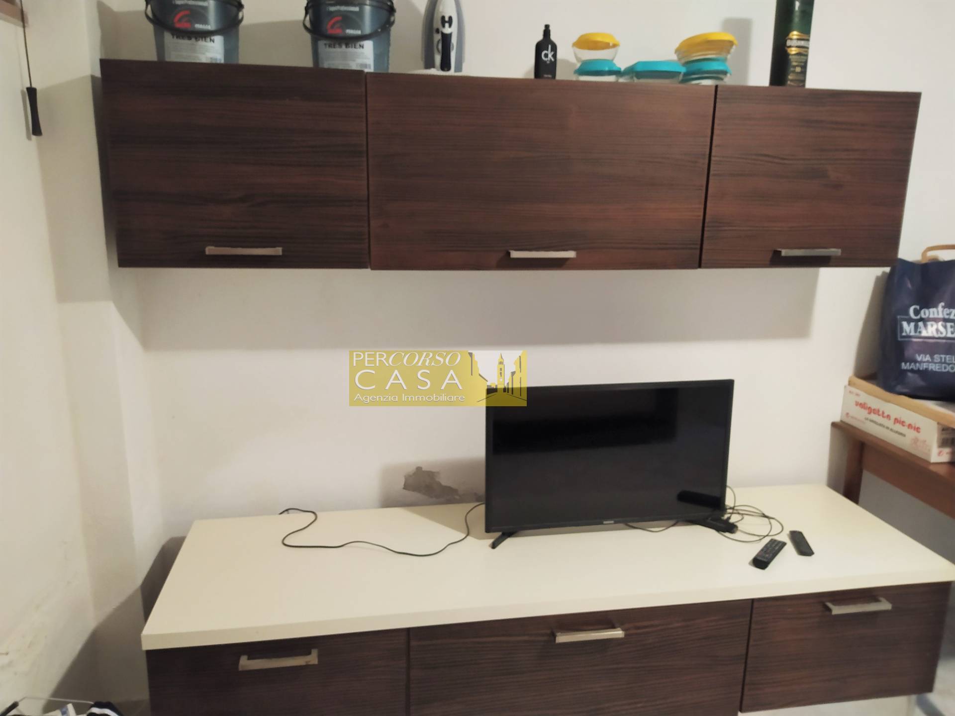 L'appartamento composto da un ampio soggiorno con angolo cottura, disimpegno, camera matrimoniale e bagno con doccia.