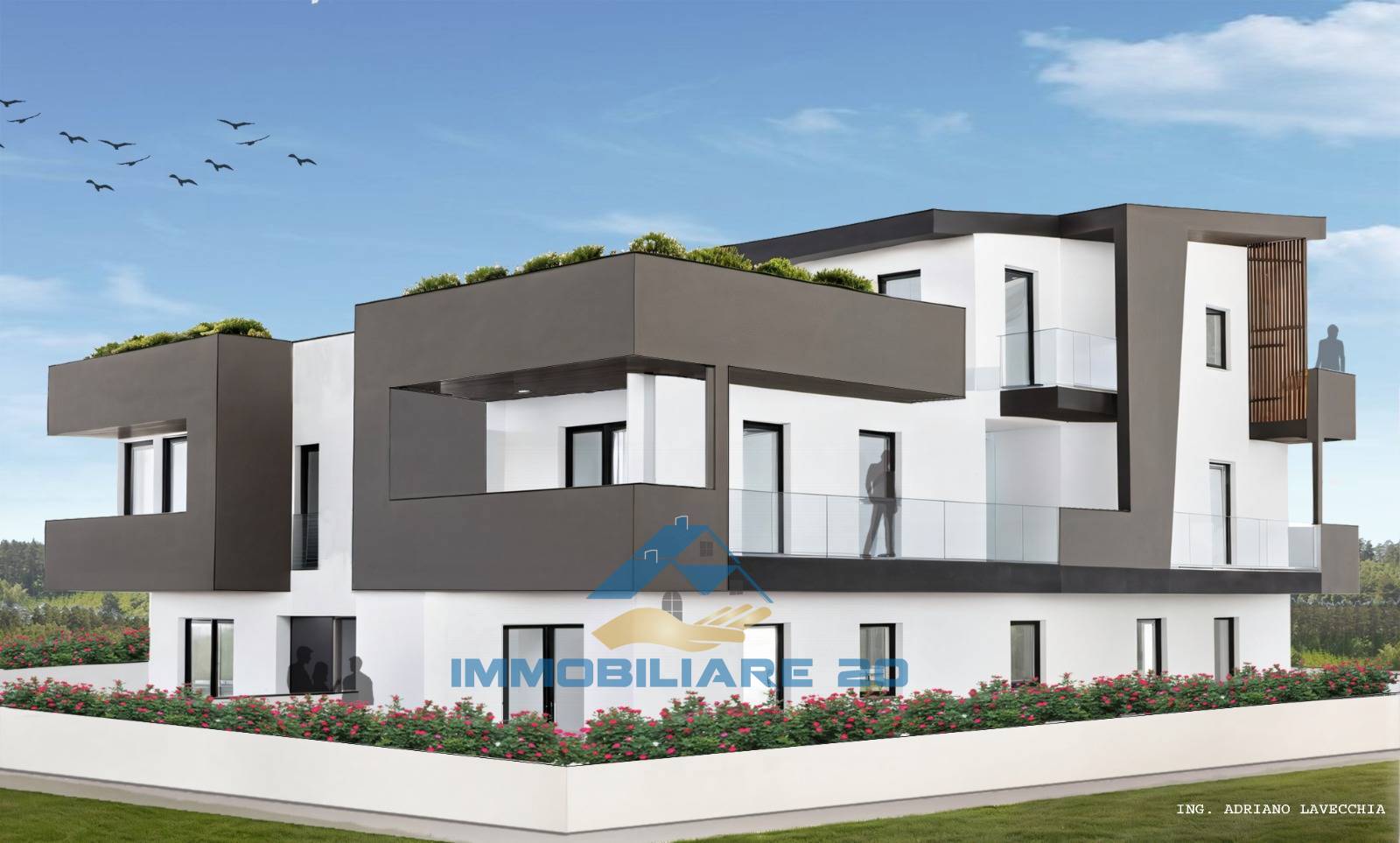RIF. V1223: in VENDITA a Teramo, zona Piano D'Accio (nei pressi del nuovo stadio, del centro commerciale Gran Sasso e della nuova facolt di veterinaria) cinque appartamenti in palazzina IN COSTRUZIONE (consegna entro fine 2025) Piano terra: Due appartamenti di mq 100 con pranzo soggiorno, due camere, due bagni, giardino privato di mq 160 Piano primo: Due appartamenti di mq 90 con pranzo soggiorno, due camere, due bagni, ampi balconi Piano secondo: Superattico di mq 120 con soggiorno, cucina ad angolo cottura, tre camere, due bagni, terrazzo di mq 90 con piscina Completano gli appartamenti box auto e fondaci al piano seminterrato.