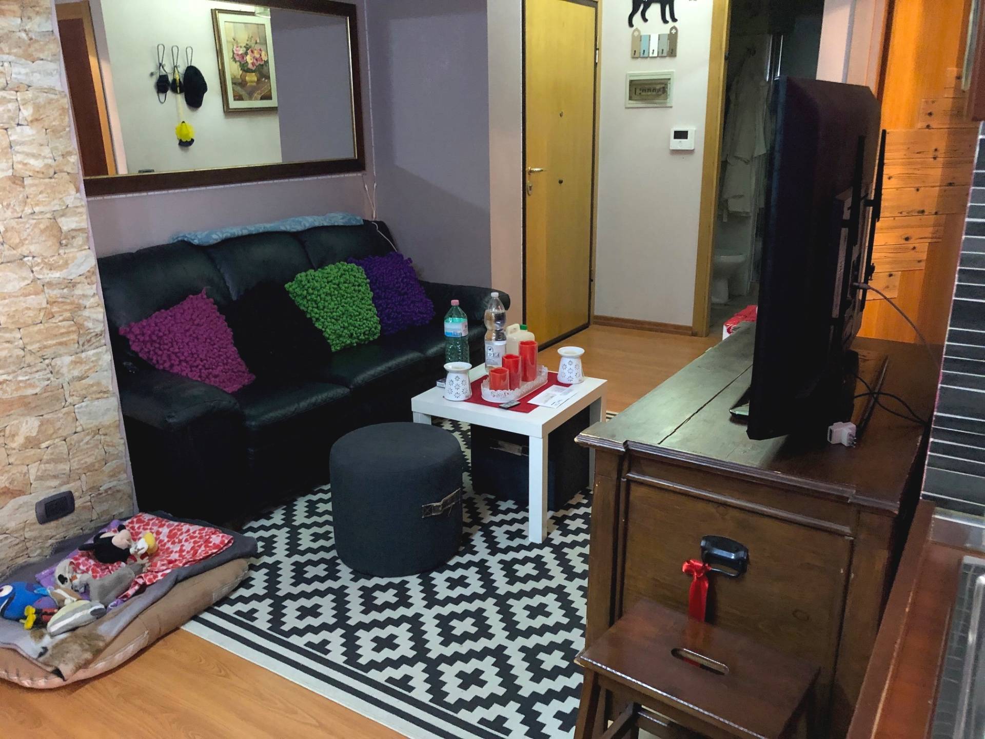 Appartamento con cortile composto da soggiorno con cucina a vista, 1 camera doppia, 1 piccola camera singola ed 1 bagno cieco con doccia e aspiratore ampio cortile di 44 mq. con lavapanni impianto di riscaldamento con radiatori in ghisa dotate di valvole termostatiche, termostato interno e comandati da caldaia da esterno ad incasso impianto di aria condizionata in zona giorno ed in zona notte impianto TV satellitare box singolo al piano seminterrato di 19 mq. con cancello condominiale elettrocomandato Contatta l'inserzionista