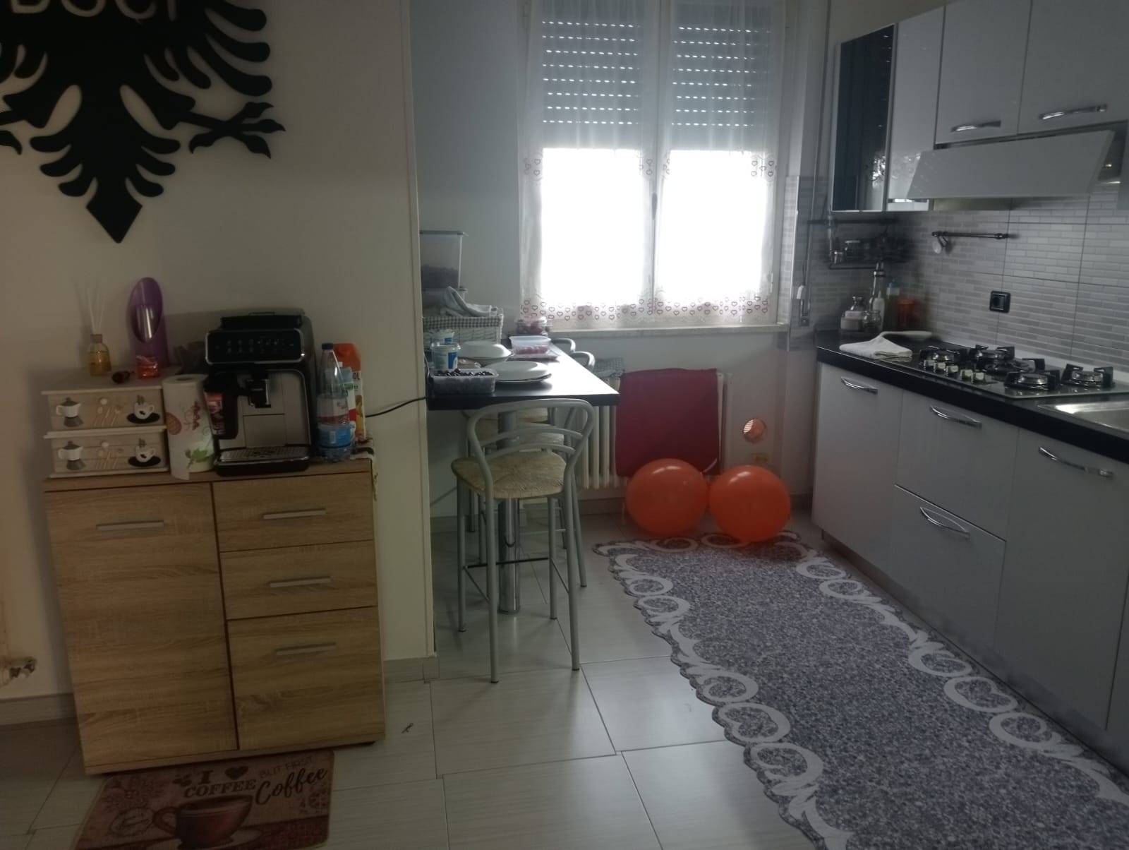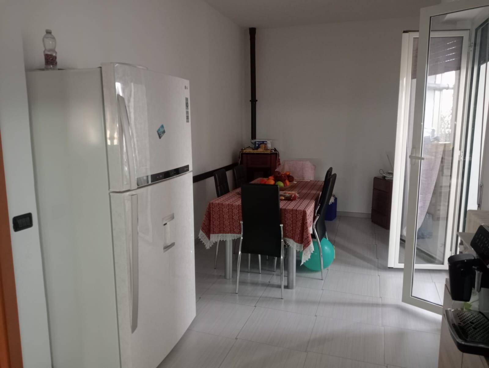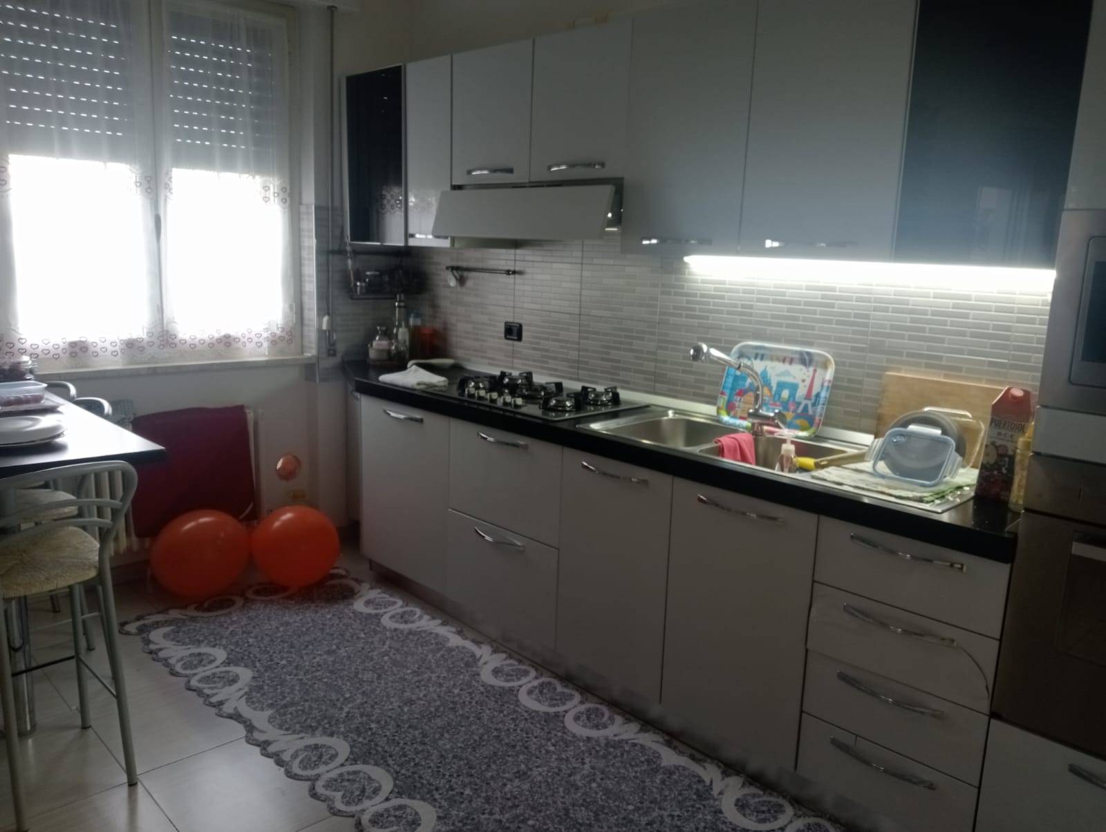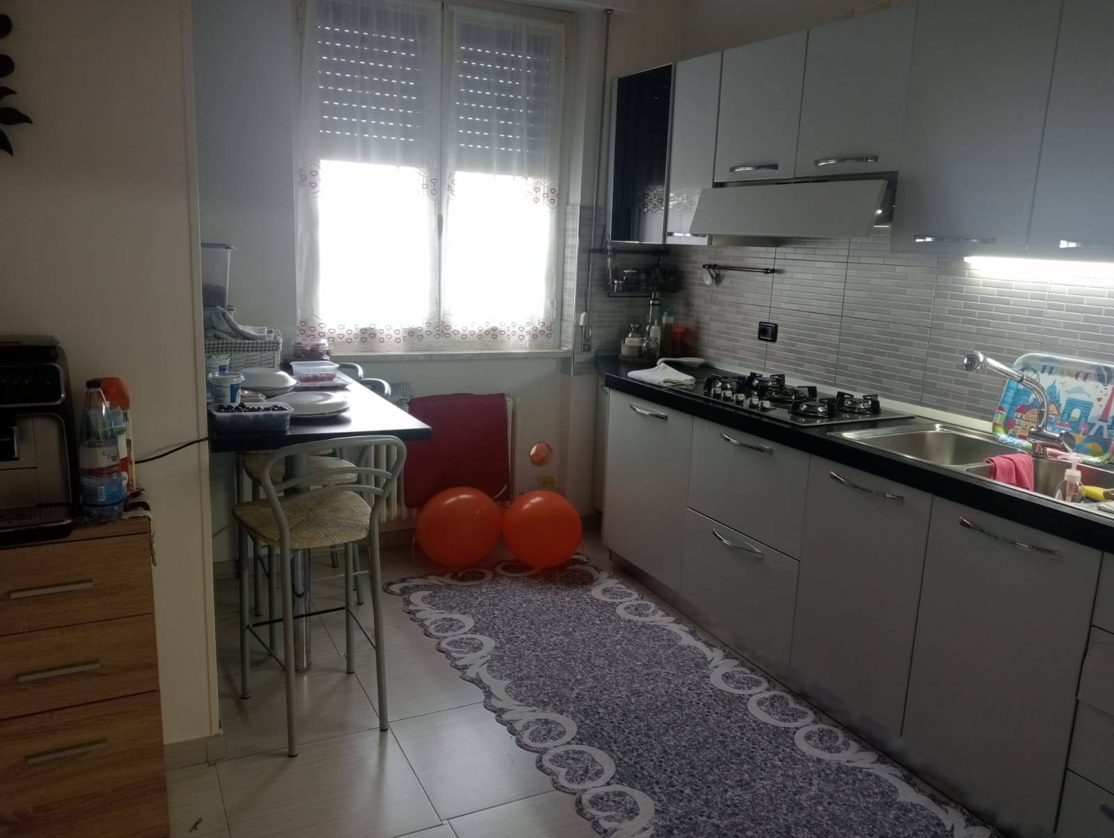 L'appartamento composto da un ingresso che si apre su una luminoso soggiorno con una ampia vetrata che ci permette di accedere ad un balcone, una cucina abitabile con uscita su un ulteriore balcone.