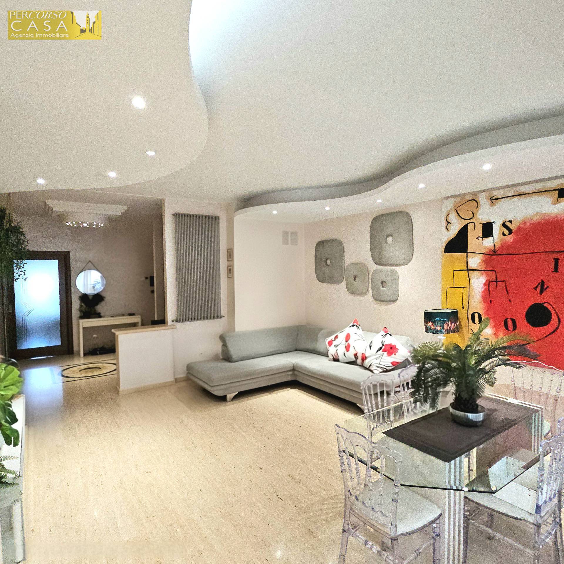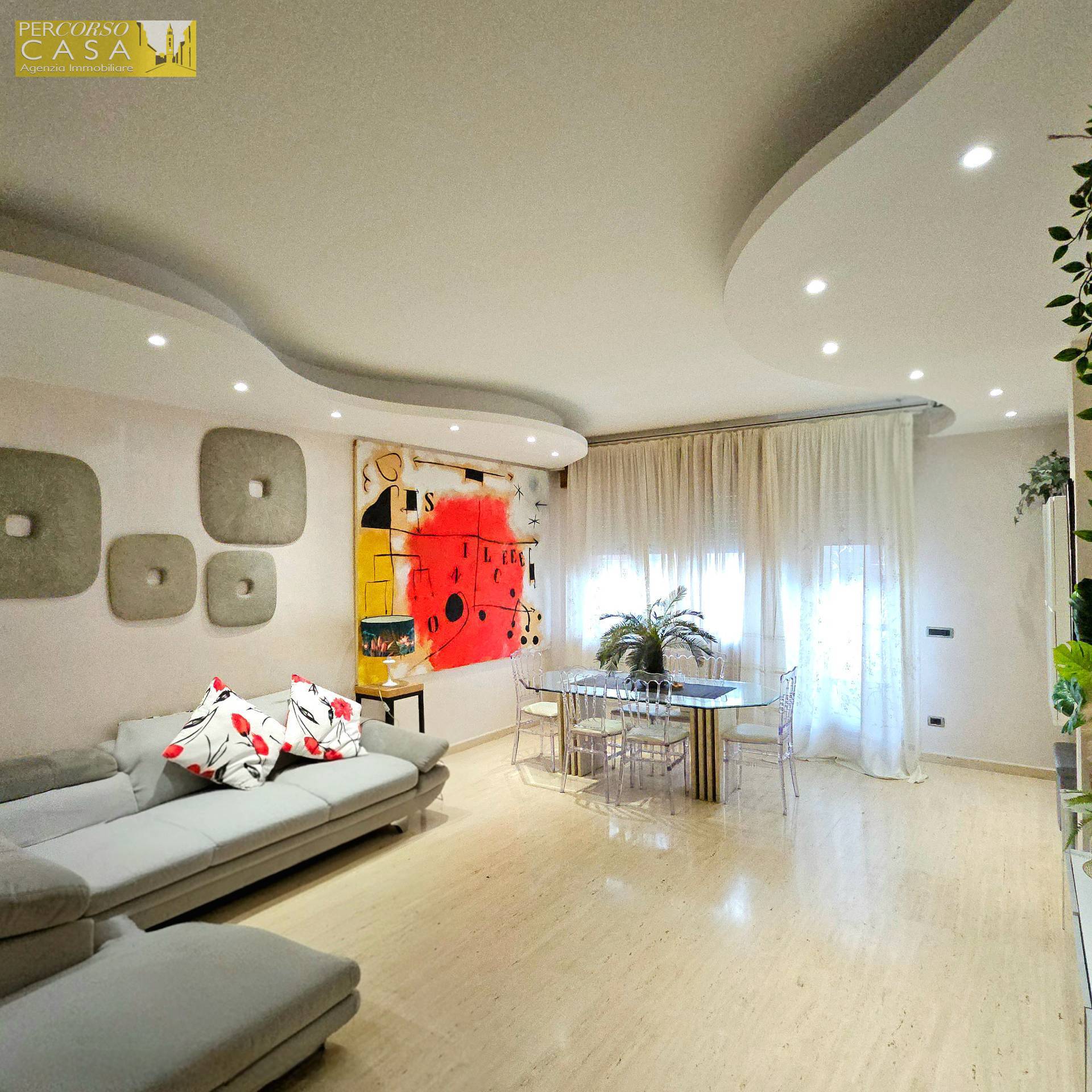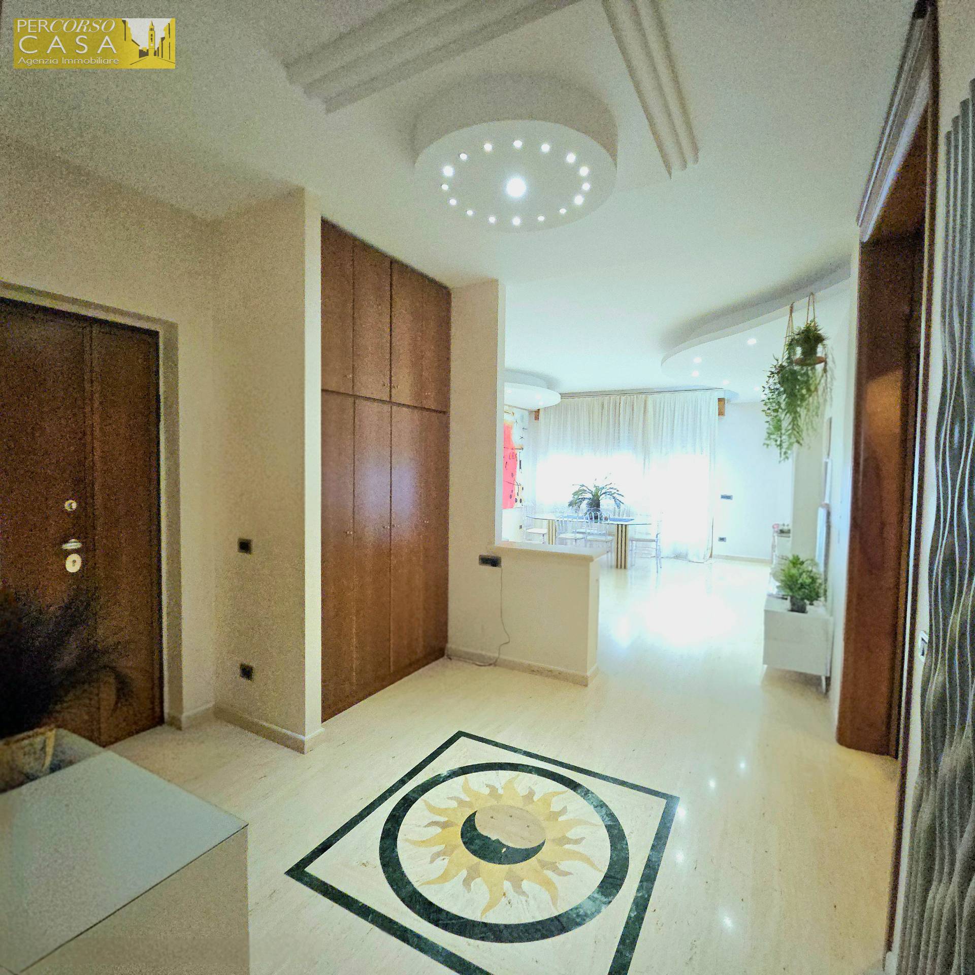 L'appartamento, al 2° piano di un edificio realizzato negli anni 70 dotato di ascensore, presenta le seguenti caratteristiche: - pavimenti in marmo travertino in zona giorno - parquet in zona notte, - infissi legno doppio vetro - porte di design - tapparelle automatizzate - bagni ristrutturati con sanitari sospesi - vasca idromassaggio - termoarredi di design che coniugano funzionalit ed estetica, - controsoffitti in cartongesso ed illuminotecnica - portone blindato - riscaldamento autonomo.