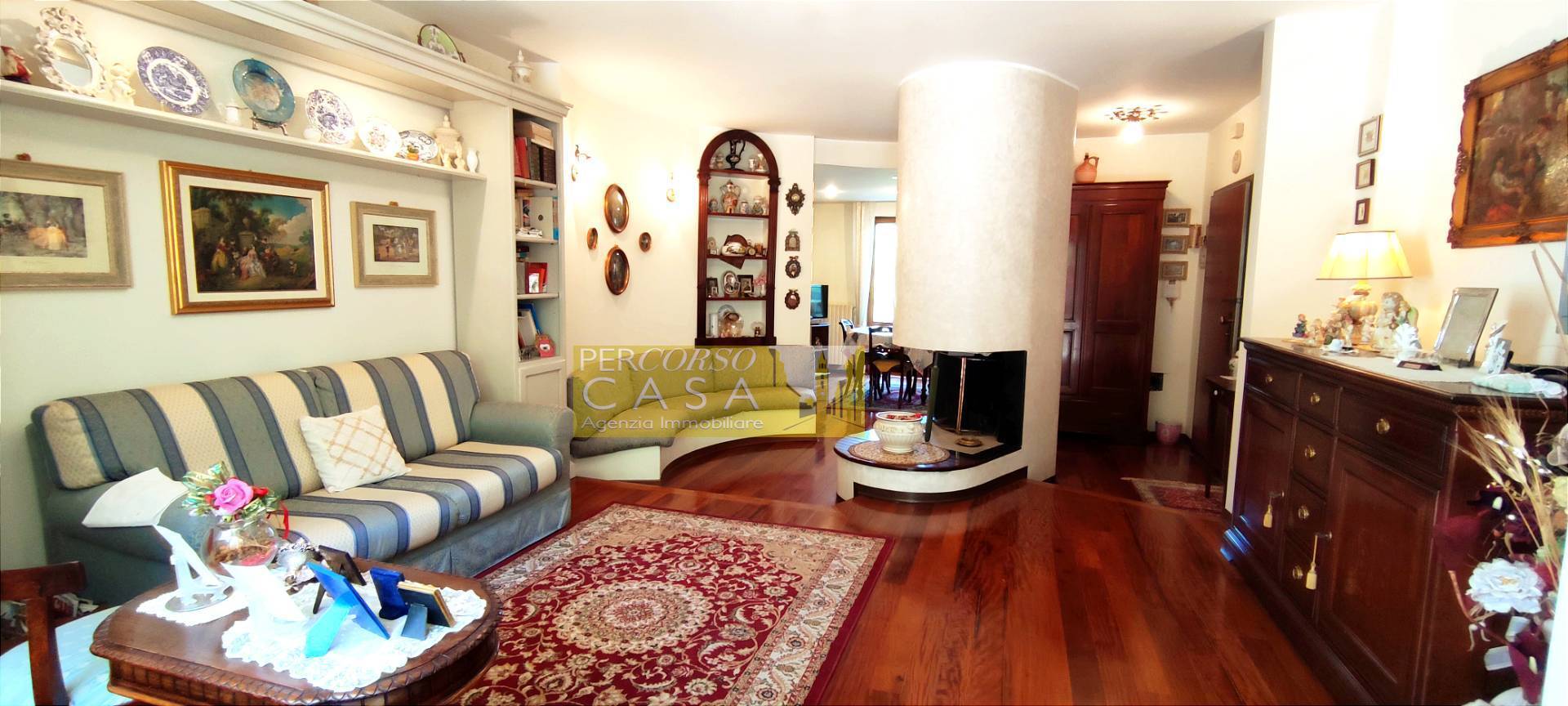 Completano la propriet un box auto doppio con fondaco e taverna dotata di camino bagno, cucina e angolo bar. L'appartamento, al primo piano di un edificio in cemento armato dei realizzato negli anni 80 che ha beneficiato di una recente ristrutturazione esterna nel 2021 e presenta le seguenti caratteristiche: Pavimenti in parquet massello a listoni IPE' (cm. 10 x 120) nella zona giorno e listelli Doussi massello in zona notte; infissi in legno doppio vetro con tapparelle in pvc; riscaldamento autonomo, porta d'ingresso blindata.