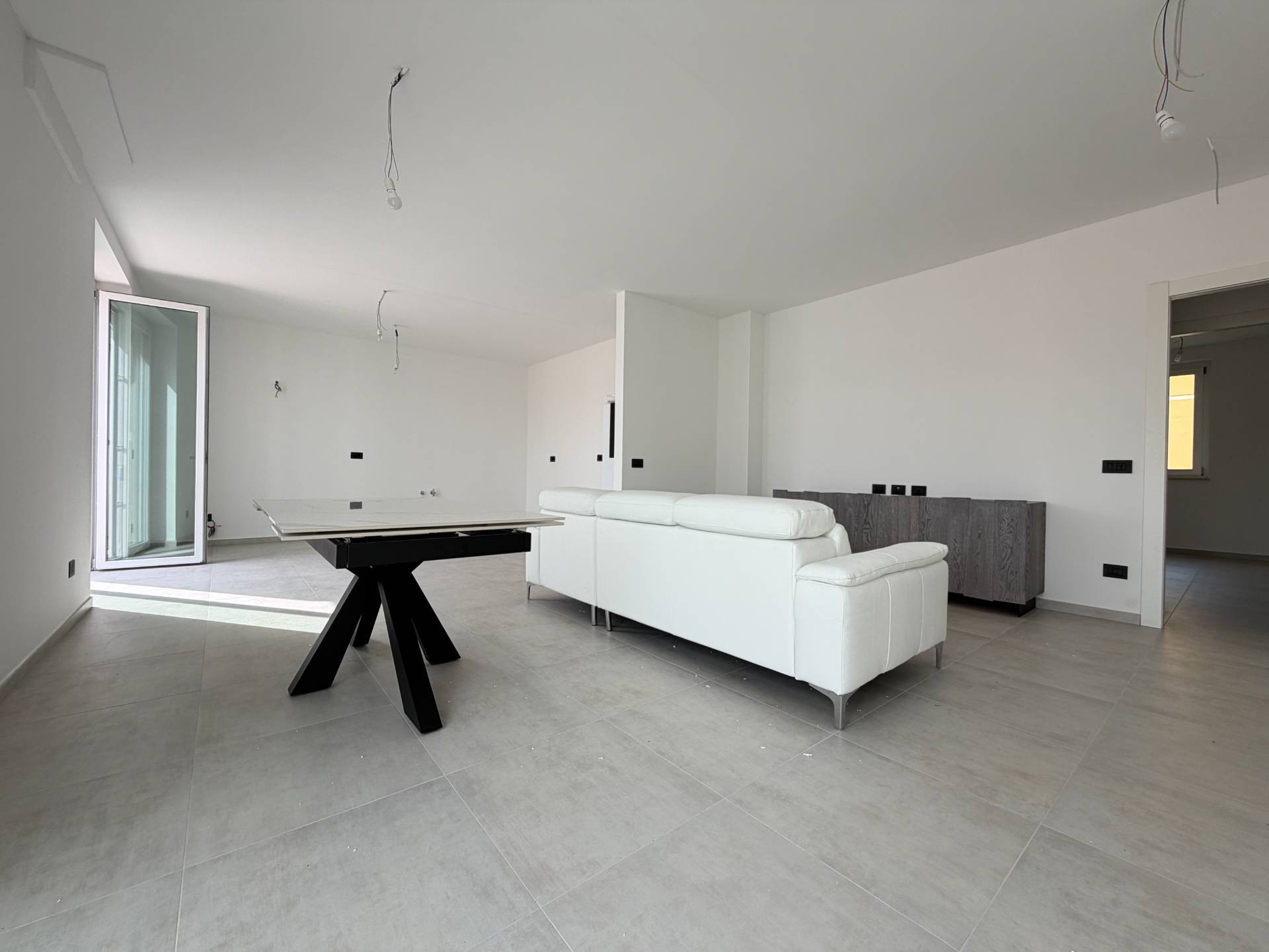 Labitazione si apre su una luminosa zona giorno open space, caratterizzata da unottima esposizione a sud e da un accesso diretto al terrazzo di circa 10 mq, ideale per momenti di relax allaperto.