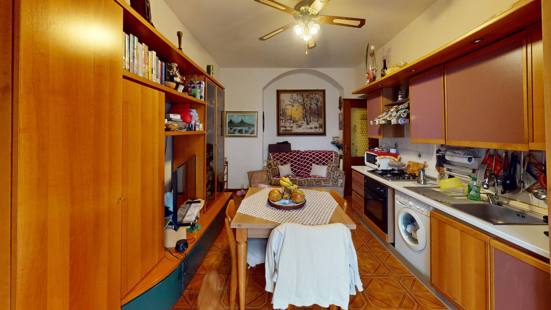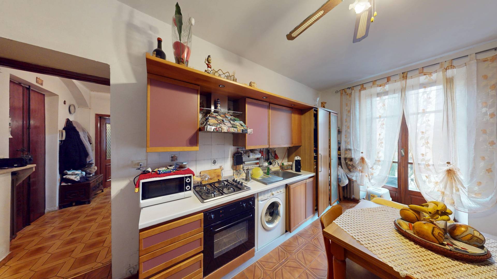 Lalloggio composto da un ingresso su disimpegno, due camere da letto, cucina abitabile e bagno con finestra.