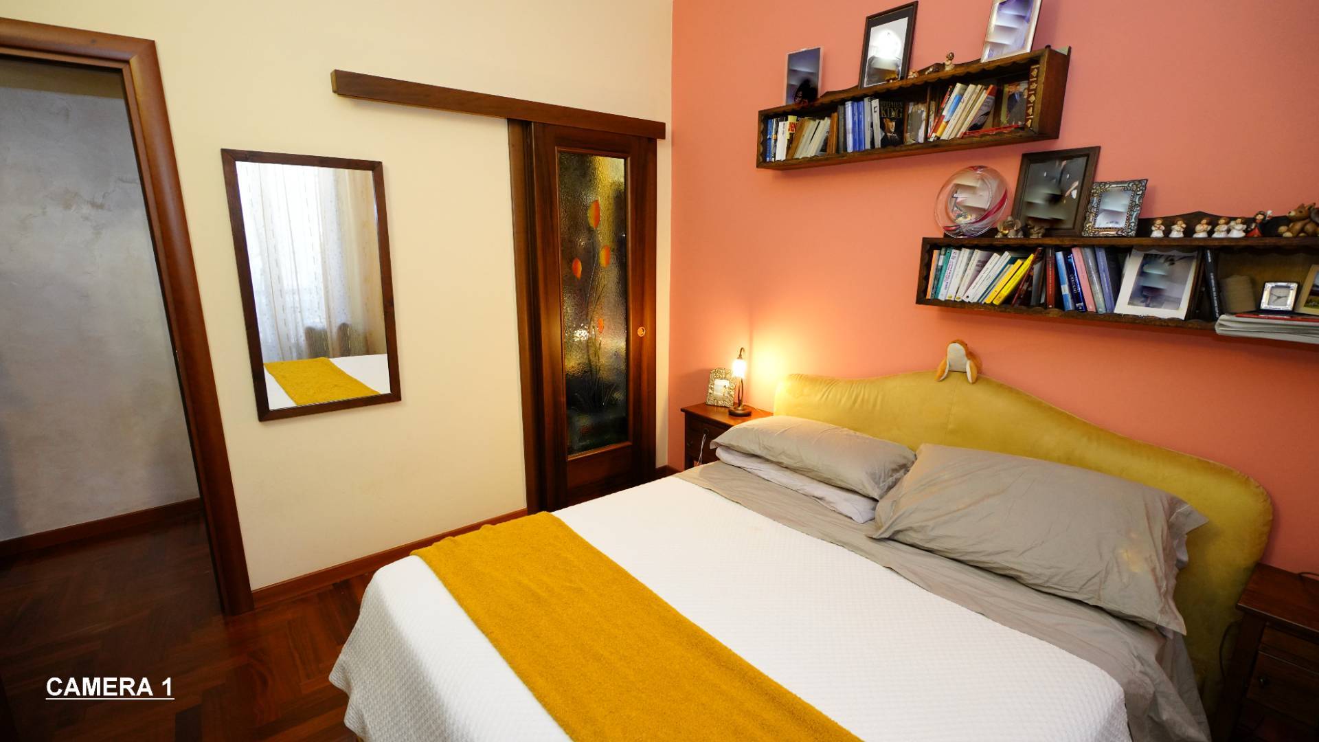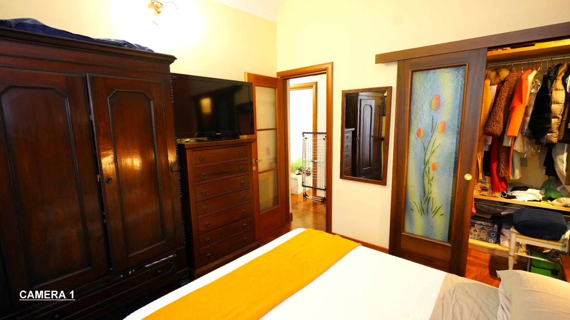 L'ingresso, con porta blindata, si apre su un ampio corridoio che conduce alla zona giorno, composta da un accogliente soggiorno, una cucina abitabile (che volendo pu essere ceduta) e 2 camere da letto, di cui una con armadio cabina.