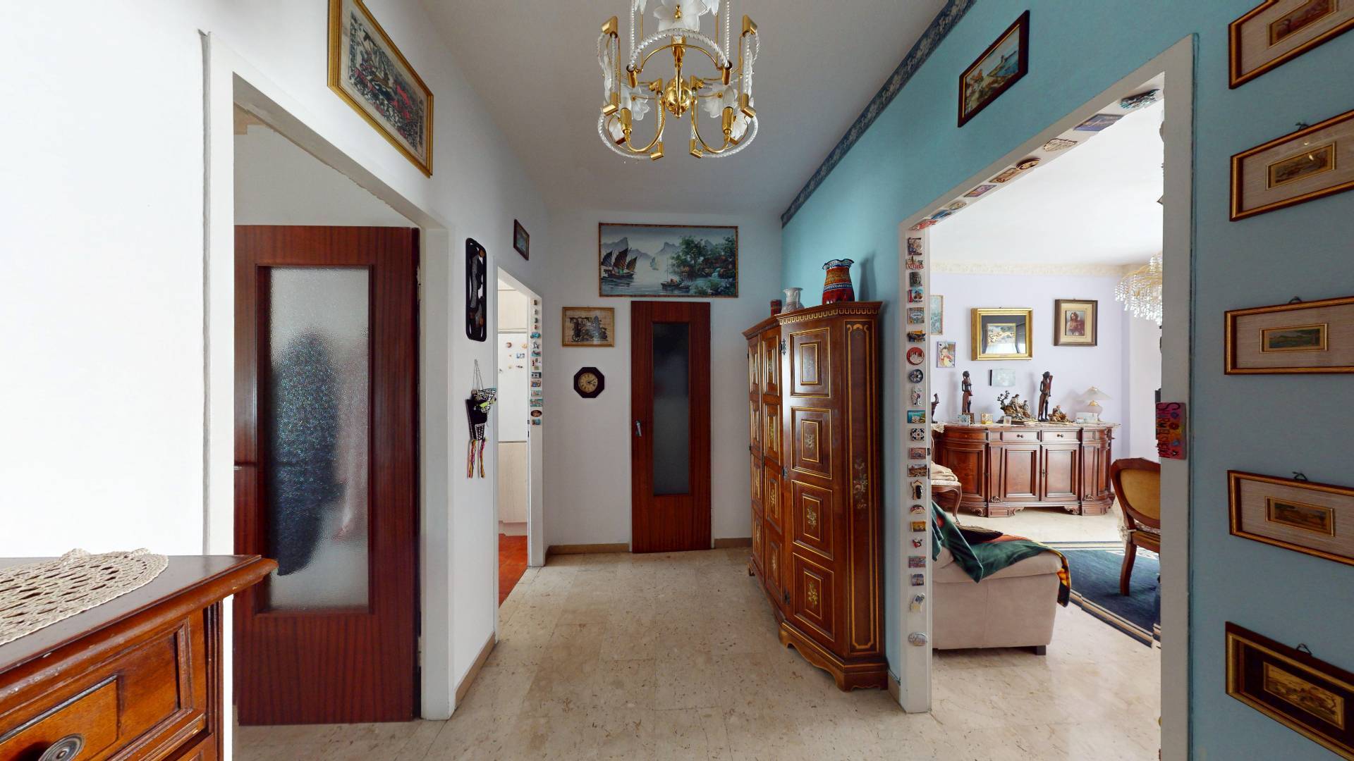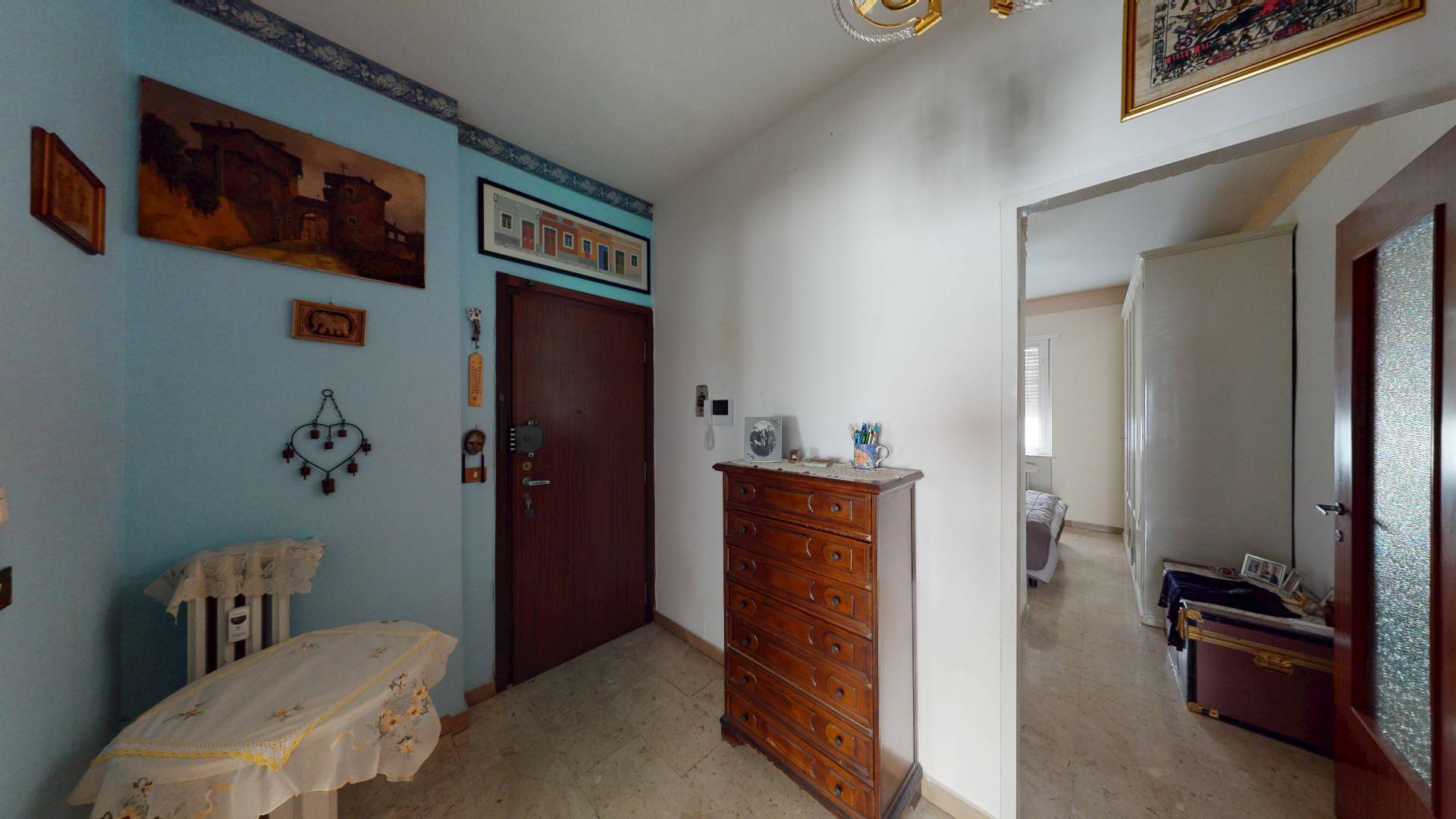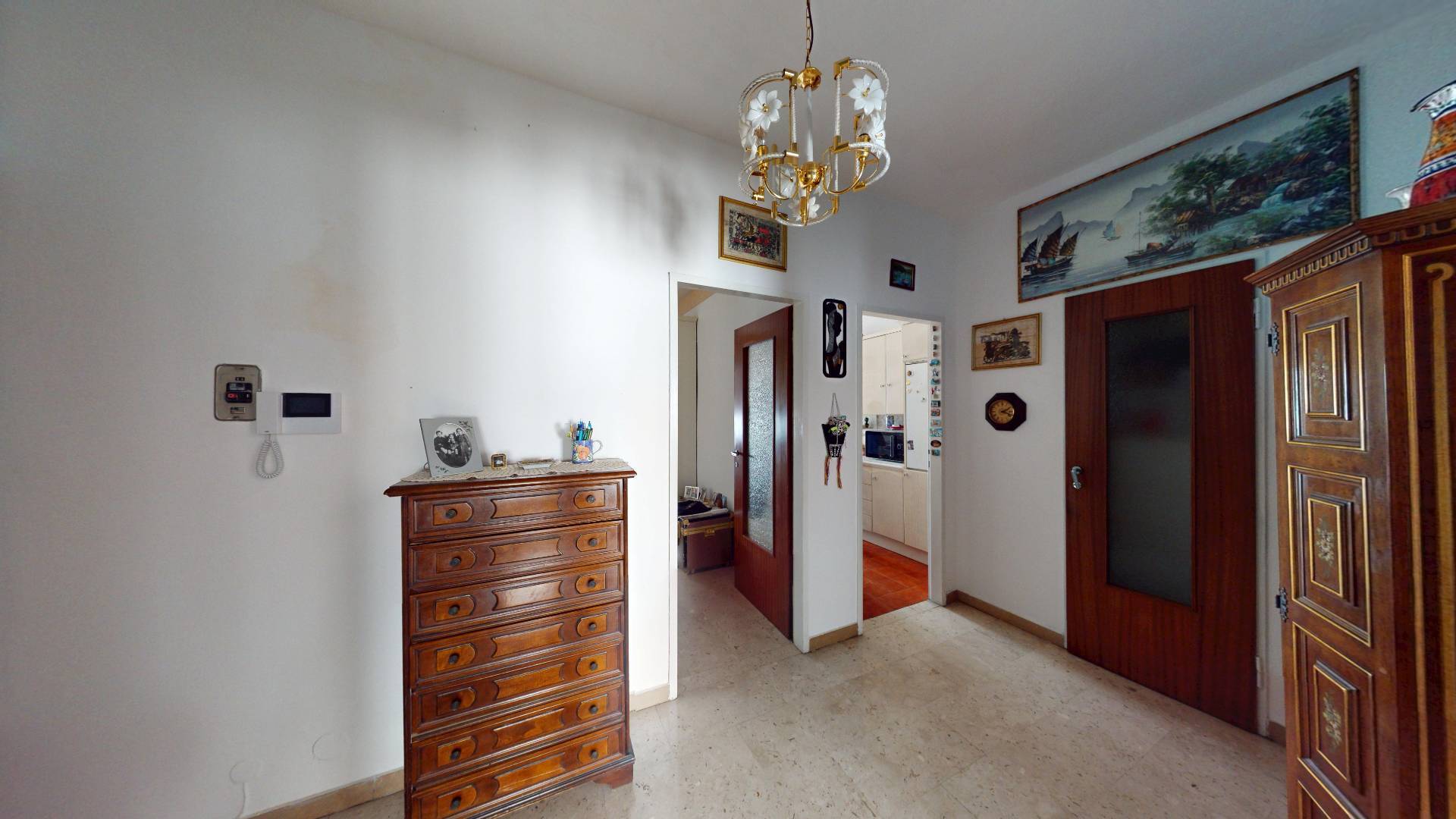 L'immobile composto da ingresso su disimpegno, due camere da letto di cui una attualmente adibita a soggiorno, cucina, ripostiglio e bagno con finestra.