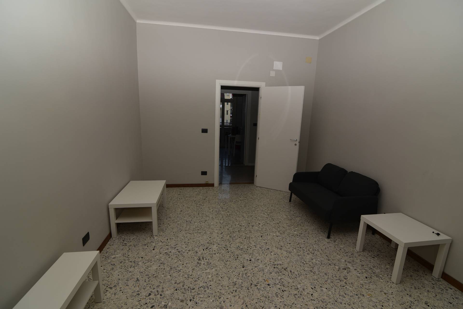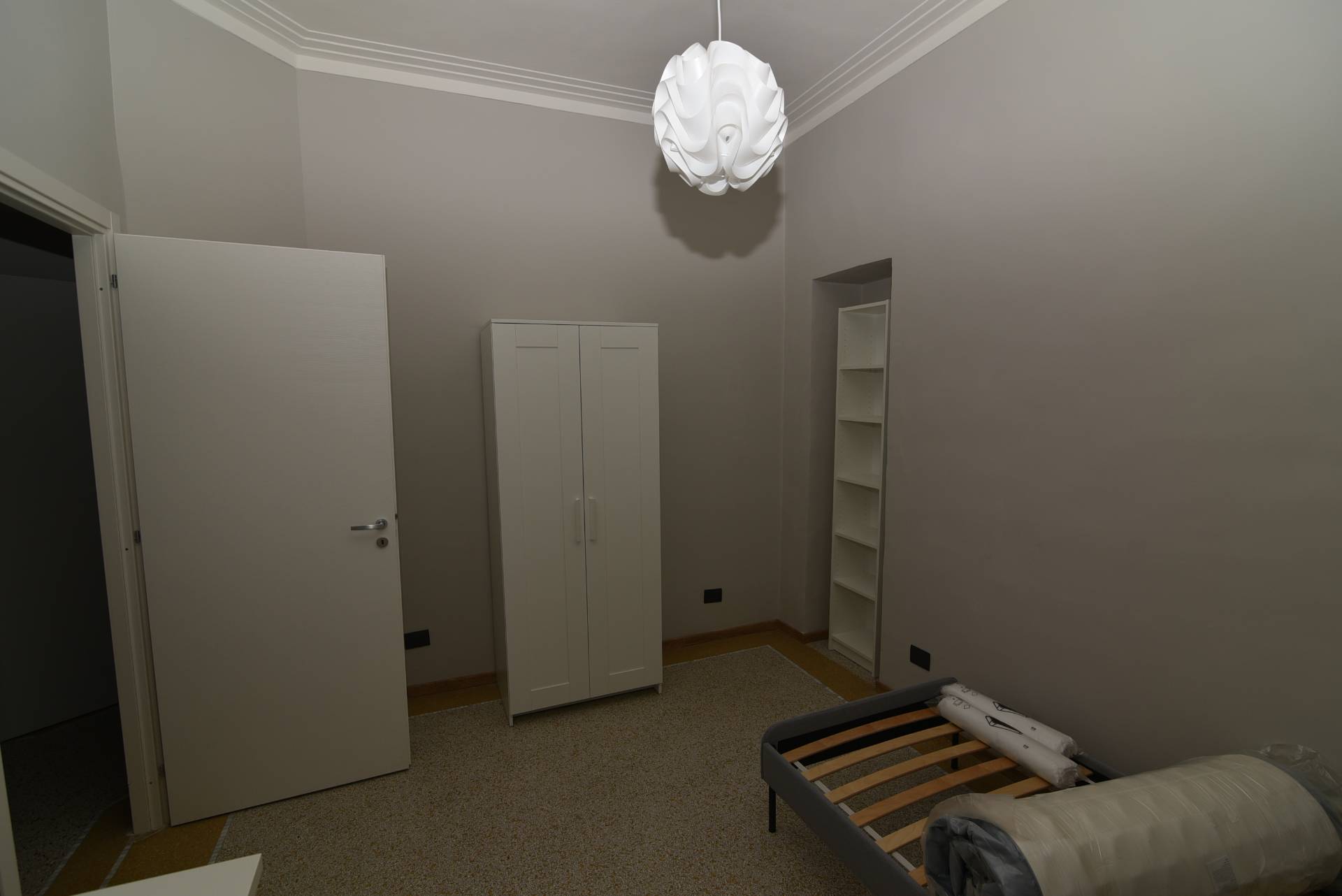 Le camere sono arredate in modo da avere due camere da letto (letto/armadio/comodino/scrivania) e un ampio salotto come zona comune.
