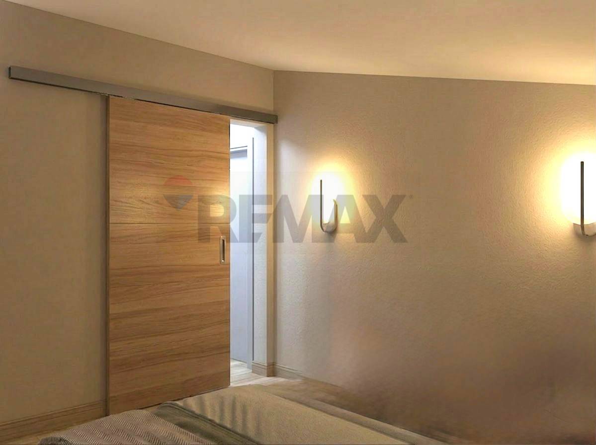 La Zona Notte e i Servizi: Una moderna porta scorrevole separa la zona giorno dalla camera da letto, anch'essa luminosa e completa di letto e armadiature su misura gi incluse nel prezzo.