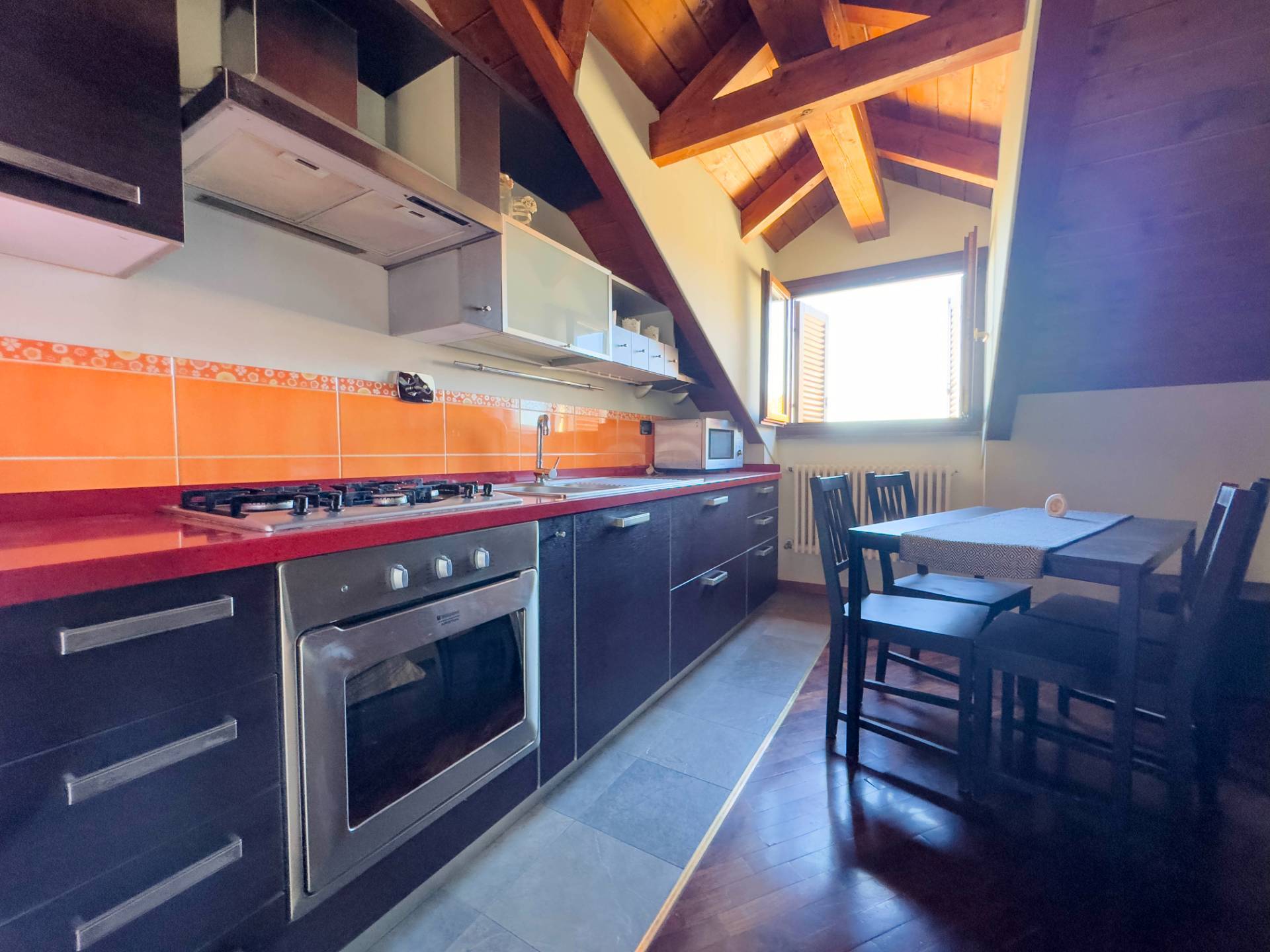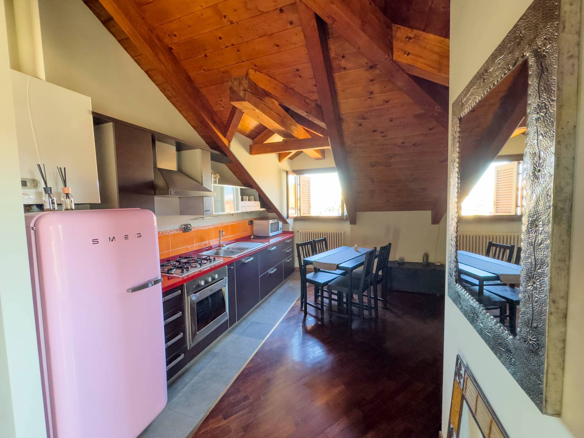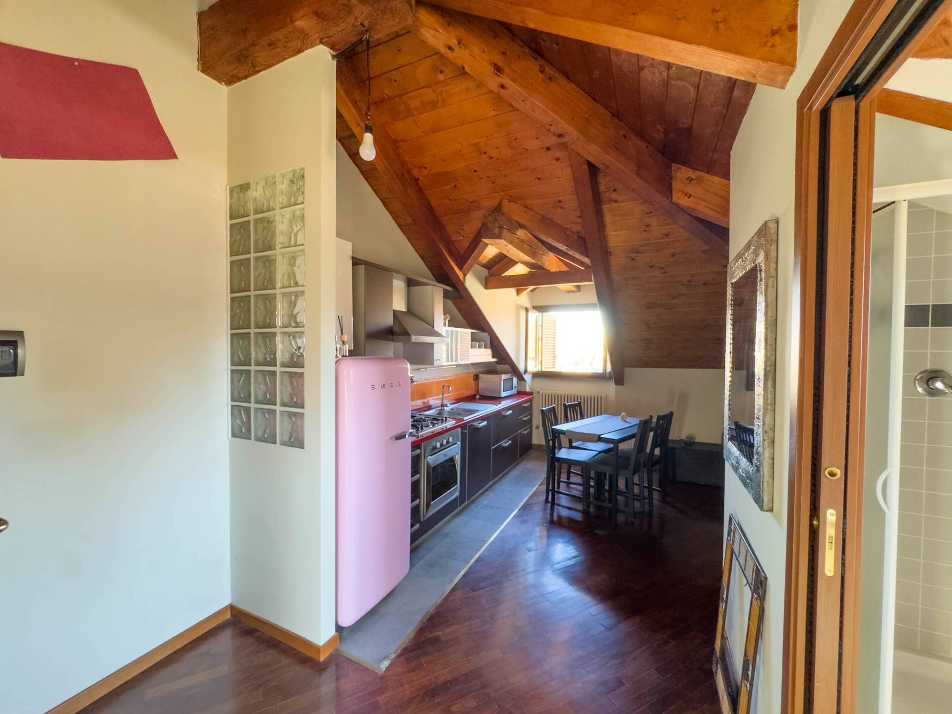 Lappartamento dotato di infissi in legno con doppio vetro nella zona giorno e nel bagno, mentre la zona notte valorizzata da ampi lucernari, che garantiscono uneccellente luminosit naturale e conferiscono allambiente unatmosfera calda e caratteristica.