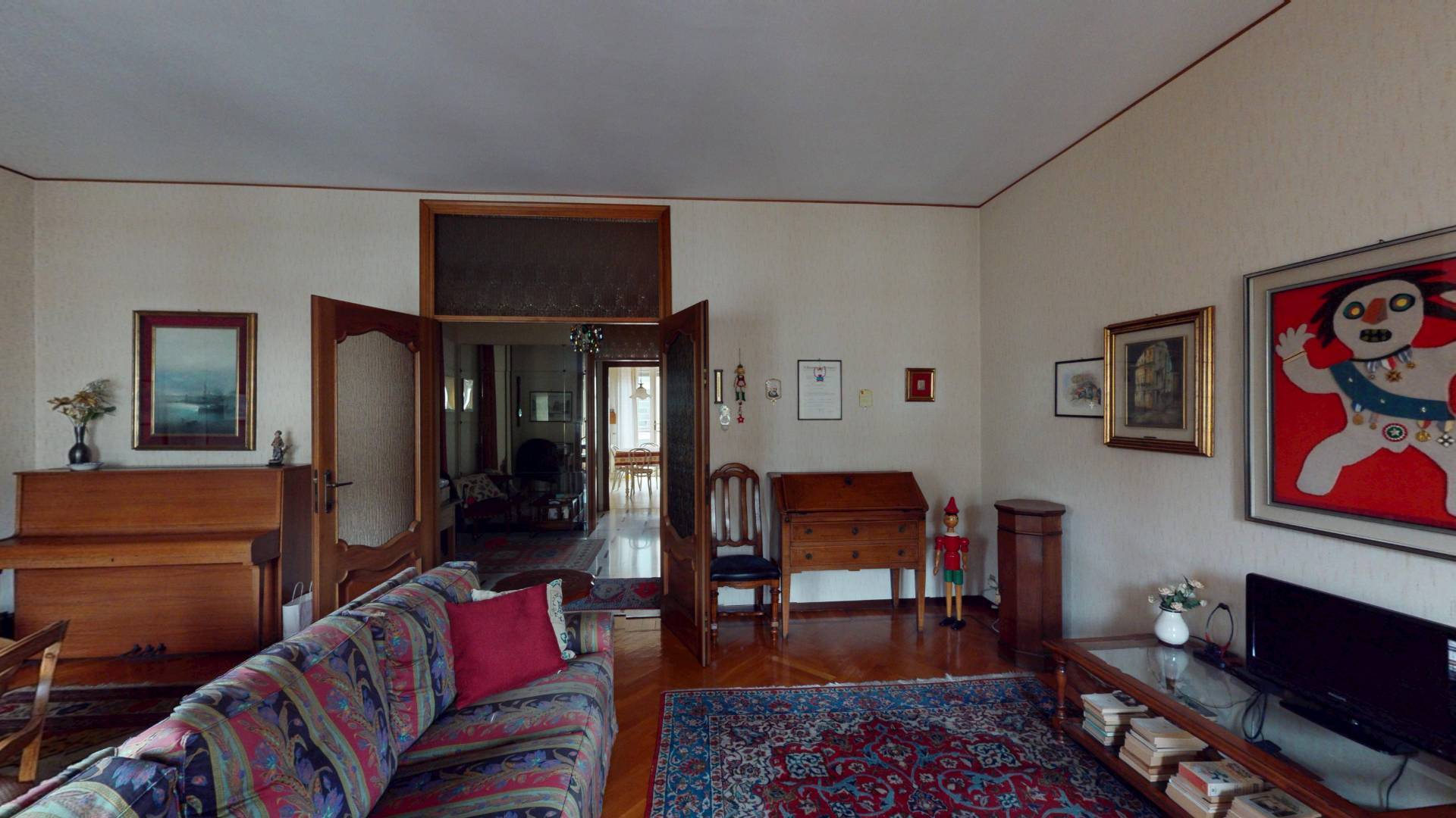 La soluzione, in buone condizioni interne, composta da ingresso su disimpegno, salone doppio, cucina abitabile, due ampie camere da letto, comodo ripostiglio e doppi servizi entrambi con finestra.