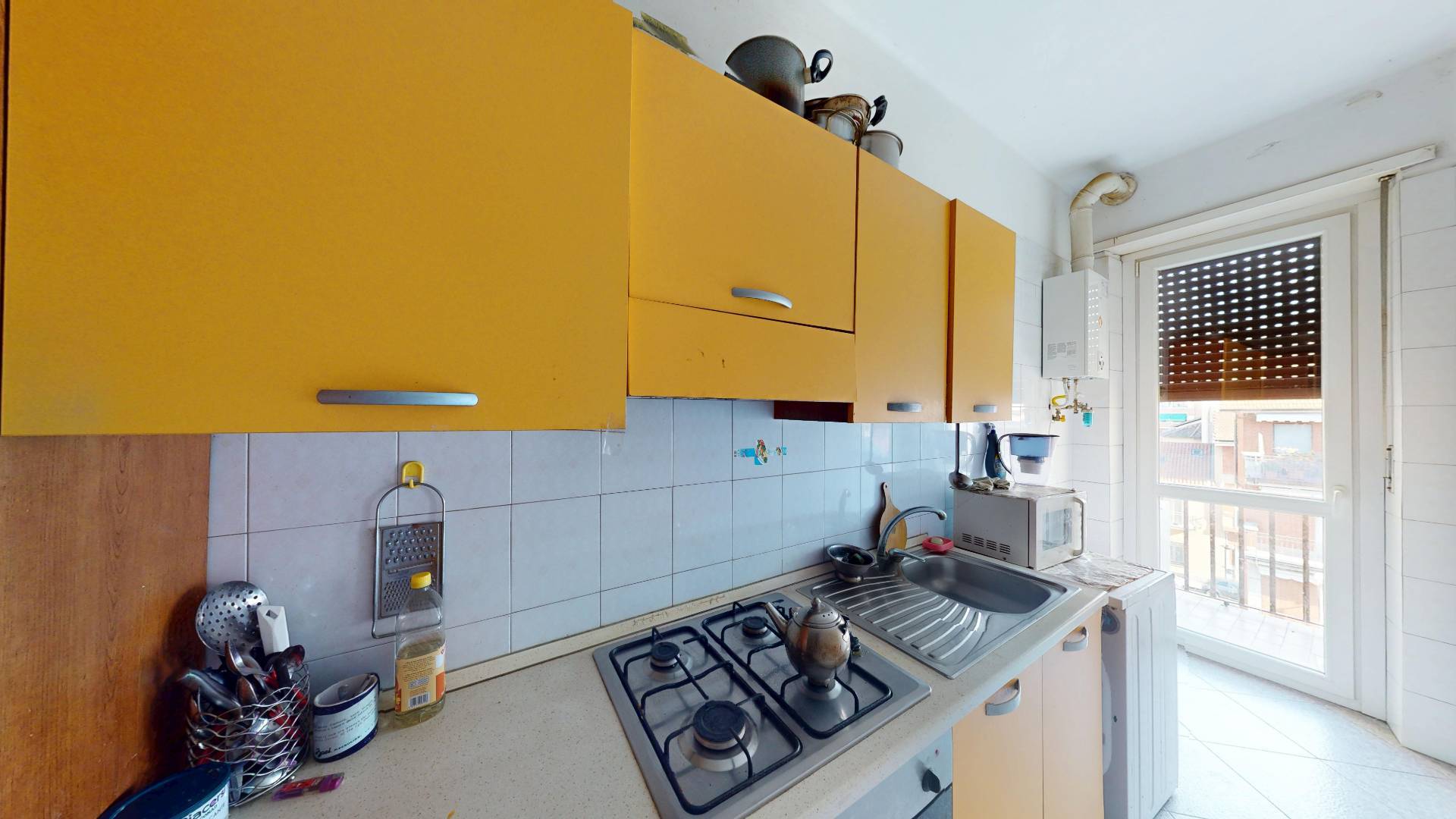 Doppia esposizione con due balconi, il primo che affaccia sull'interno cortile ed il secondo sulla via. L'immobile dotato di diversi comfort tra cui: infissi doppi vetri/pvc e fibra ottica.