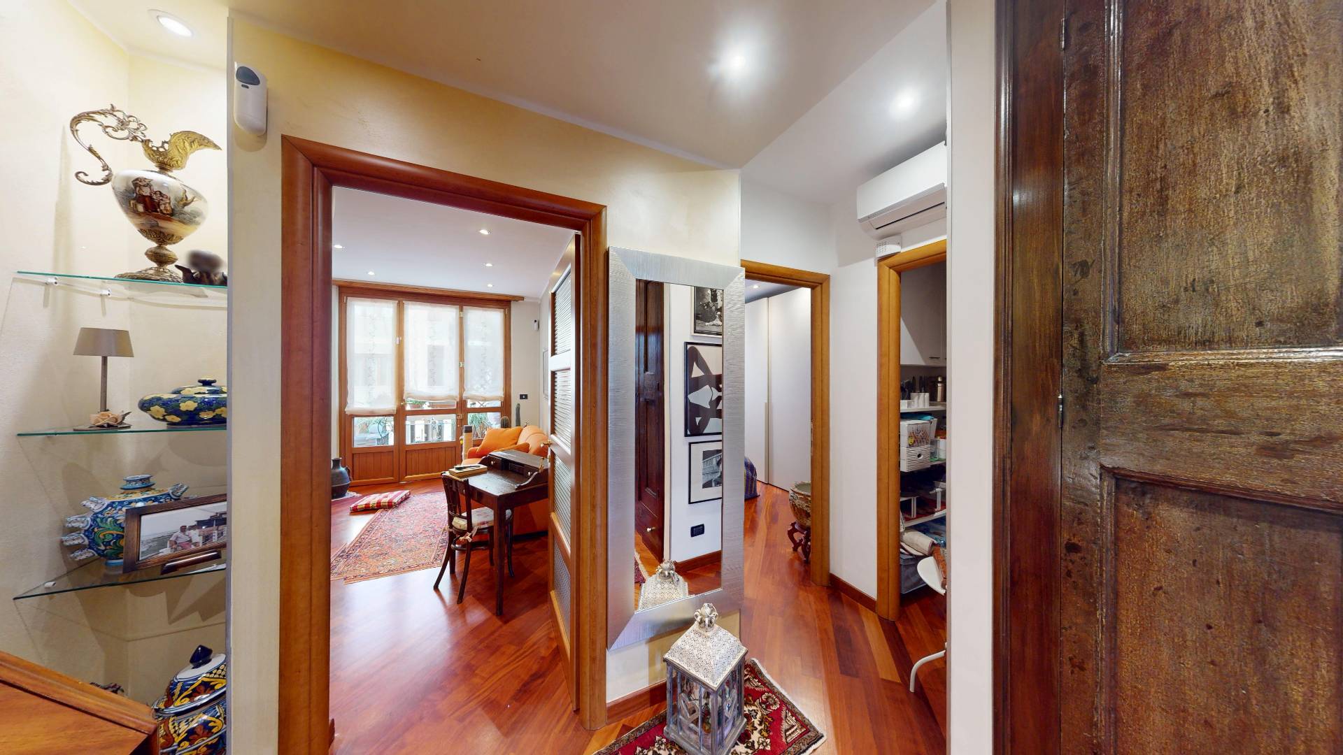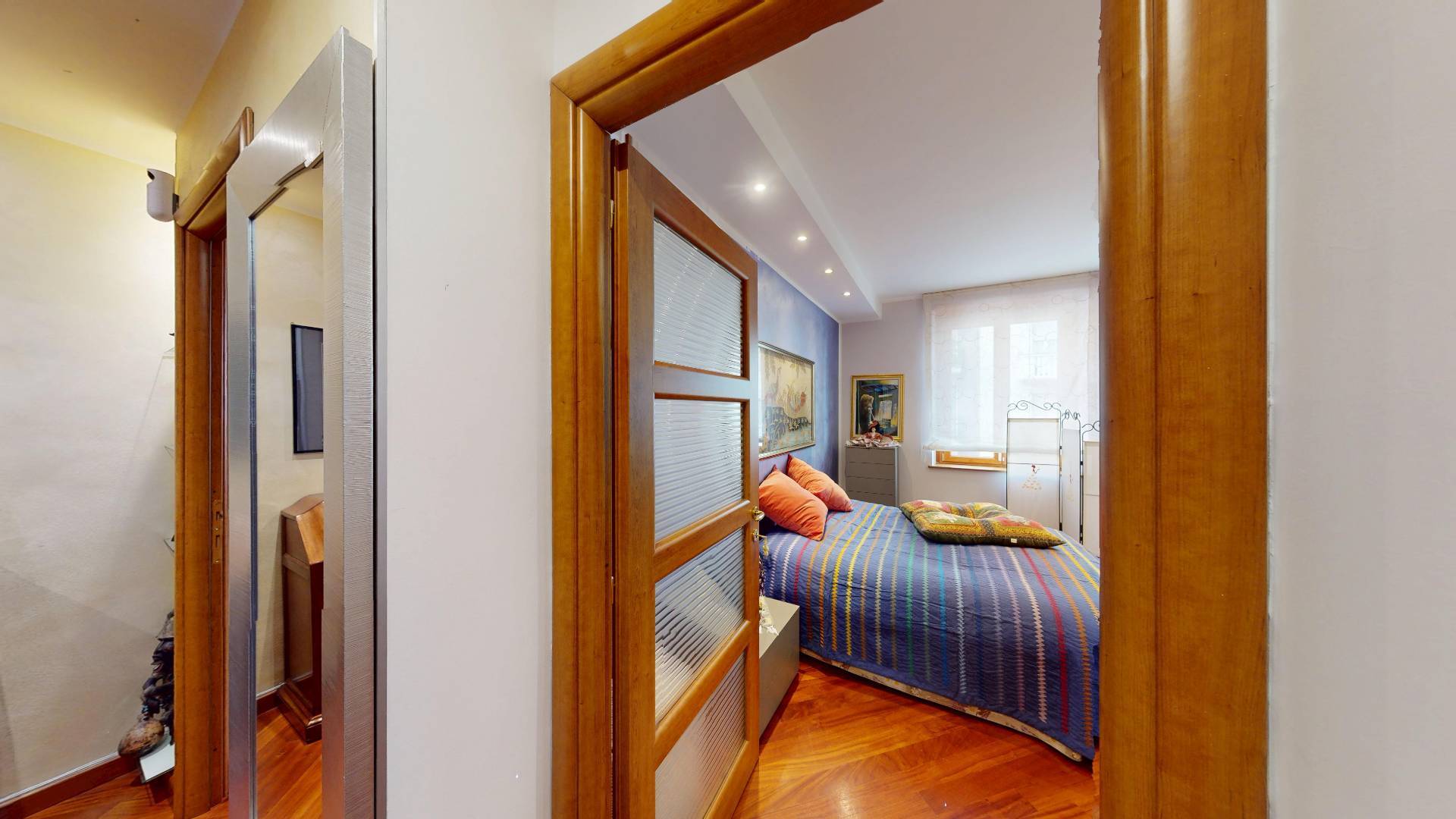 Doppia esposizione con due balconi con affaccio su interno cortile e sulla via. L'immobile dotato di diversi comfort tra cui: doppi vetri, antifurto, porta blindata, tapparelle elettriche, impianto di condizionamento e fibra ottica.