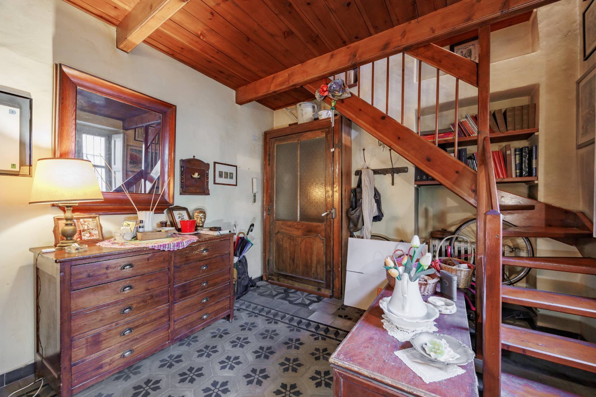 Internamente si compone di ingresso, ampio salone di circa 40 mq con camino originale del Seicento, sala da pranzo, cucina con balcone angolare affacciato sul cortile interno, due camere da letto, una camera singola, due bagni, ulteriore bagno/lavanderia, disimpegno, ripostiglio, un soppalco ad uso studio/camera ospiti e un secondo soppalco ad uso deposito.