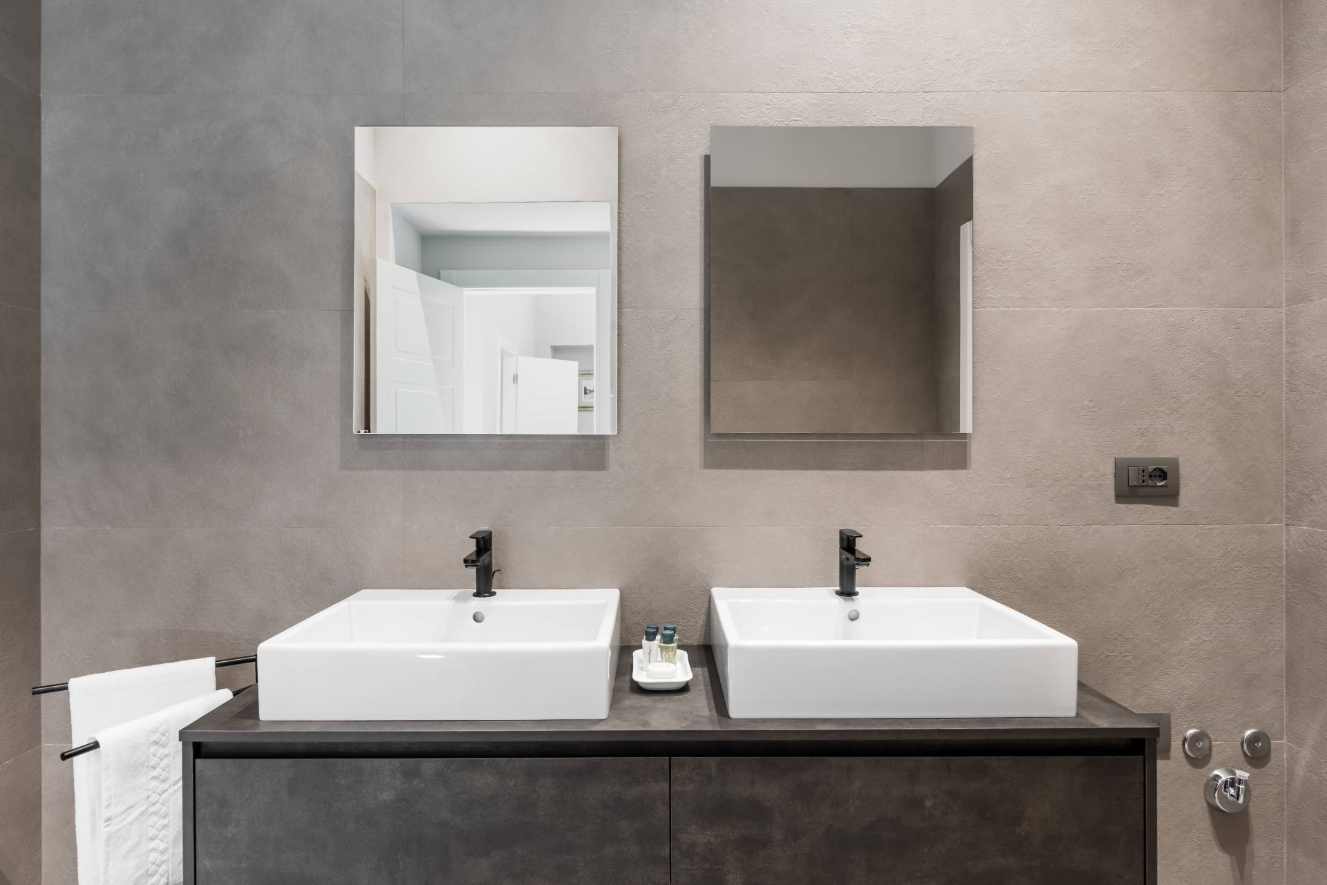 Il lotto 9 composto da ingresso, soggiorno con cucina a vista, camera con grande cabina armadi, bagno con antibagno, ed ha due arie con balcone sul cortile interno e grande balcone a L che affaccia sul cortile dello stabile adiacente.