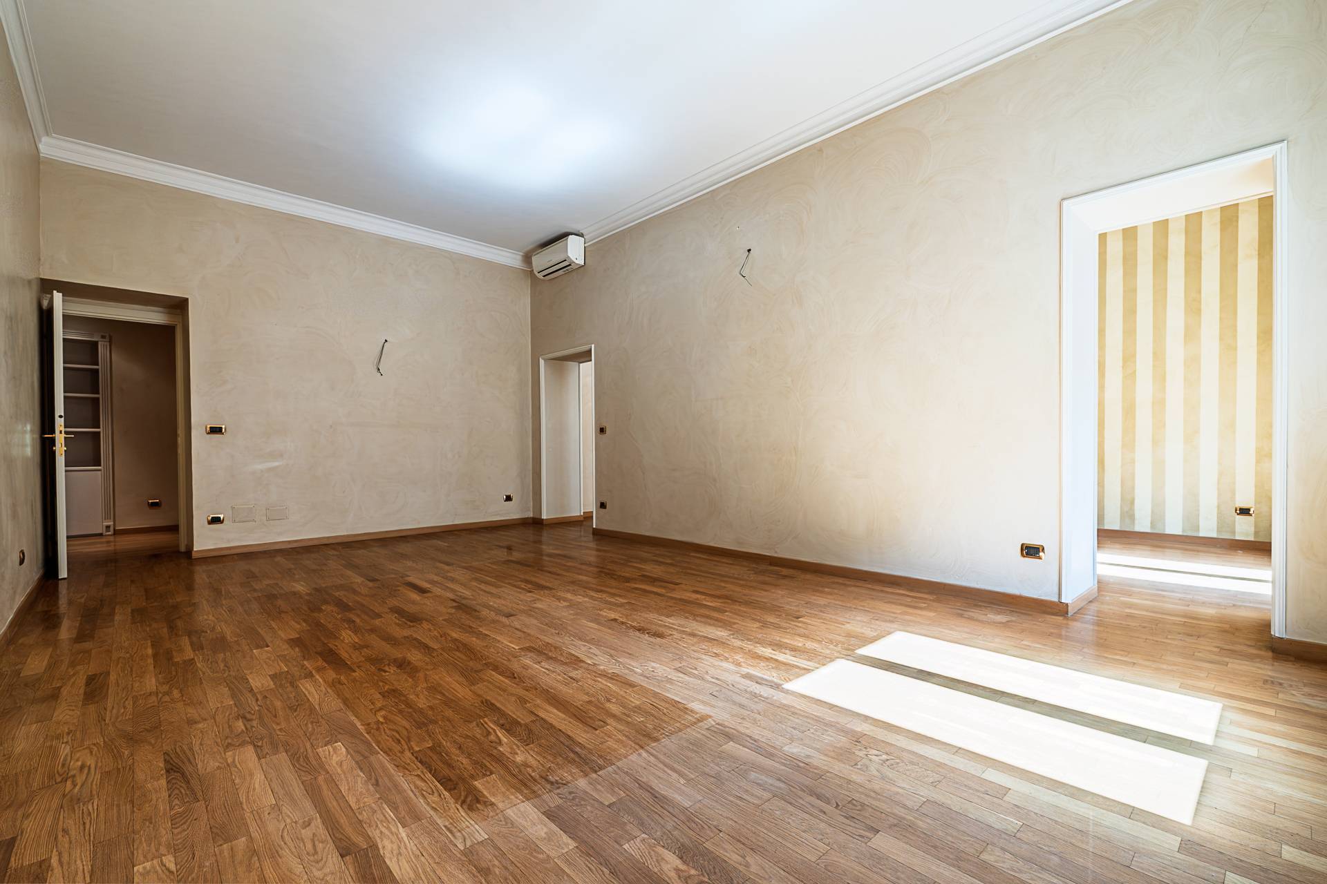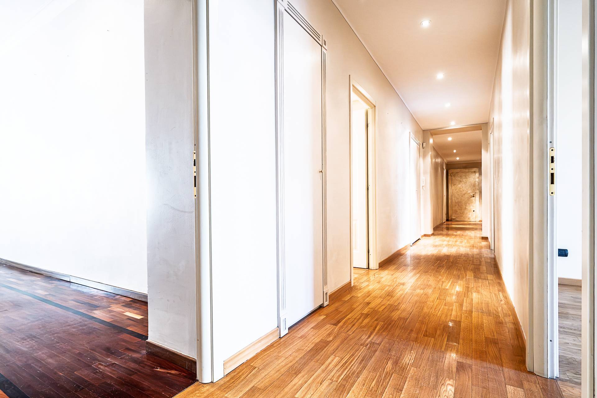 L'appartamento ha doppia esposizione ed composto da ampio ingresso su corridoio, soggiorno con annessa sala da pranzo, cucina abitabile, camera padronale con grande cabina armadi in legno di ciliegio, seconda camera e due bagni di cui uno finestrato.