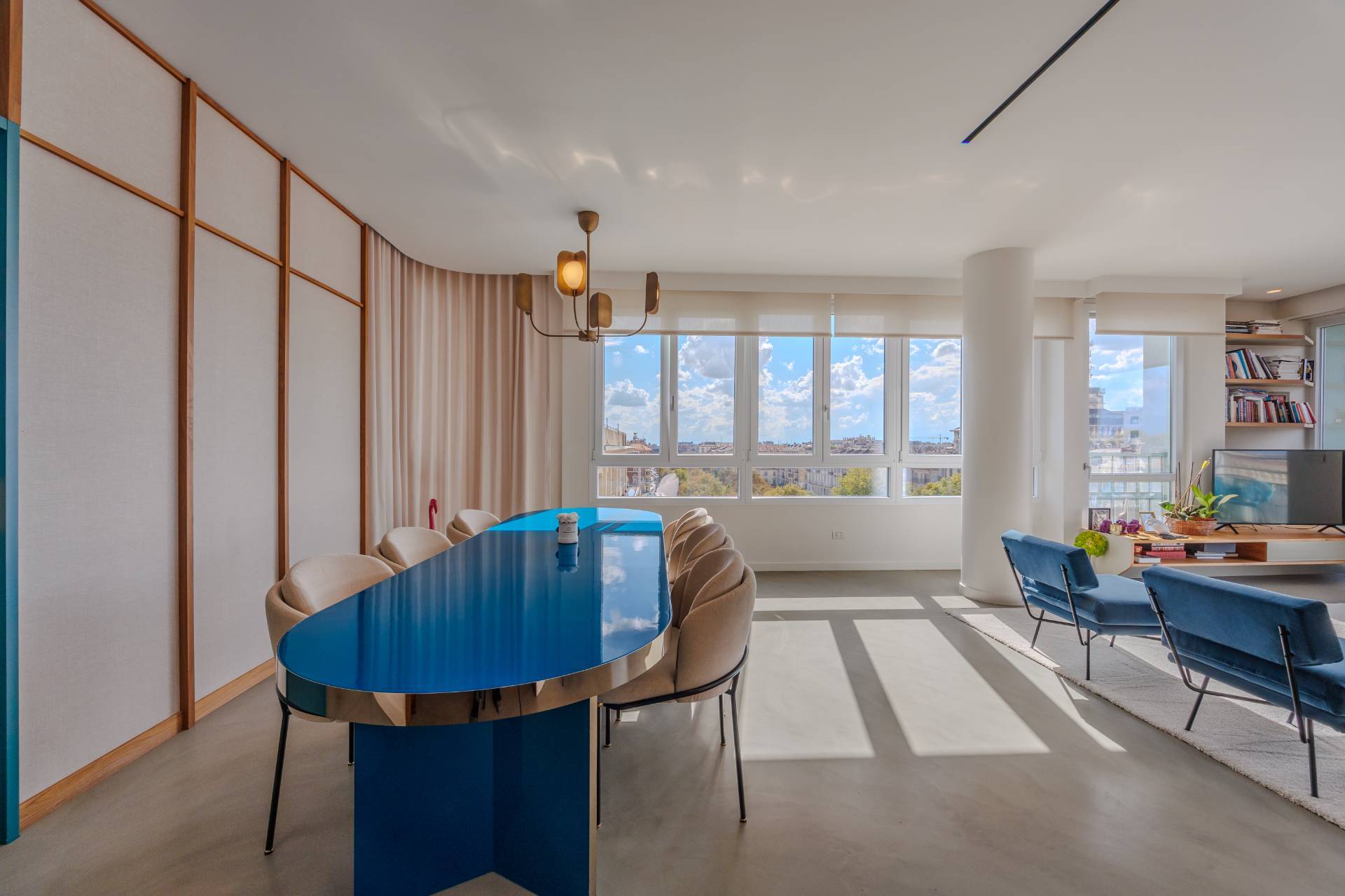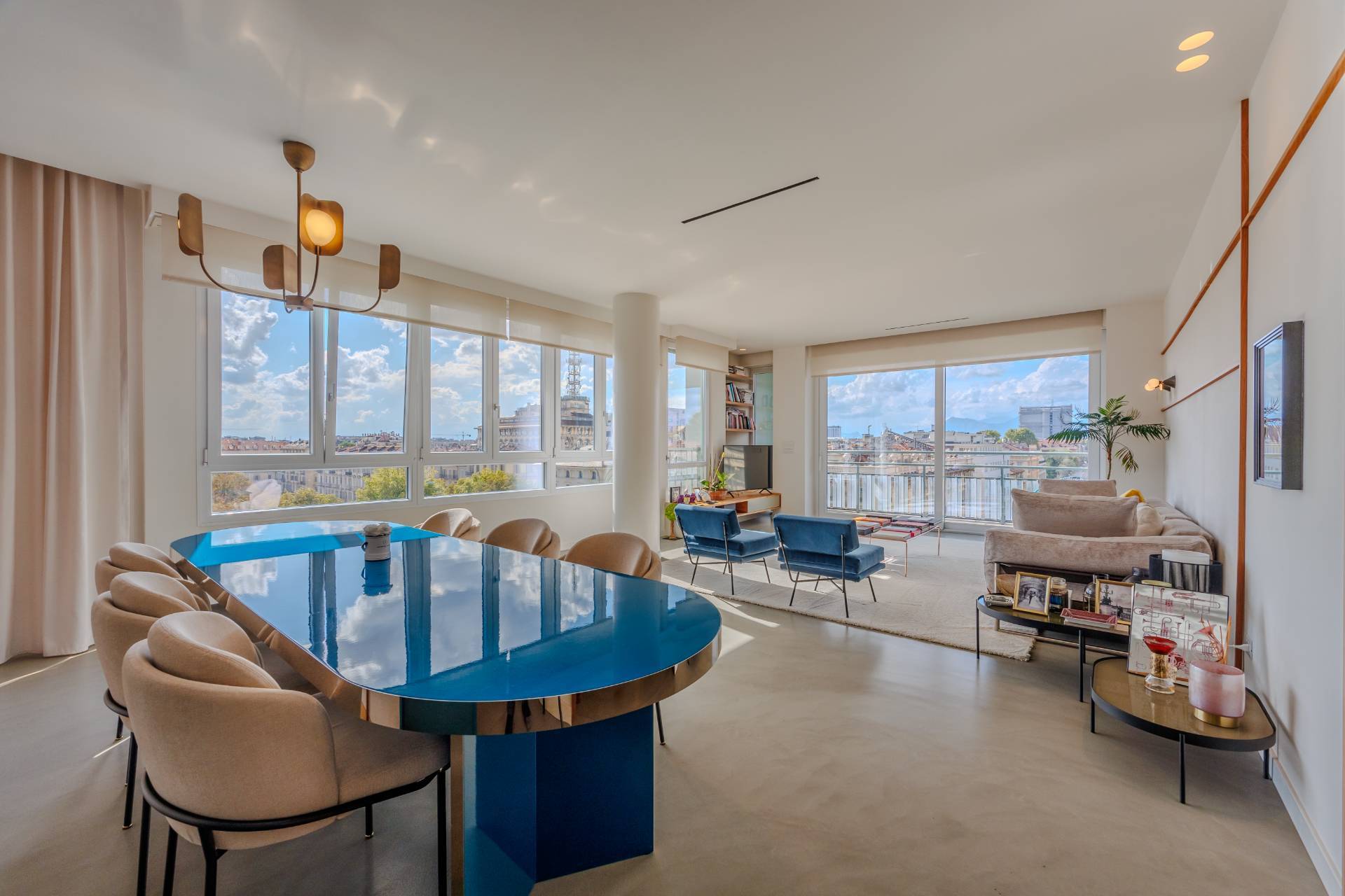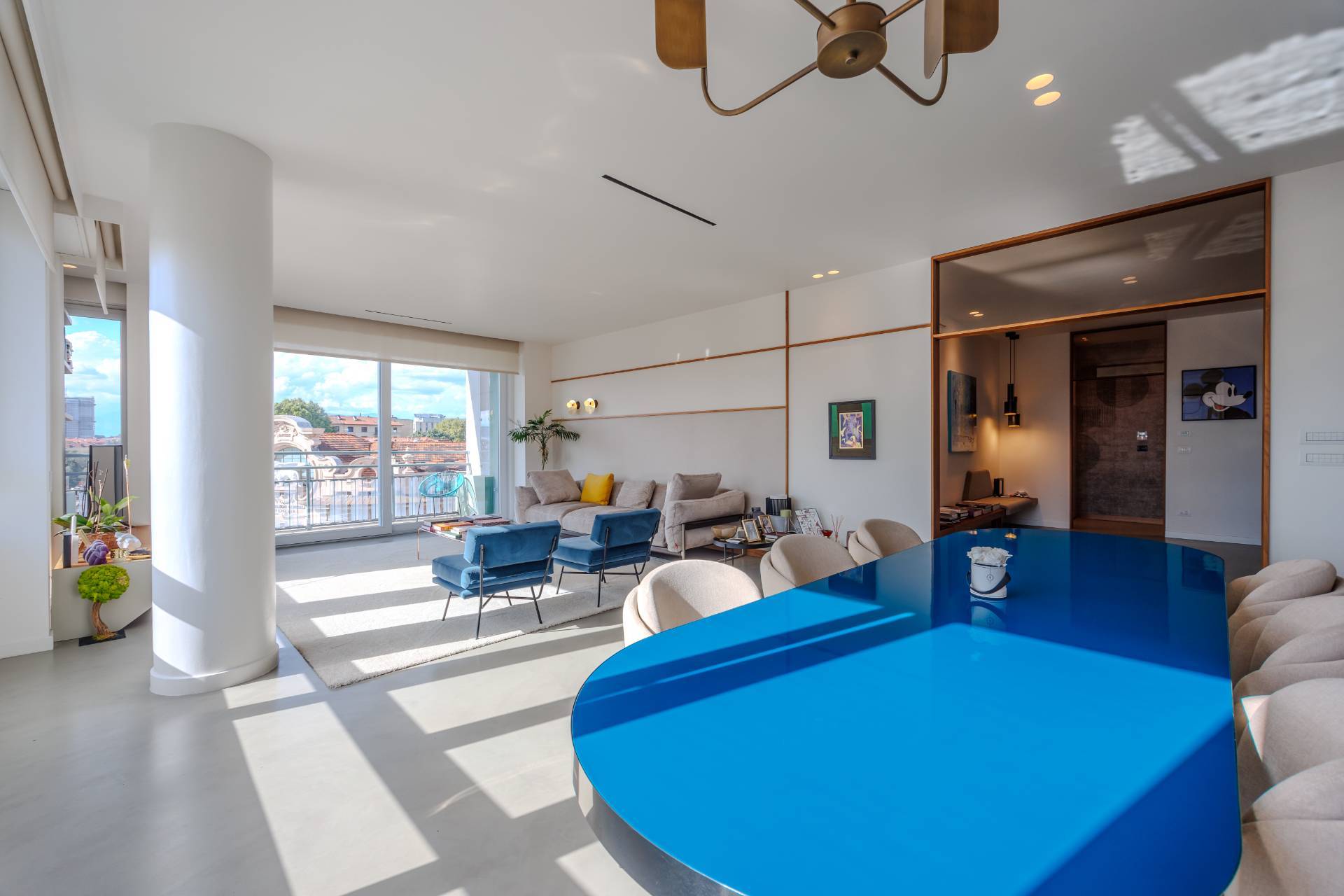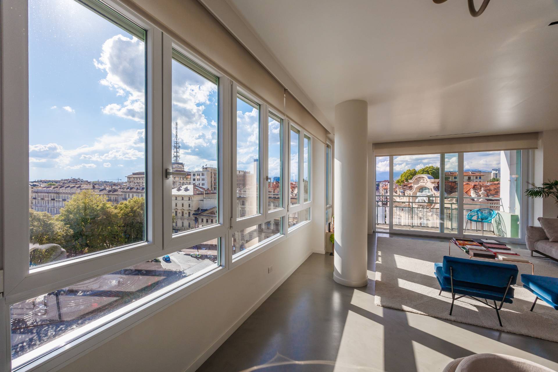 All'interno del famoso grattacielo Torre Solferino, esclusivo appartamento di design completamente arredato, caratterizzato da finiture di pregio splendide vetrate panoramiche su tutta la citt. La zona giorno si apre su un luminoso salone doppio con sala da pranzo, cucina abitabile moderna con isola centrale.