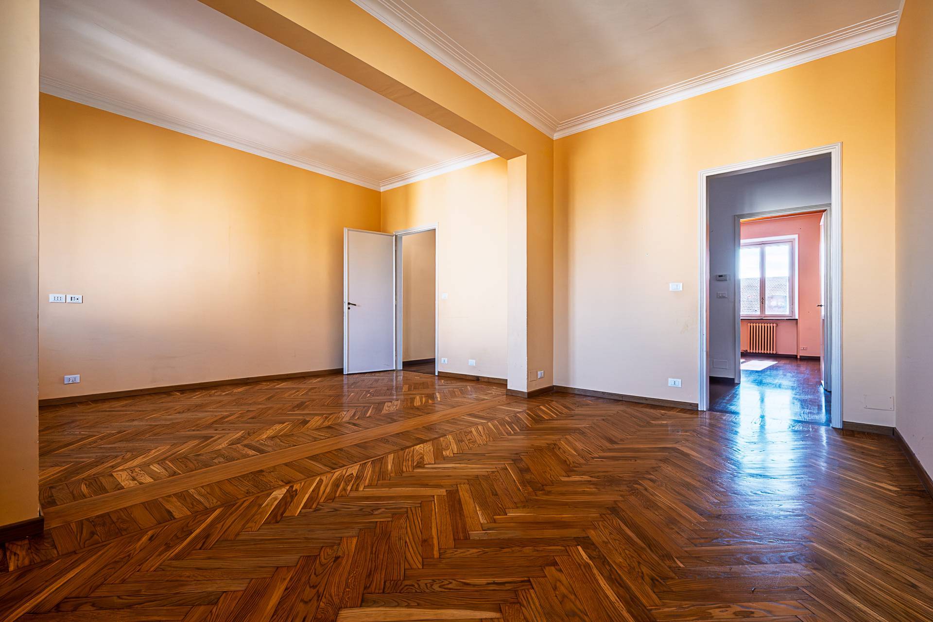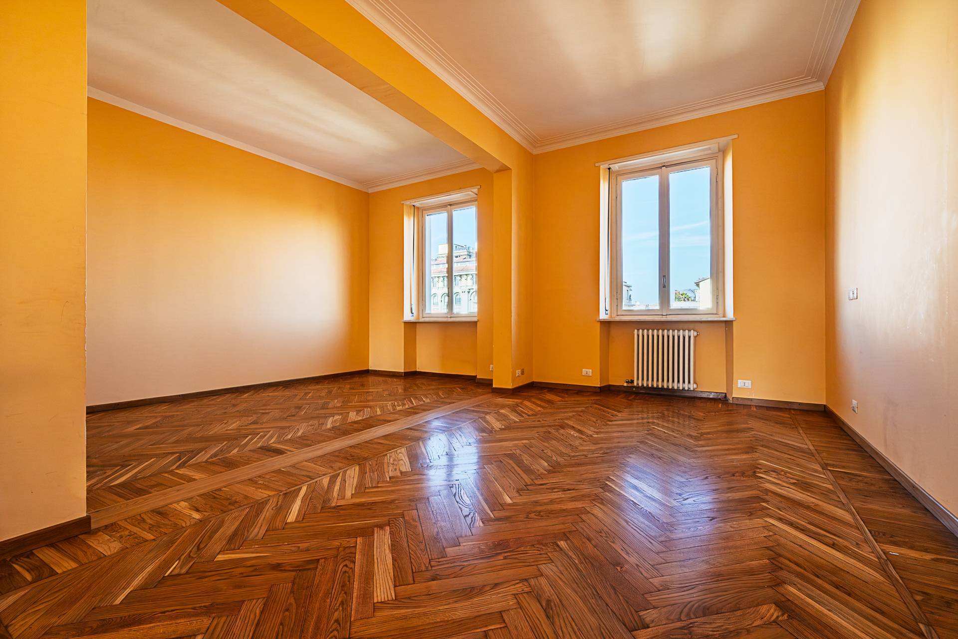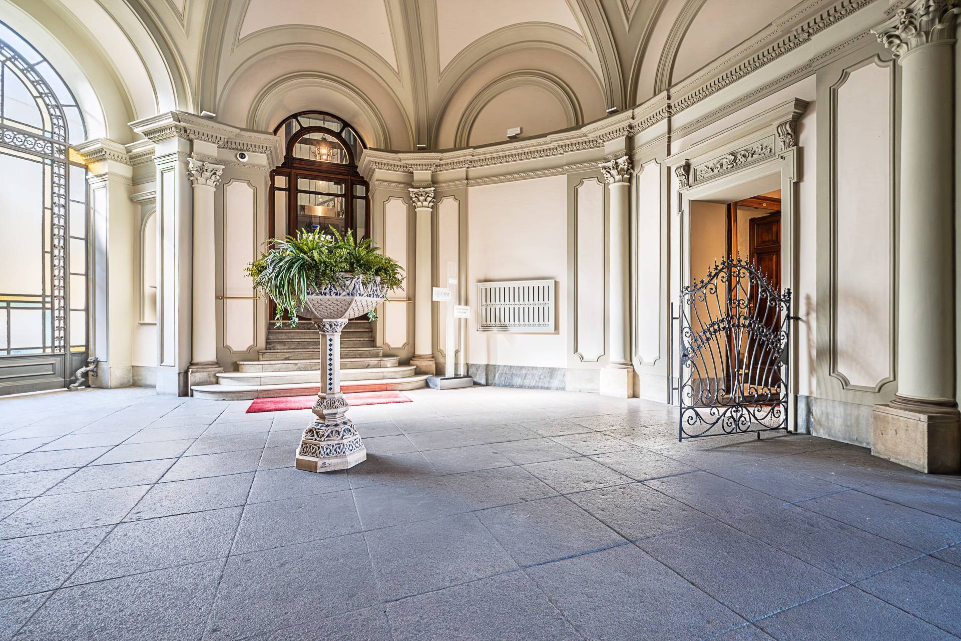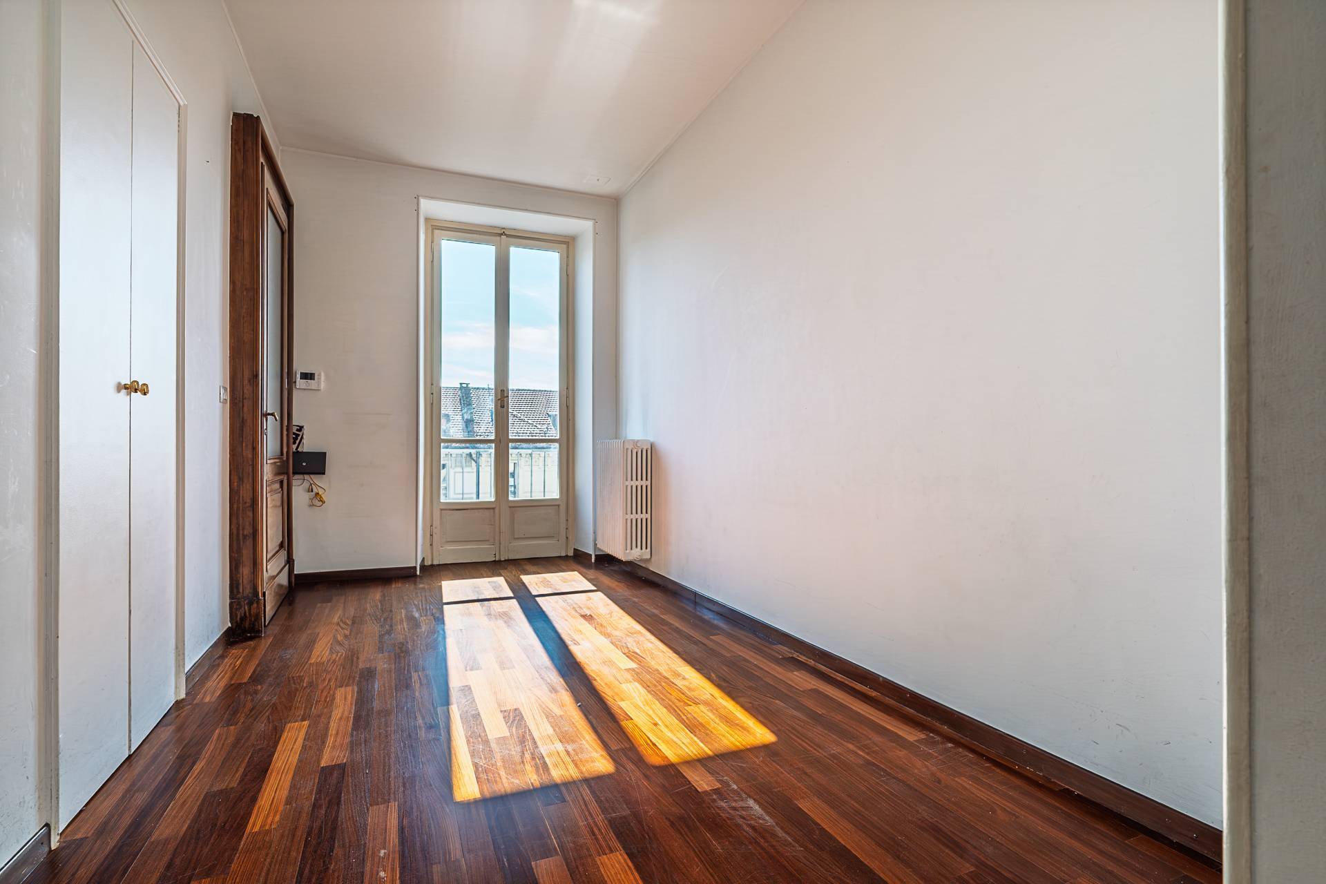 Corso Re Umberto angolo Piazza Solferino, in elegante stabile d'epoca con servizio di portineria e ascensore proponiamo al quarto piano un luminoso appartamento ristrutturato nel 2018, composto da ingresso, salone doppio con vista sulla Piazza, cucina, due camere da letto, studio, disimpegno, due bagni finestrati con doccia e vasca, ripostiglio e lungo balcone interno cortile.