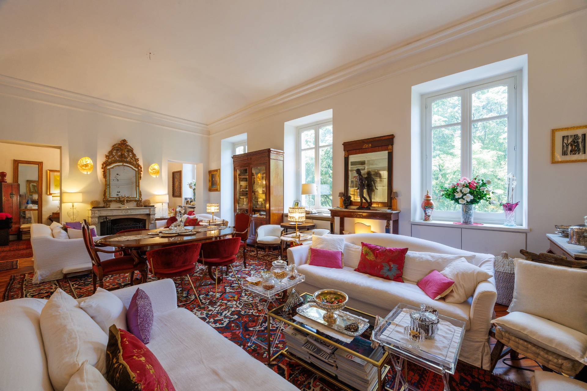 L'immobile composto da ingresso, salone doppio con due camini, sala da pranzo, cucina abitabile con soffitto affrescato, tre camere da letto di cui quella padronale con bagno en suite e cabina armadio, un bagno e lavanderia.