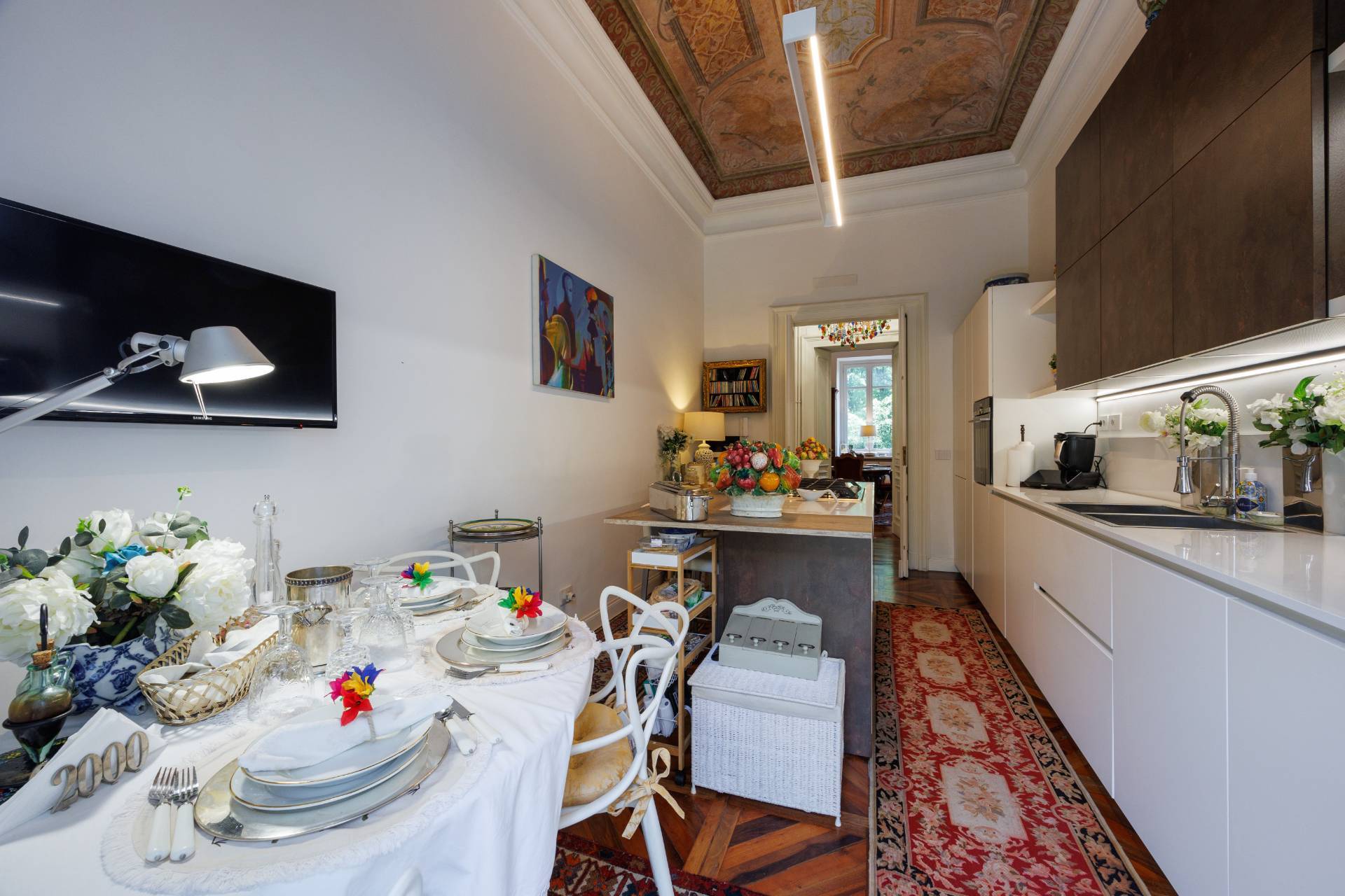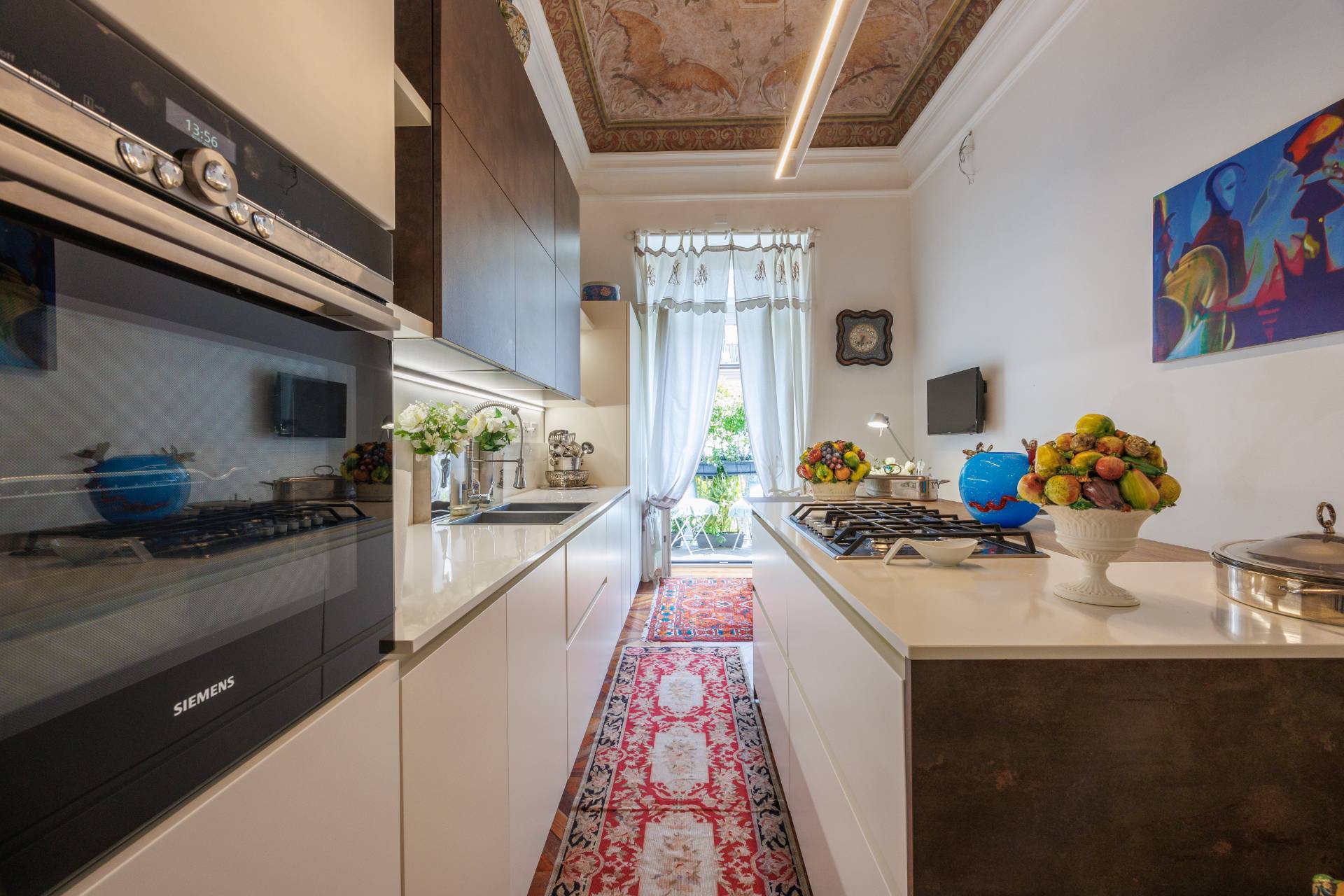 Attraverso la cucina si accede ad uno splendido grande terrazzo, interno cortile, esposto a est. L'unit immobiliare ricca di particolari e decorazioni d'epoca, parquet originale nel salone e nelle camere, predisposizione per l'aria condizionata e infissi con doppio vetro camera.