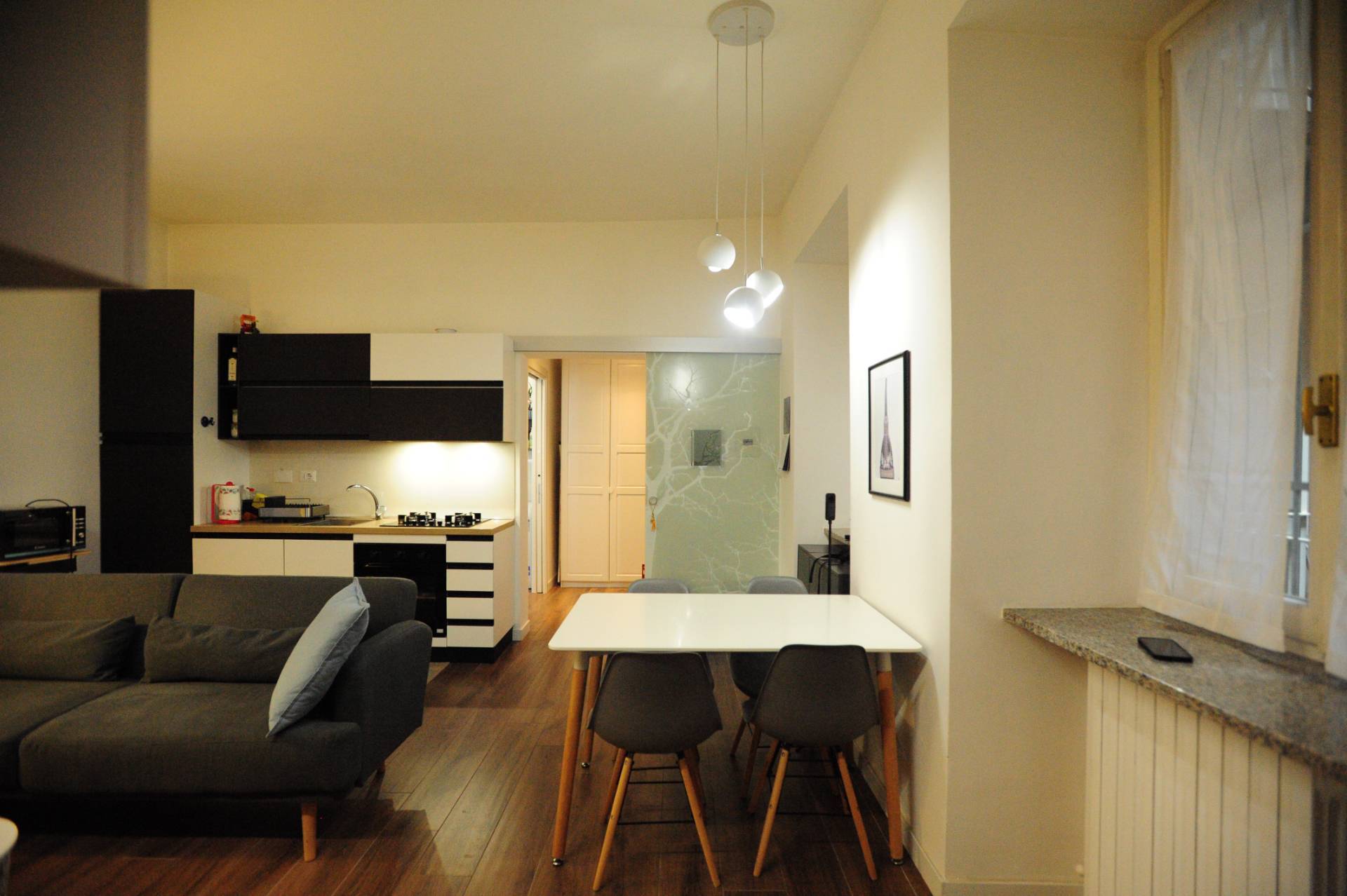 Limmobile si trova in una delle zone pi richieste del centro di Torino, a pochi passi dal Quadrilatero Romano e dalle principali attrazioni della citt. Lappartamento si presenta in eccellenti condizioni, con ambienti luminosi e ben distribuiti, ideali per una coppia o per chi desidera uno spazio accogliente e funzionale nel cuore della citt. stato totalmente ristrutturato e arredato a nuovo con uno stile moderno ed elegante che si integra armoniosamente con i dettagli architettonici storici dello stabile.