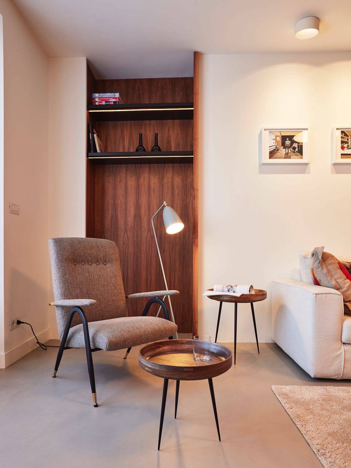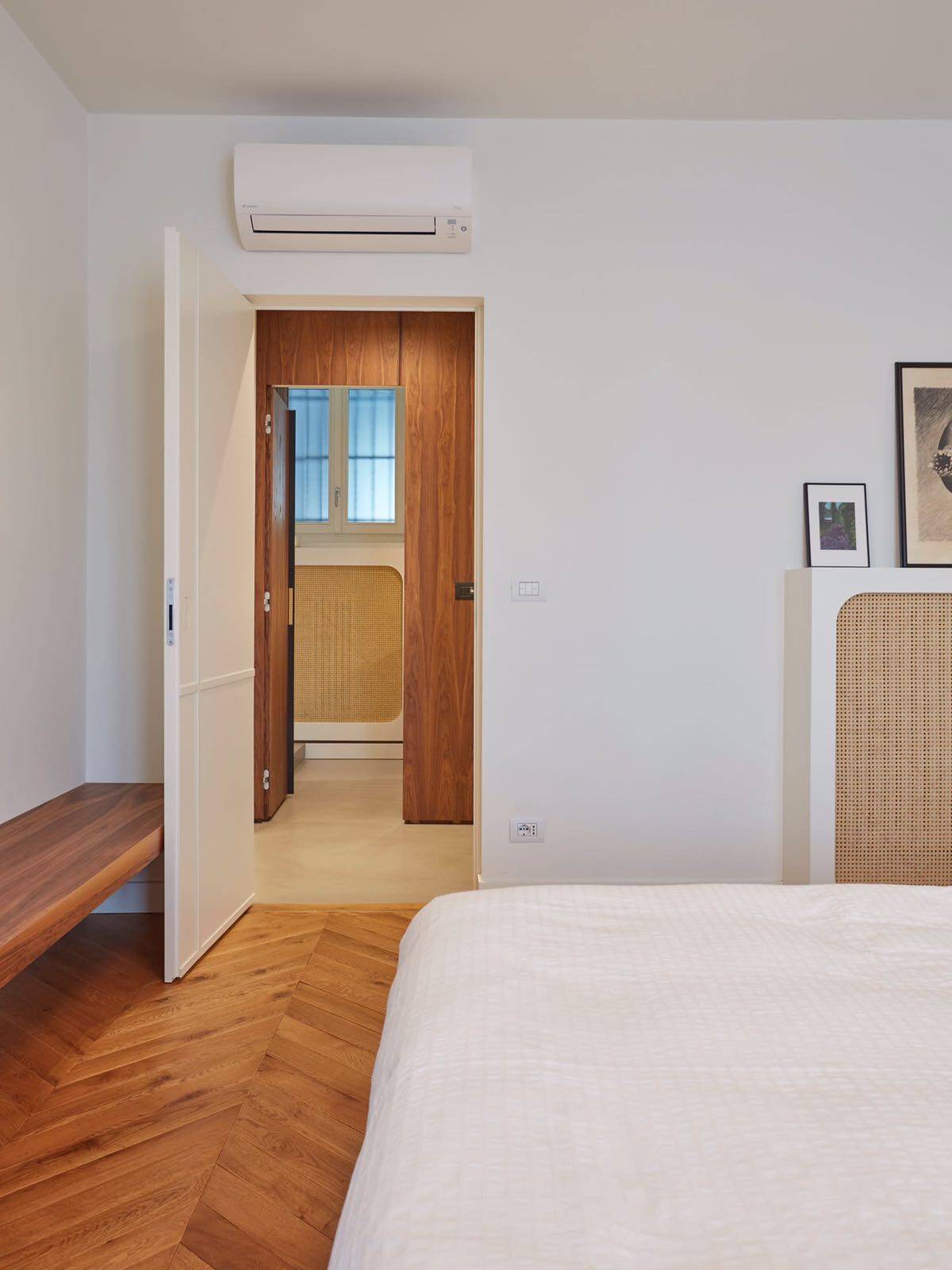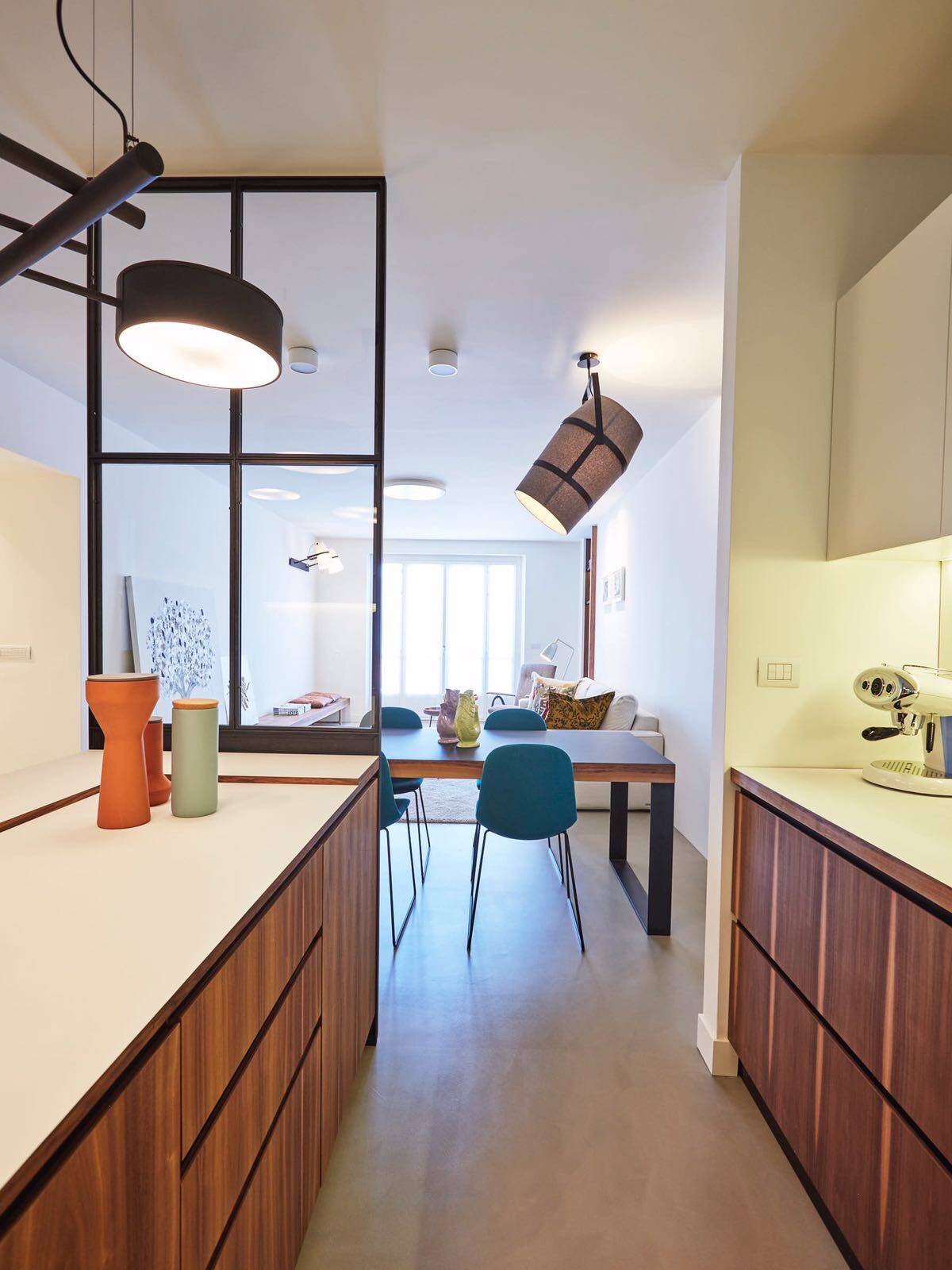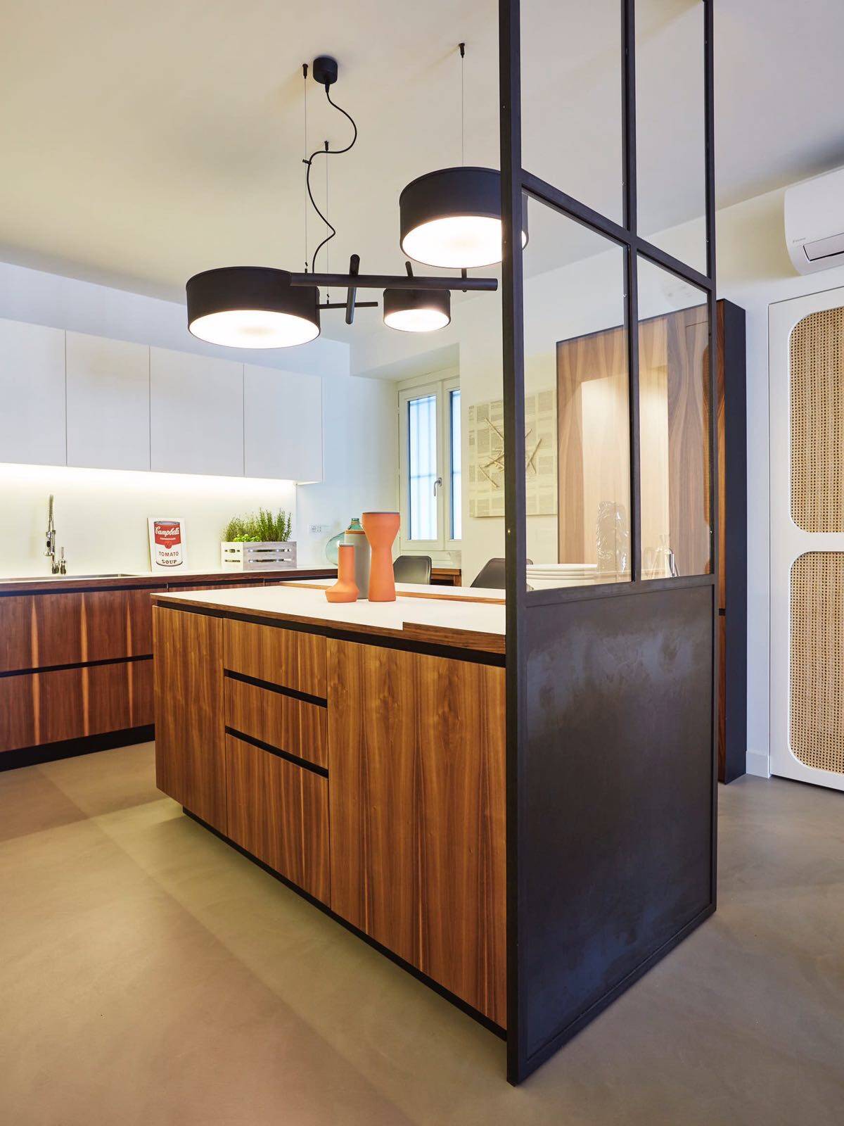 L'appartamento cos composto: ingresso su ampio corridoio con armadiate a muro, living open space con cucina di design a vista, grande camera da letto con annessa cabina armadi - originariamente la seconda cameretta della casa, bagno e bagnetto ospiti.