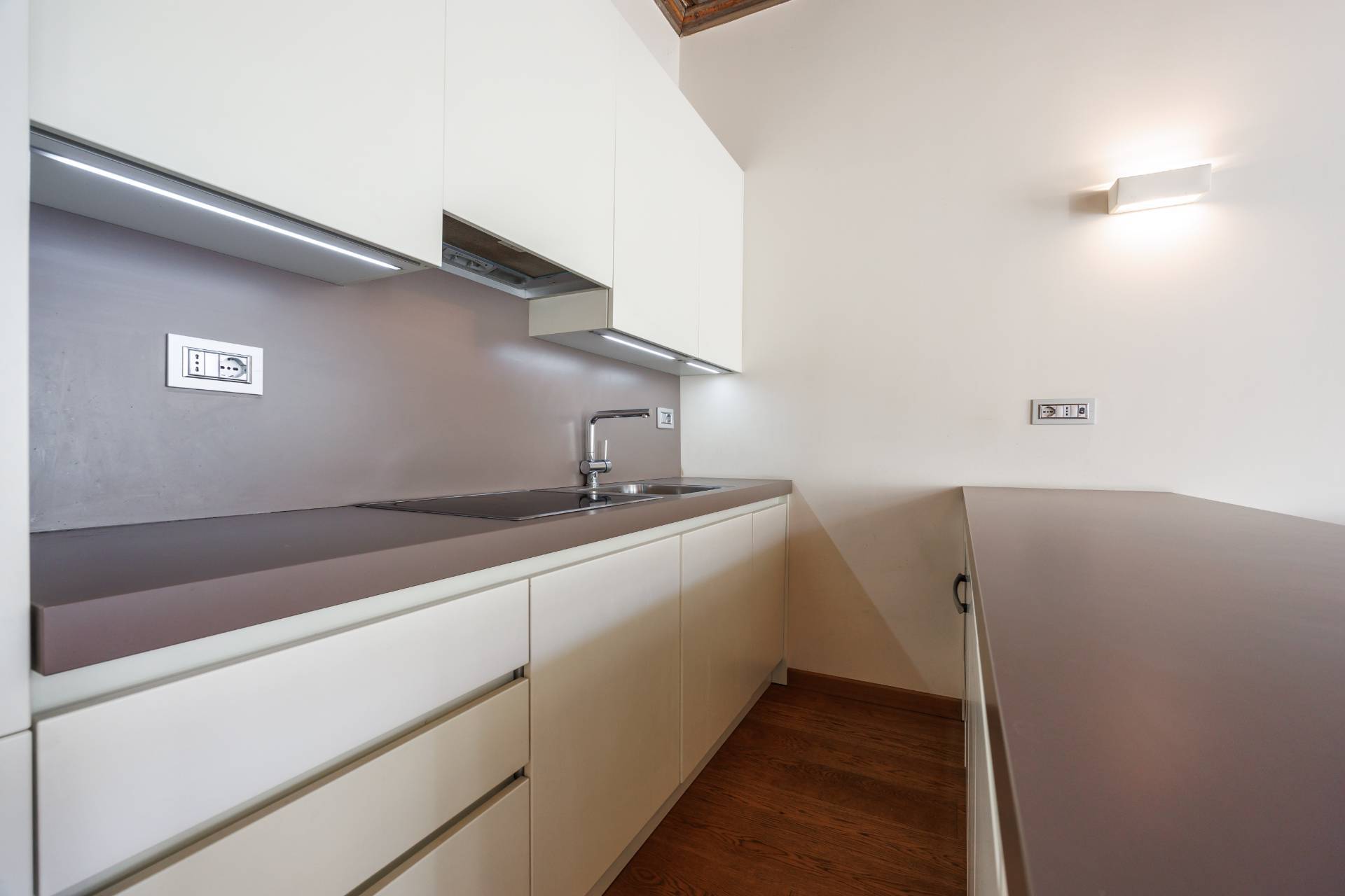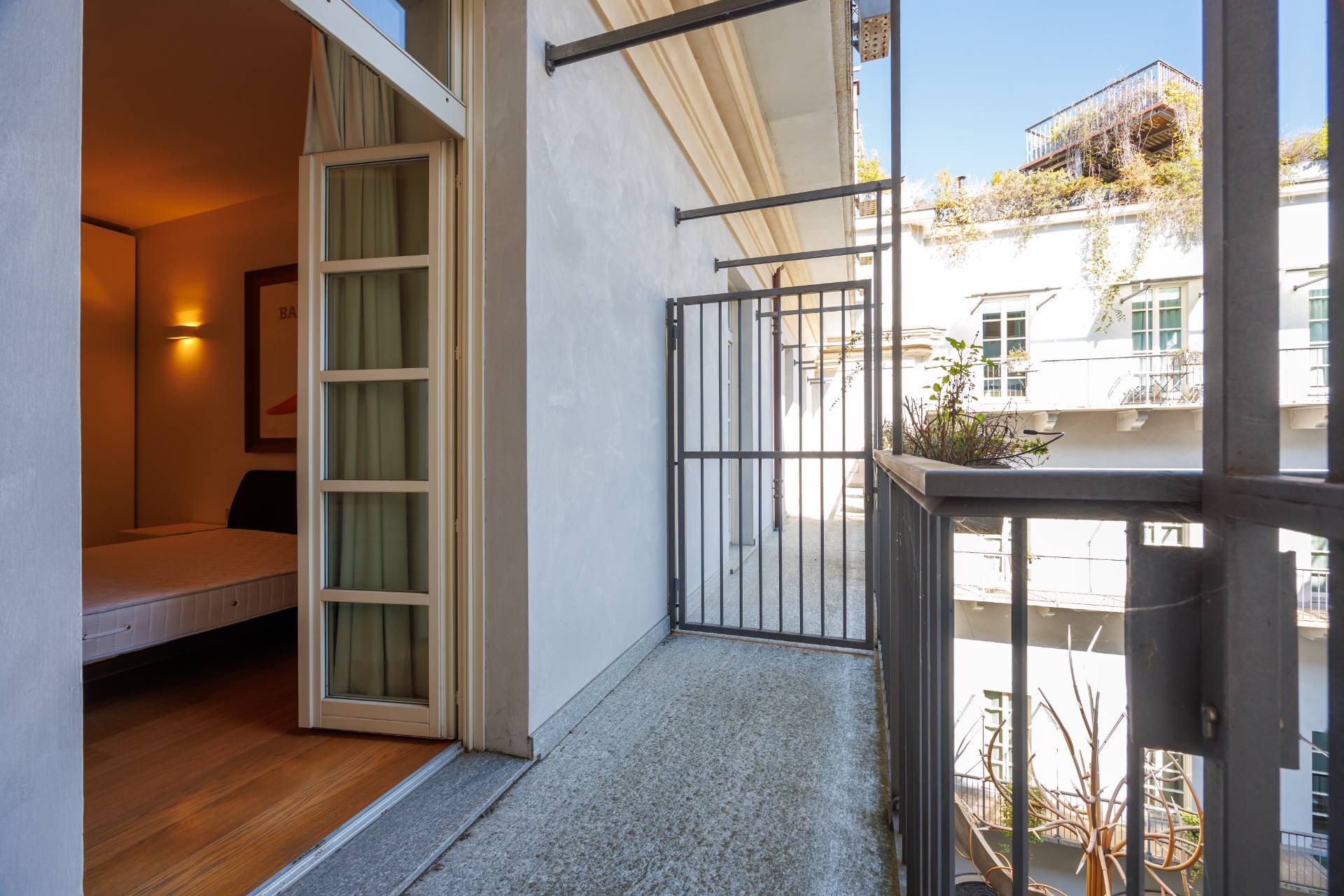 Accesso diretto con ascensore privato in casa. Limmobile si distingue per un luminoso soggiorno con cucina a vista, impreziosito da uno splendido soffitto a cassettoni, due camere da letto entrambe con balcone e affaccio sulla raffinata corte interna, e doppi servizi moderni.