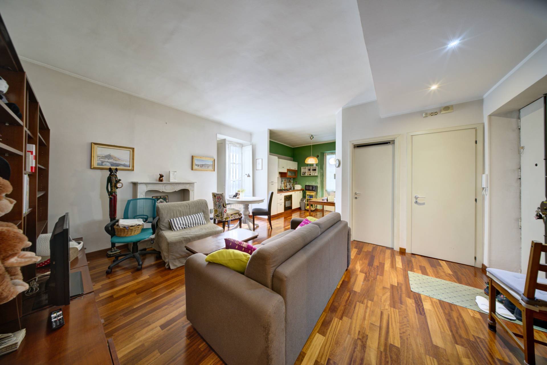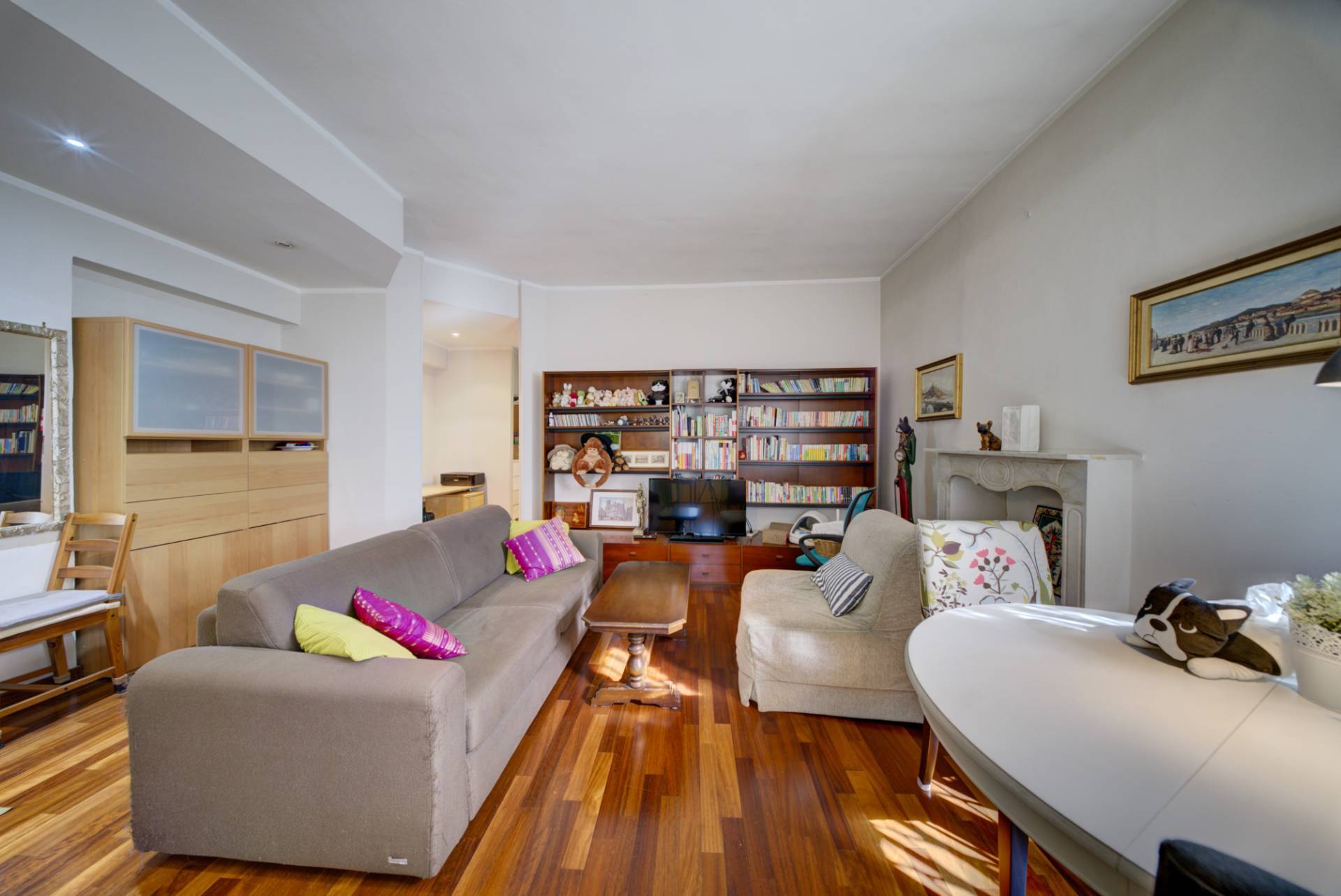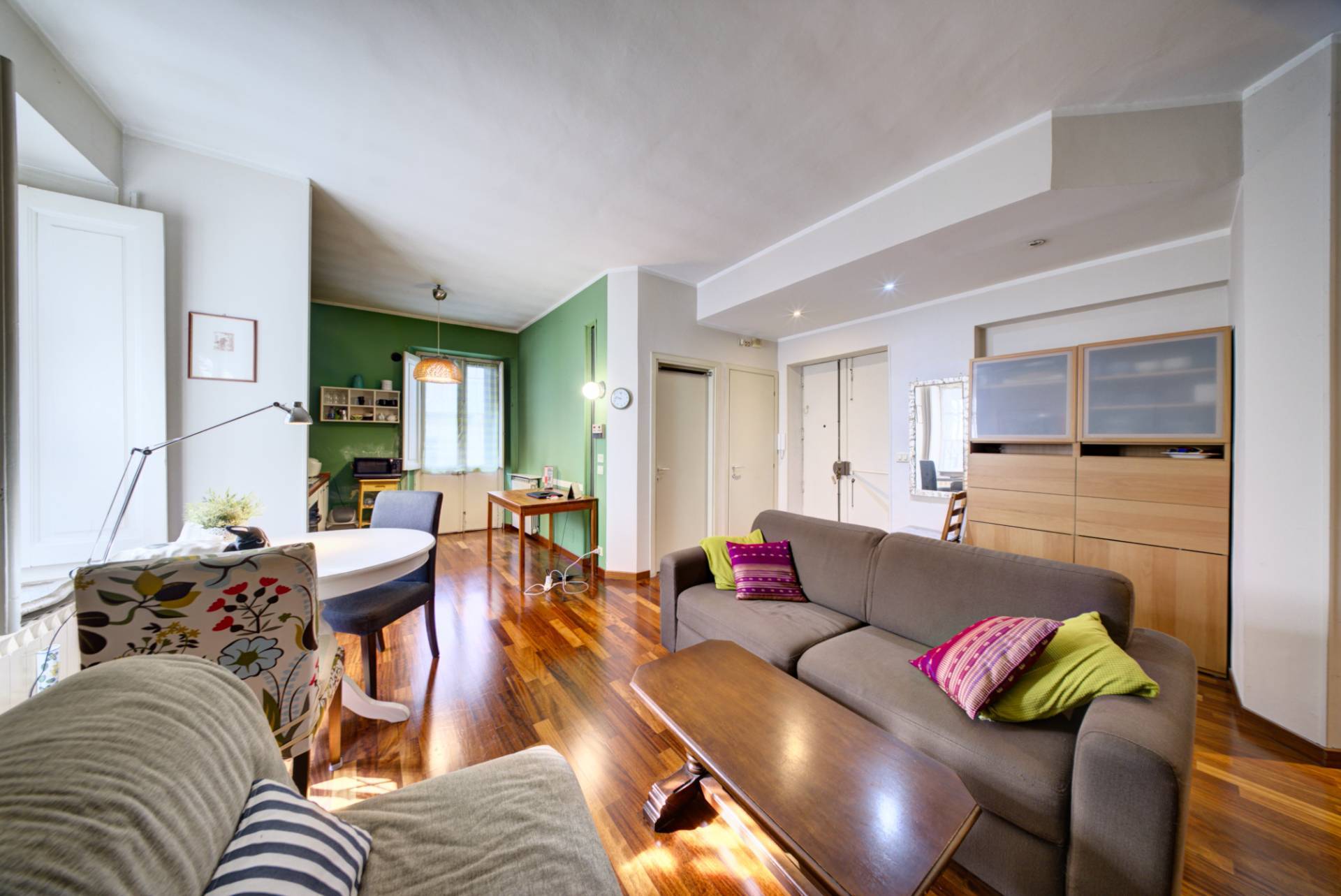 Limmobile composto da ingresso living su ampia sala con camino in marmo, cucina abitabile, una camera da letto, angolo scrivania, bagno, ripostiglio e due balconi, di cui uno con l'affaccio sull'interno cortile e l'altro su via Piffetti.
