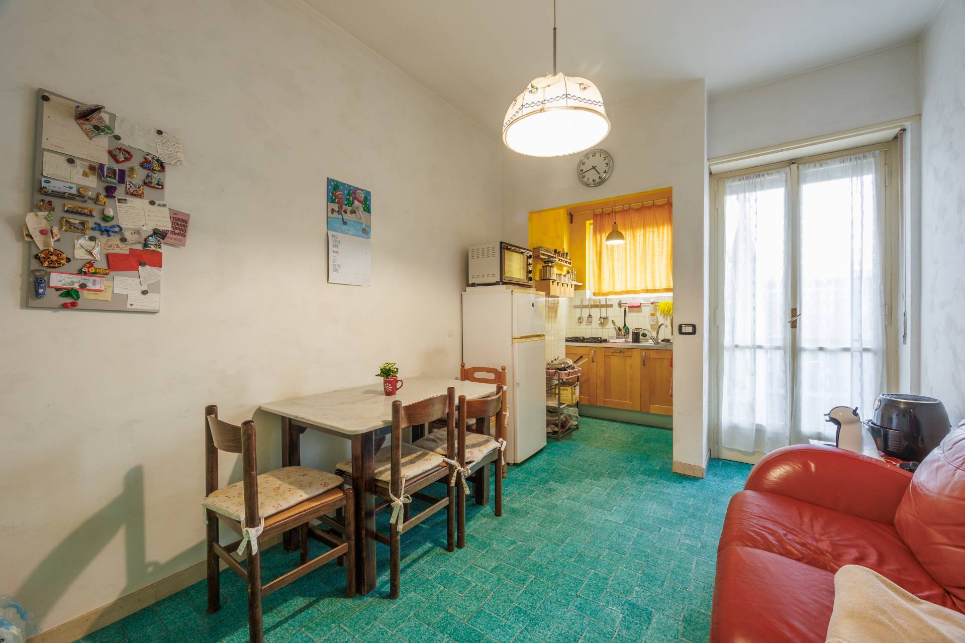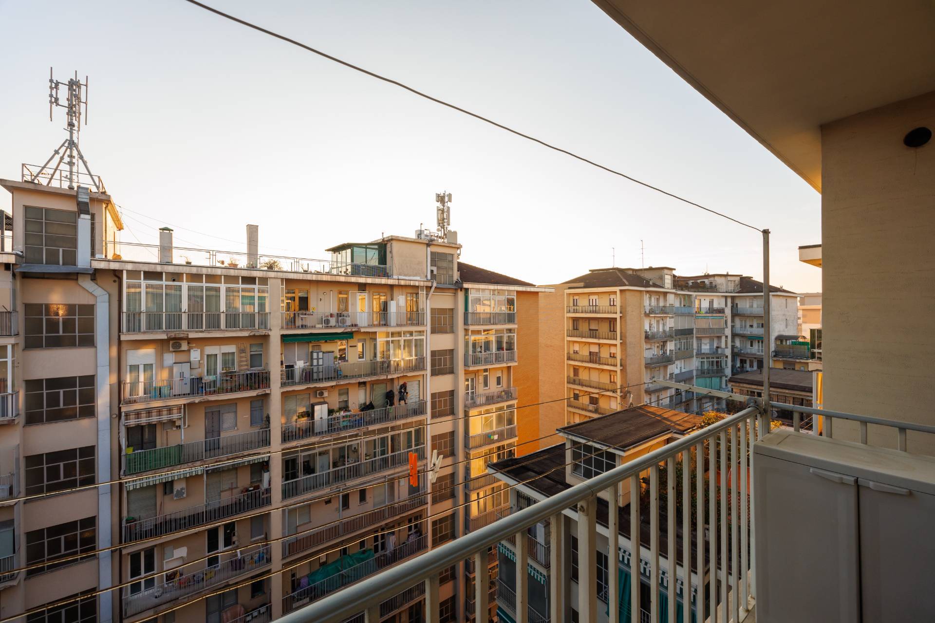 Luminoso appartamento di 78 mq c.a. con doppia esposizione e vista Superga collocato al nono ed ultimo piano di uno stabile degli anni Sessanta dotato di ascensore e servizio di portineria.