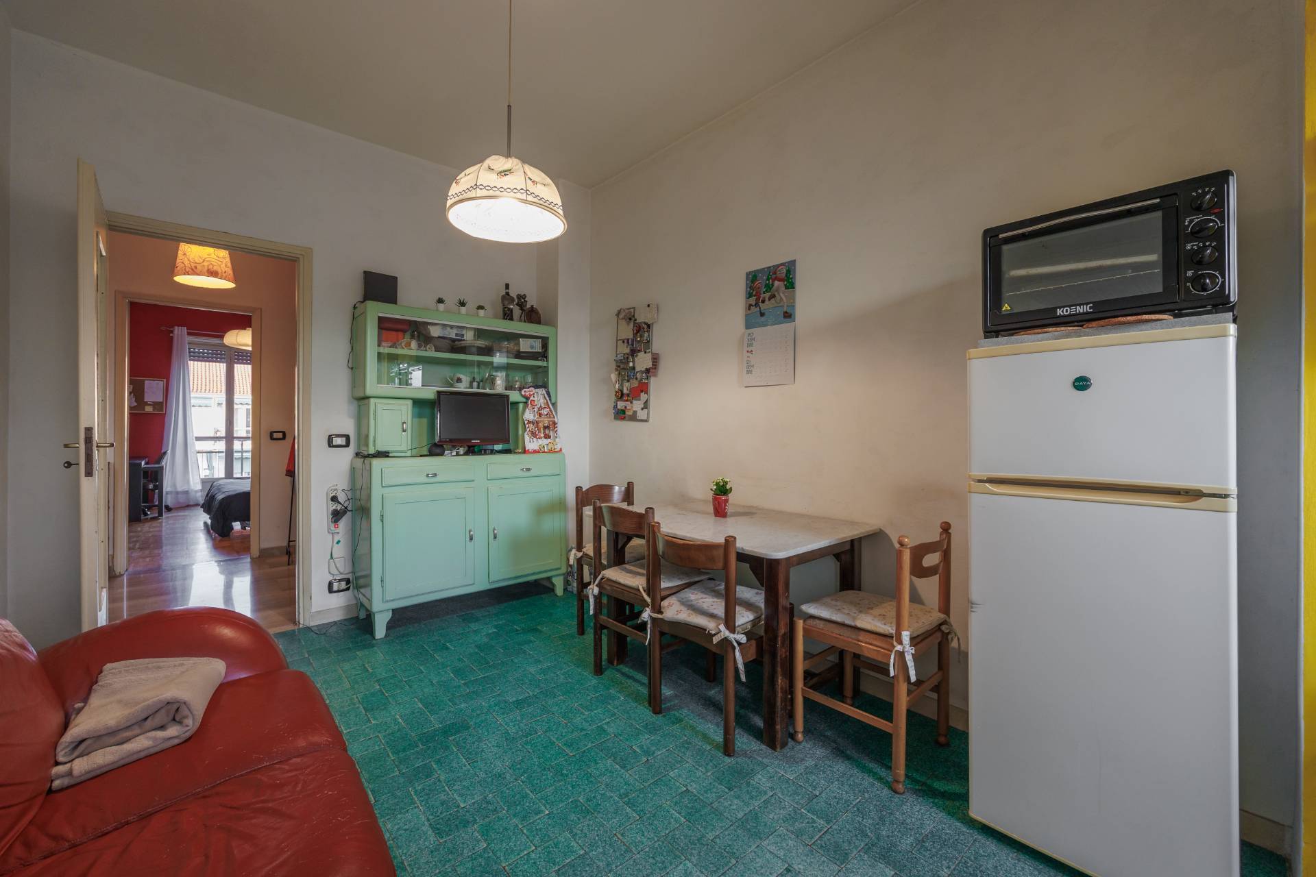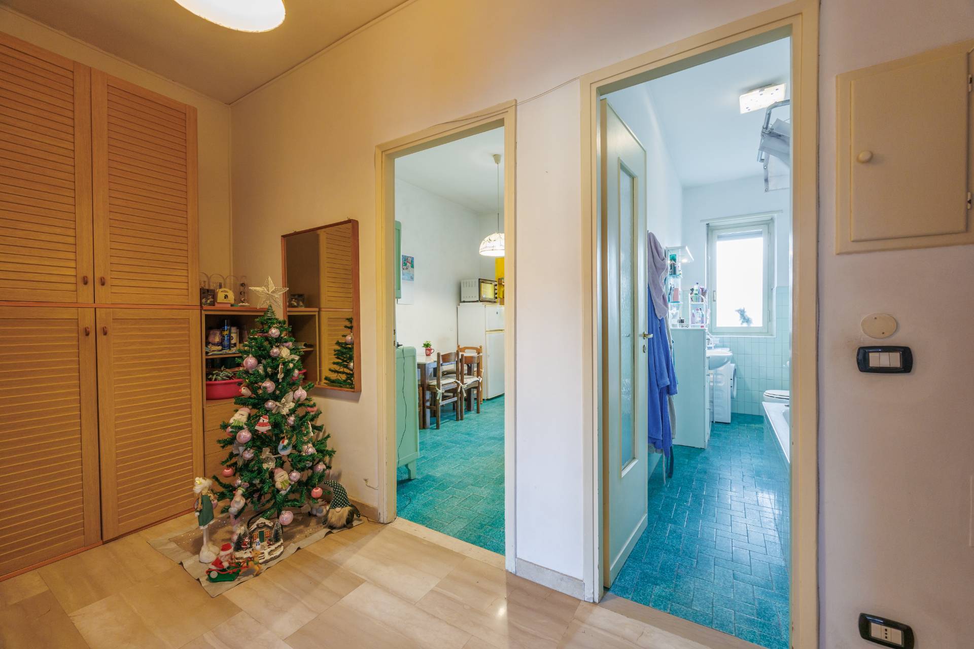 L'immobile si presenta da ristrutturare con una possibile ridistribuzione degli spazi interni e risulta composto da: ingresso su disimpegno, tinello con cucinino, due ampie camere da letto con pavimenti in parquet, un bagno e un ripostiglio; completano la propriet due balconi e una cantina di pertinenza.