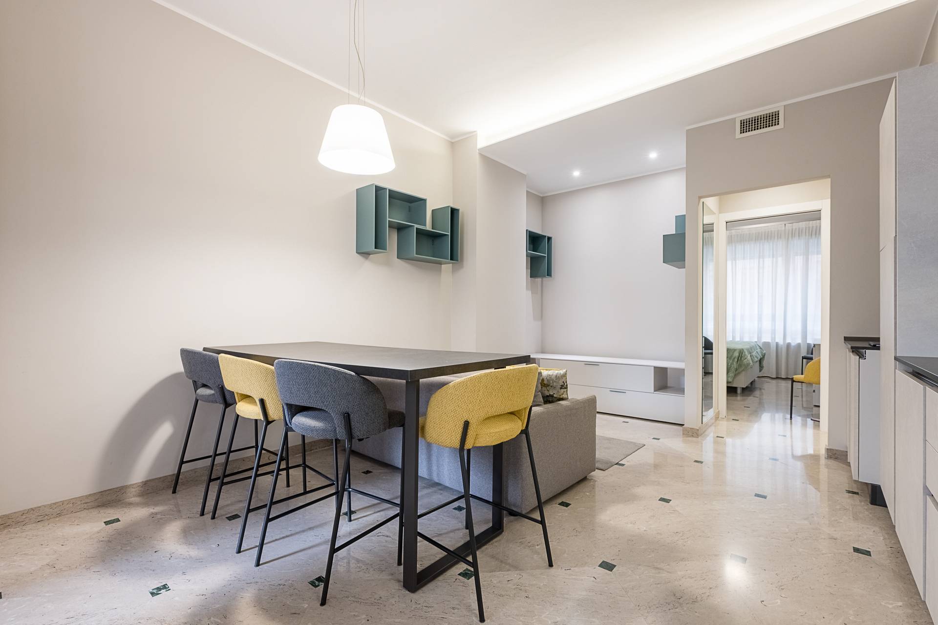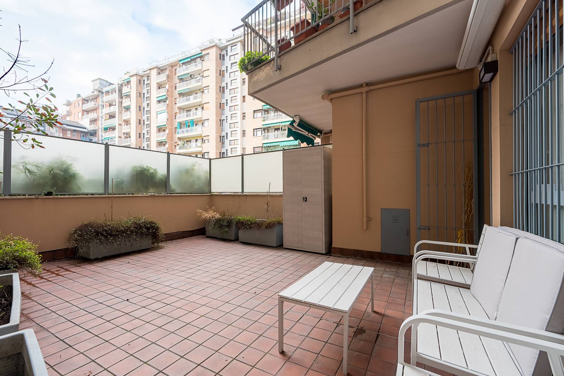 Appartamento completamente ristrutturato e arredato con terrazzo In stabile signorile con portineria ed ascensore, proponiamo in vendita uno splendido appartamento al primo piano con esclusivo terrazzo di 20 mq. L'appartamento, totalmente ristrutturato con finiture di pregio e arredato, composto da ingresso su ampio disimpegno, zona living con cucina a vista e accesso al terrazzo, un'ampia camera matrimoniale, una stanza singola/studio e un bagno.