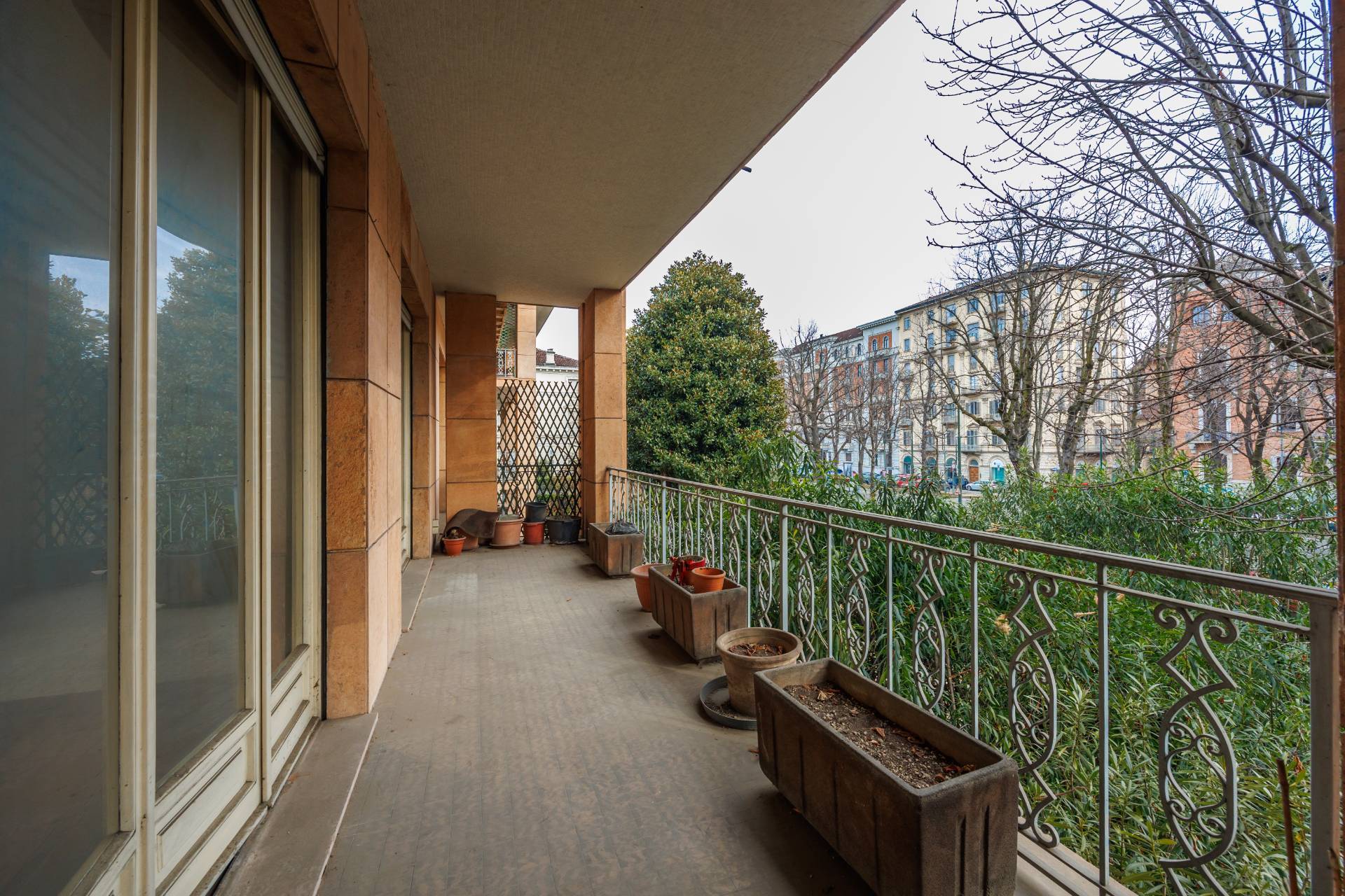 L'ampio terrazzo vivibile e il balcone con affaccio su interno corte offrono spazi esterni ideali per rilassarsi e godere della vista.