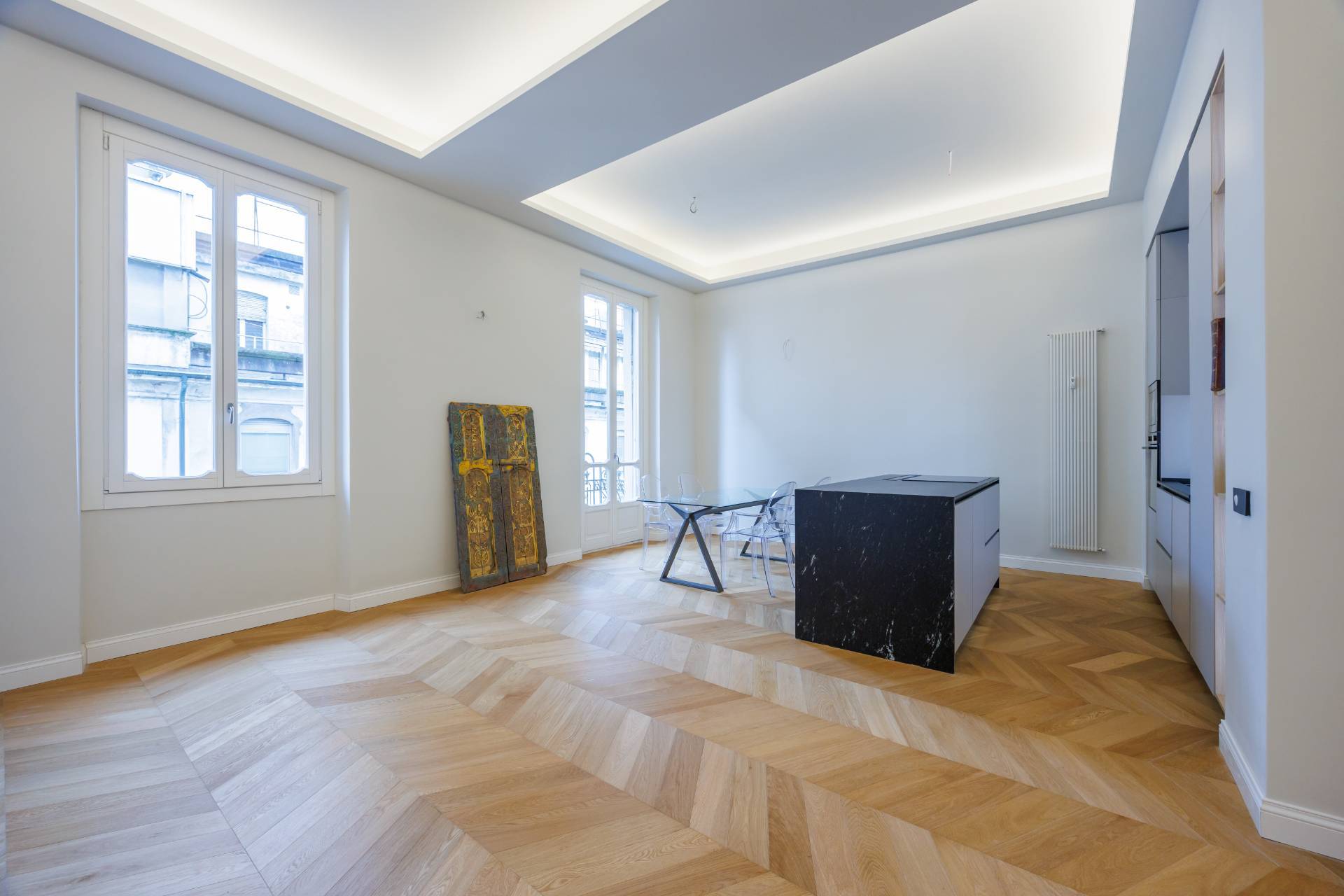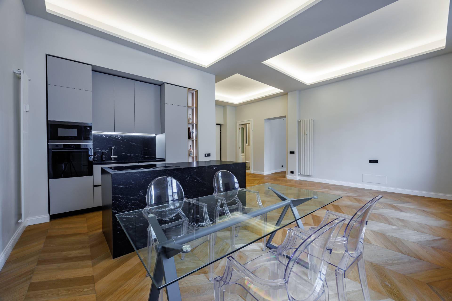 Al terzo piano di un elegante stabile depoca in Corso Duca degli Abruzzi, proponiamo un appartamento completamente ristrutturato, dove il fascino architettonico torinese si unisce a un design contemporaneo e funzionale.