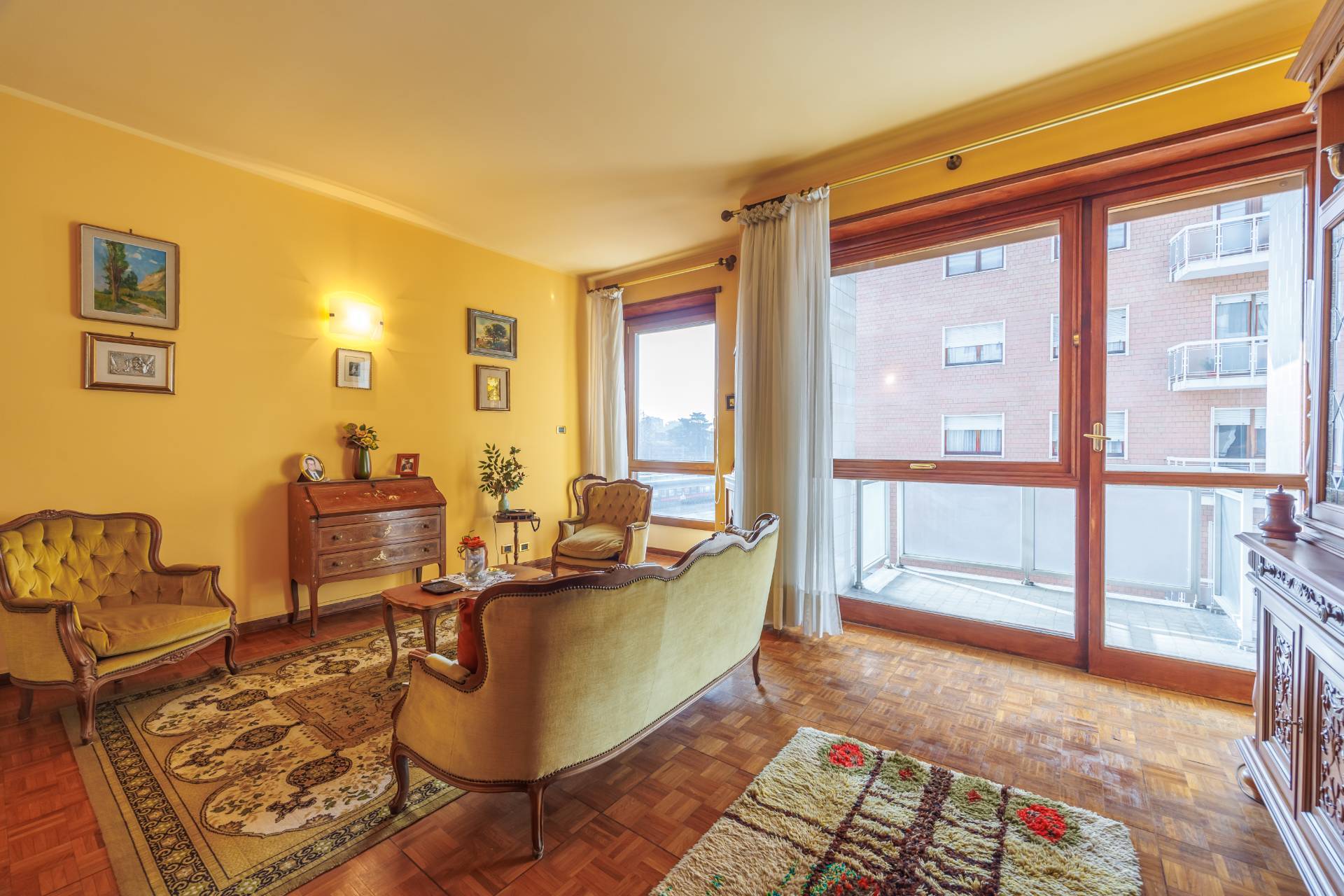 Appartamento di 114 mq situato al secondo piano di un edificio residenziale signorile in zona Crocetta dotato di ascensore e portineria, composto da ampio ingresso con armadio a muro e ripostiglio, grande e luminoso salone che pu ospitare zona relax e sala da pranzo, cucina abitabile con balcone vivibile, due camere di cui una matrimoniale e l'altra con zona cabina armadio e due bagni finestrati, presente una cantina di pertinenza al primo piano interrato.