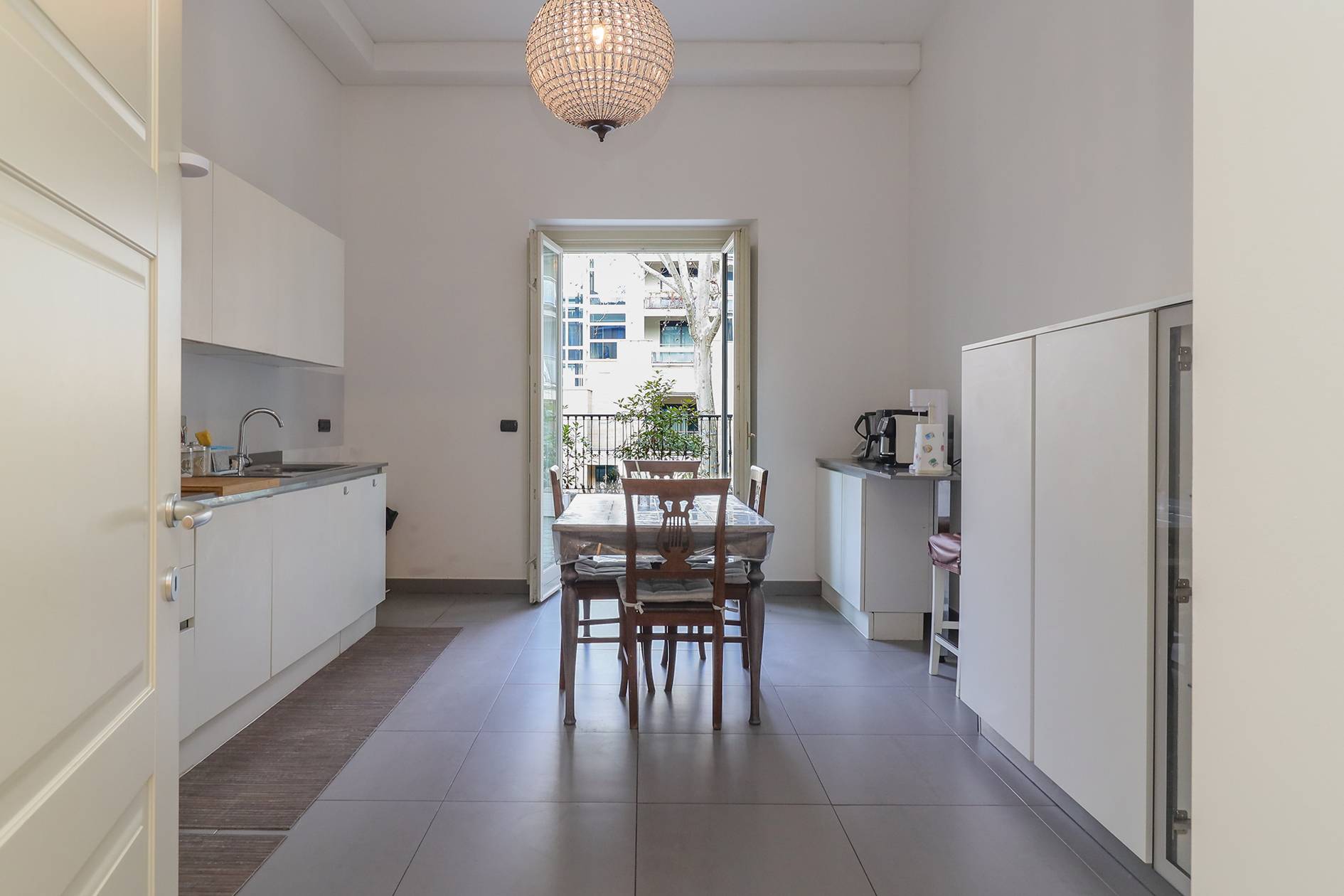 La cucina abitabile, separata e funzionale, si apre su uno splendido terrazzo, elemento di grande pregio che offre un godibile spazio esterno.
