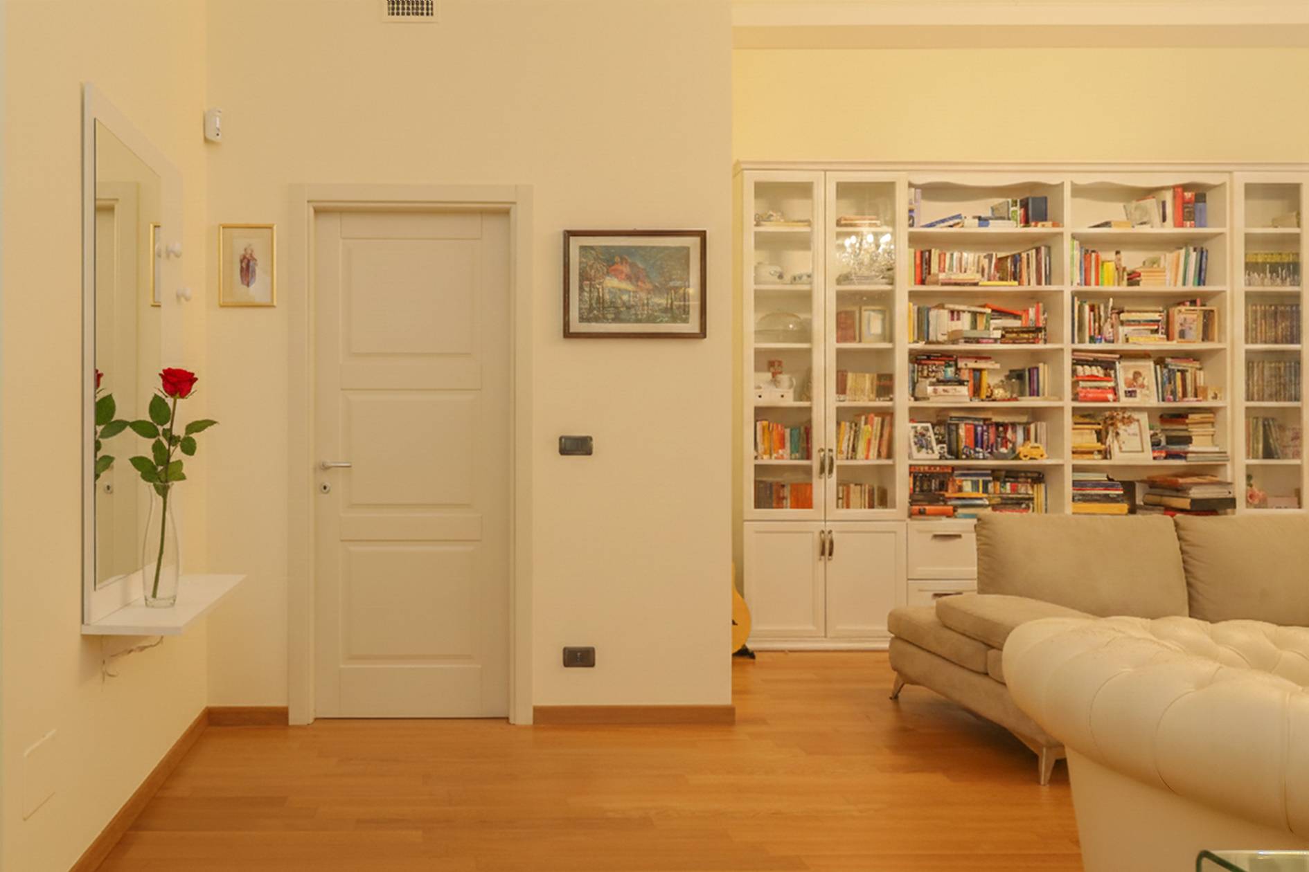 Lingresso introduce a un ampio soggiorno, caratterizzato da altezze generose che amplificano la luminosit naturale.