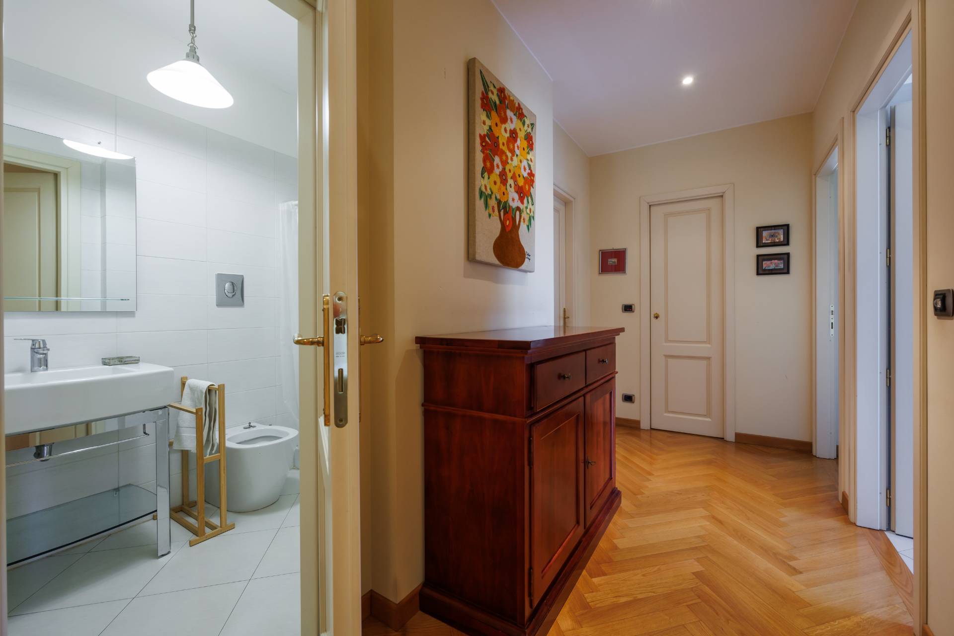 La suite padronale valorizzata da un bagno dedicato, mentre gli altri ambienti bagno, eleganti e funzionali, completano la propriet insieme a una cucina abitabile, perfettamente organizzata, un pratico ripostiglio e un locale tecnico.