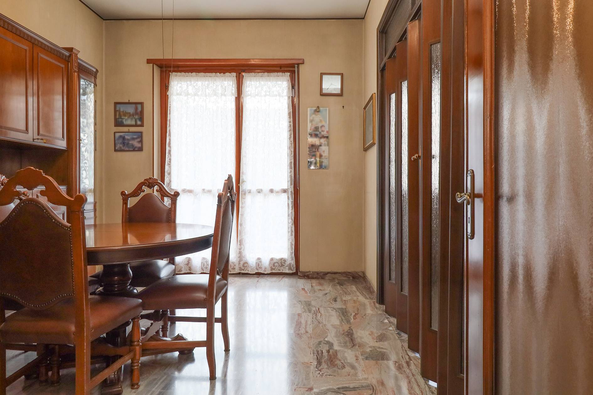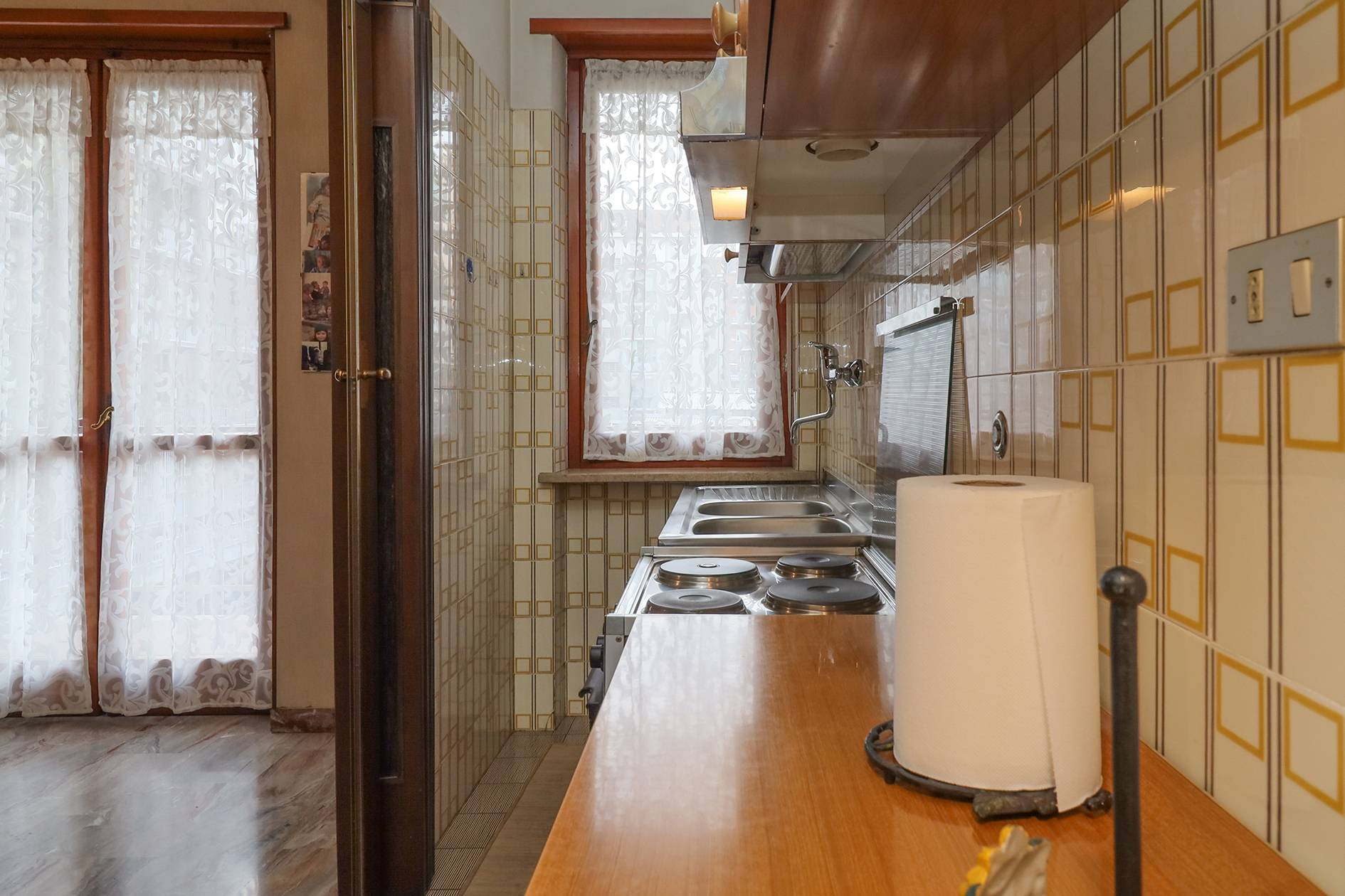 Composto da ampio ed accolgiente ingresso, tinello con cucinino, due camere con parquet, bagno e sgabuzzino.