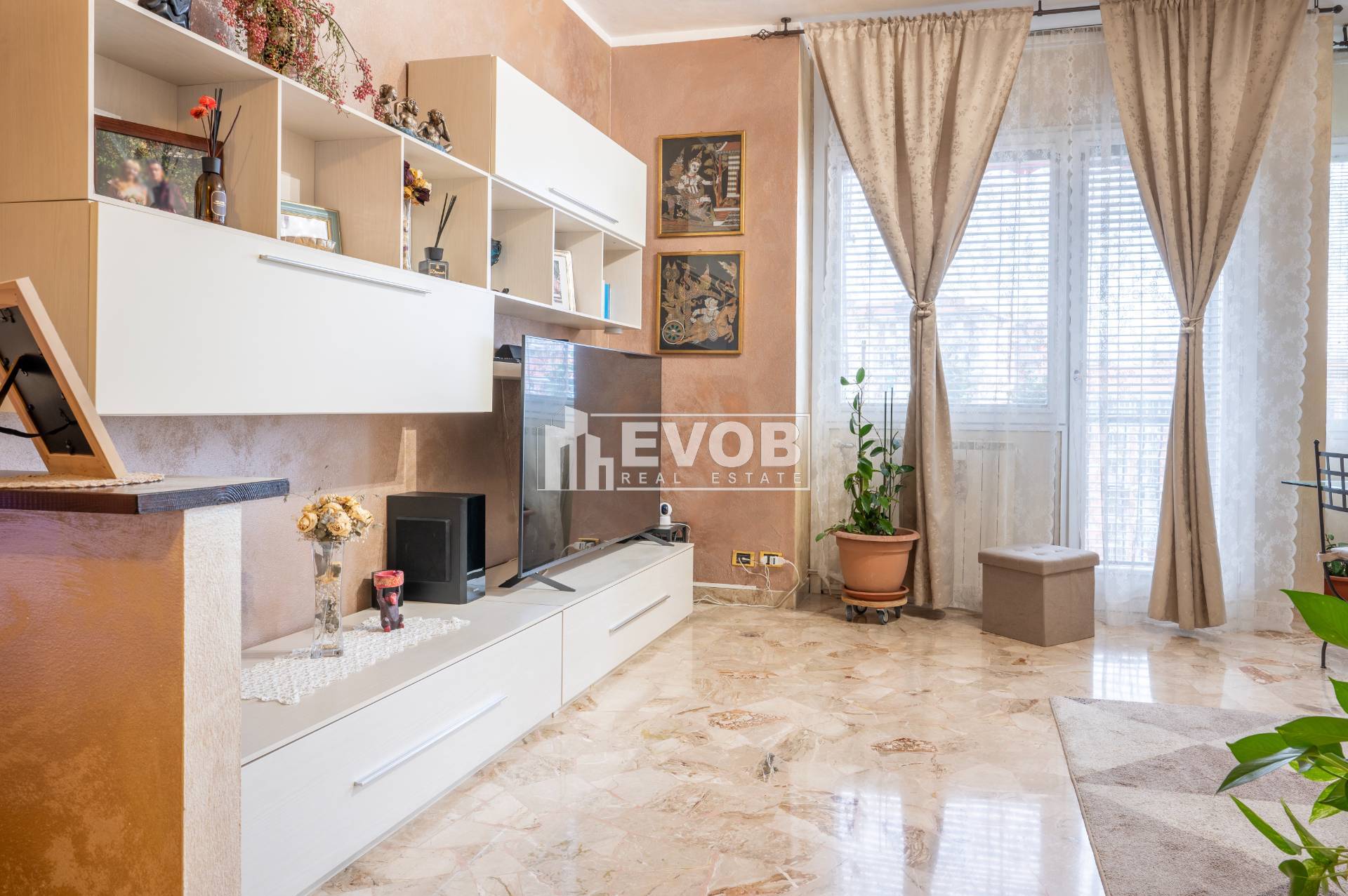 Limmobile, in ottime condizioni e senza necessit di lavori, si compone di ingresso su spazioso soggiorno, cucina abitabile, due camere da letto, bagno finestrato, lavanderia e balcone vivibile.