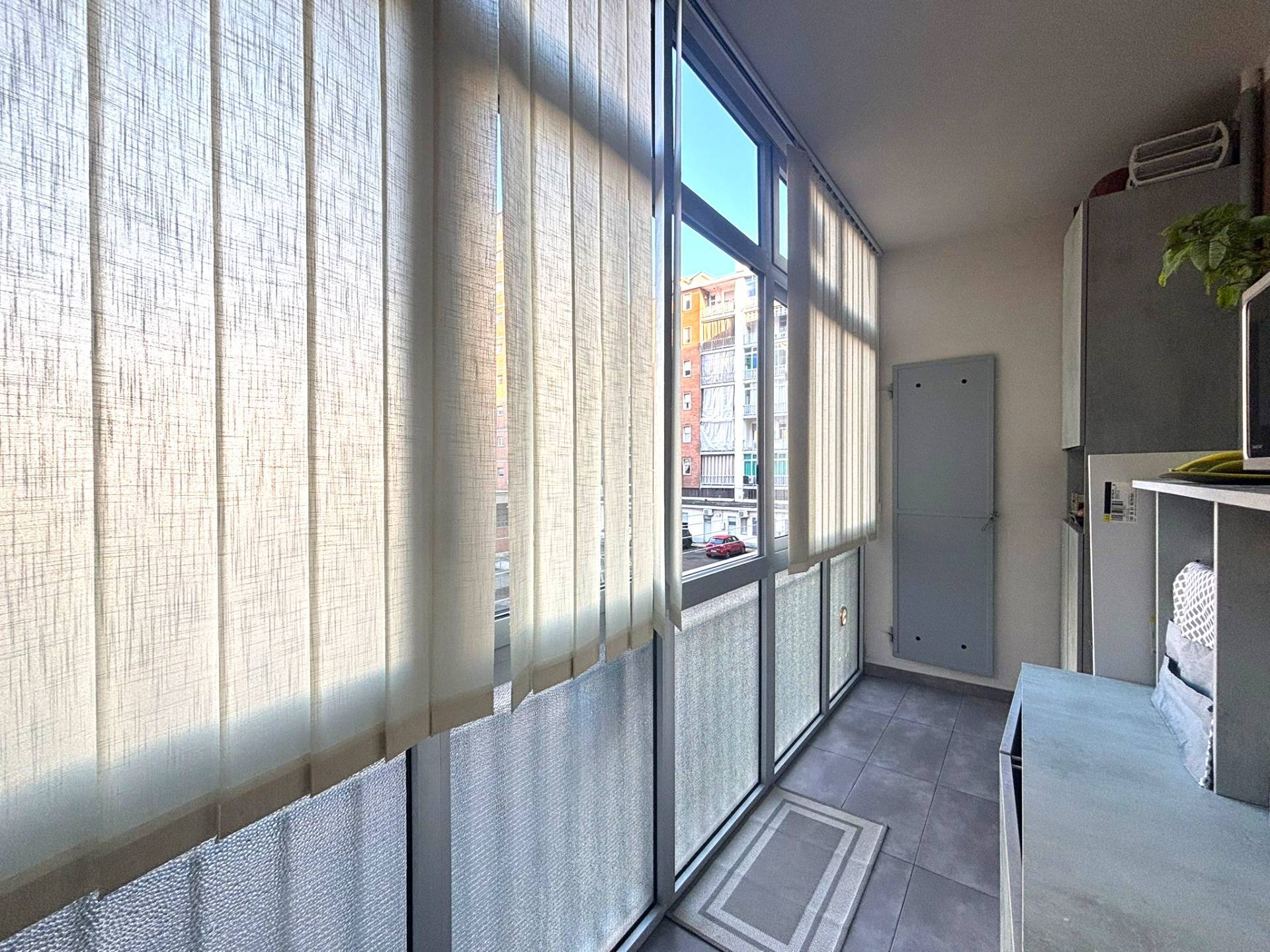 Doppia esposizione con due balconi, di cui uno con veranda, che affacciano rispettivamente sull'interno cortile e su Piazza Guala.