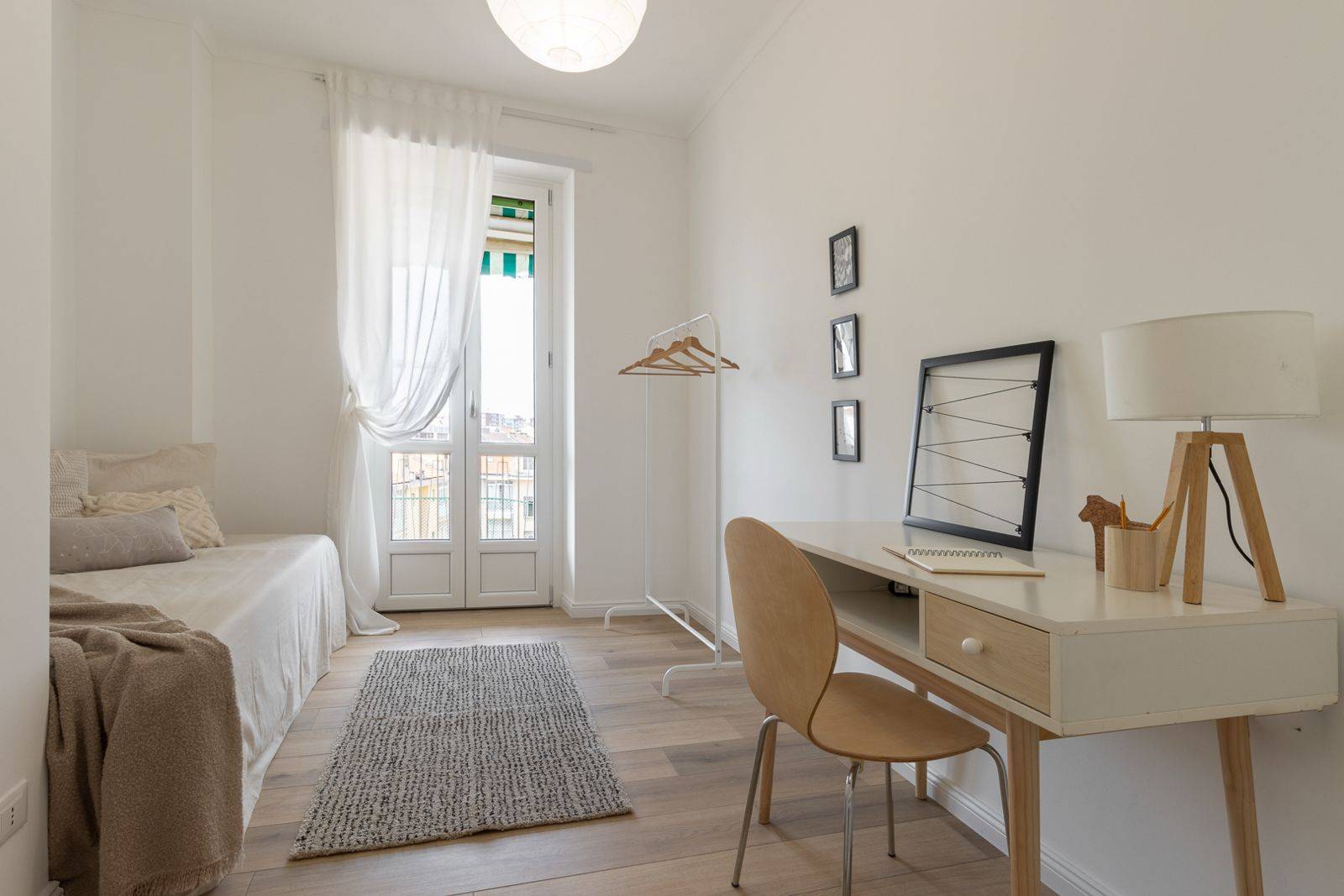 Doppia esposizione con due balconi, il primo con accesso da entrambe le camere con affaccio sull'interno cortile ed il secondo, nella zona giorno, che affaccia su corso Montegrappa.