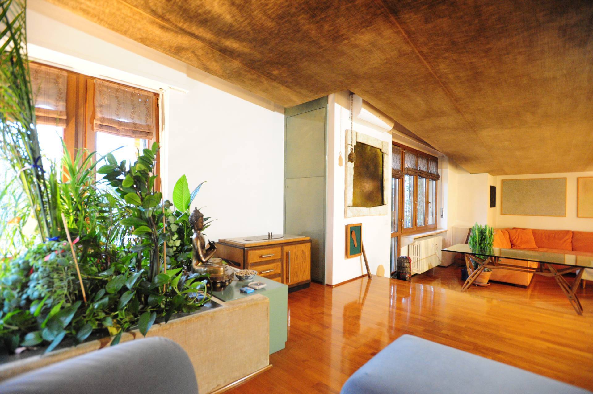 L'appartamento si presenta in ottime condizioni, molto luminoso, accoglie subito con un'atmosfera ricercata, calda e moderna frutto di un'attenta progettazione con giochi di prospettive e grazie all'uso predominante di legno e finiture di qualit.
