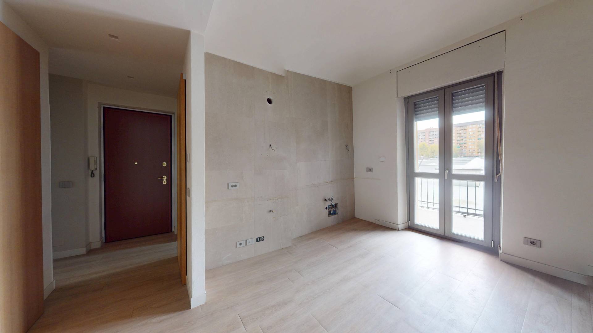 L'immobile, composto da ingresso su disimpegno, due ampie camere da letto, zona giorno con cucina a vista, due armadi a muro e bagno con finestra.