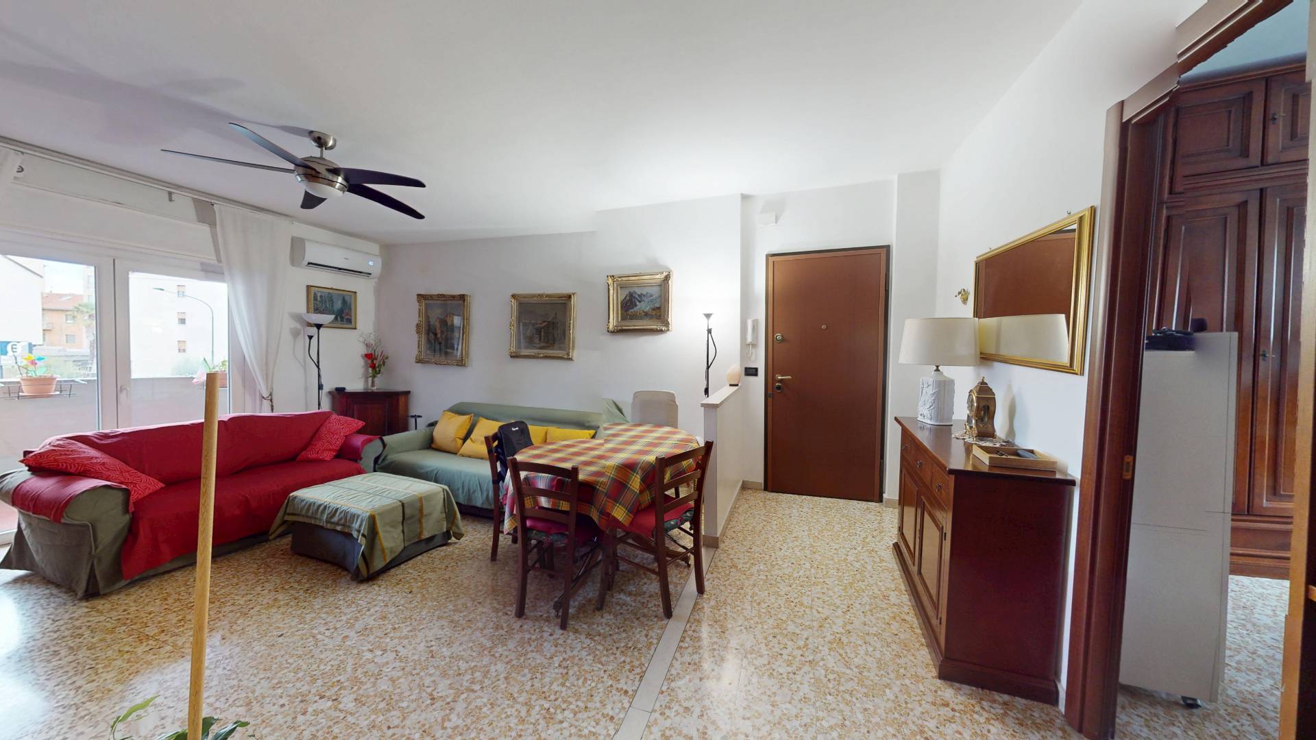 L'immobile, in ottime condizioni interne, composto da ingresso, ampio soggiorno con cucinino, tre camere, ripostiglio e bagno con antibagno.