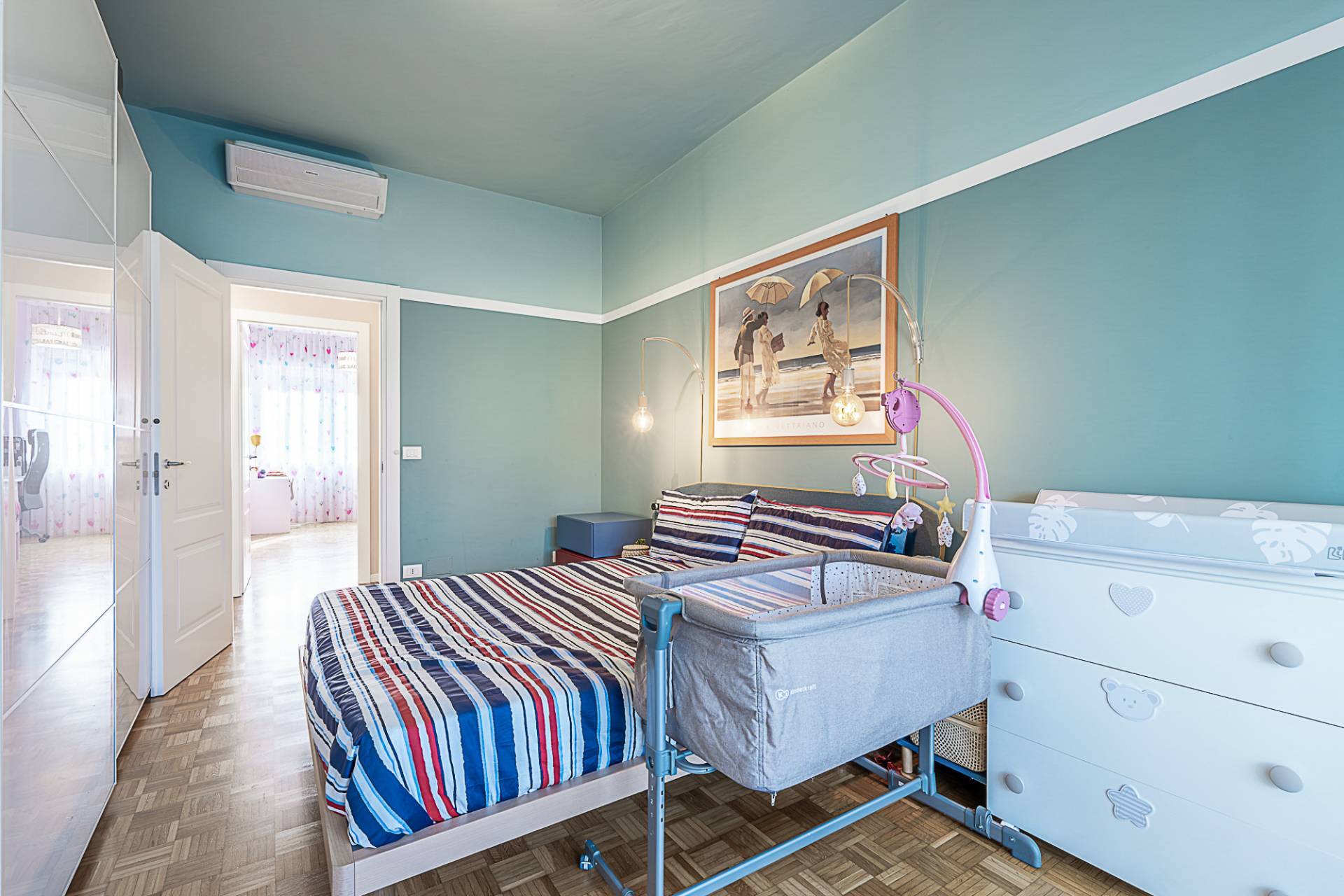 L'appartamento dotato di portoncino blindato e di un sistema di climatizzazione per le giornate pi calde.