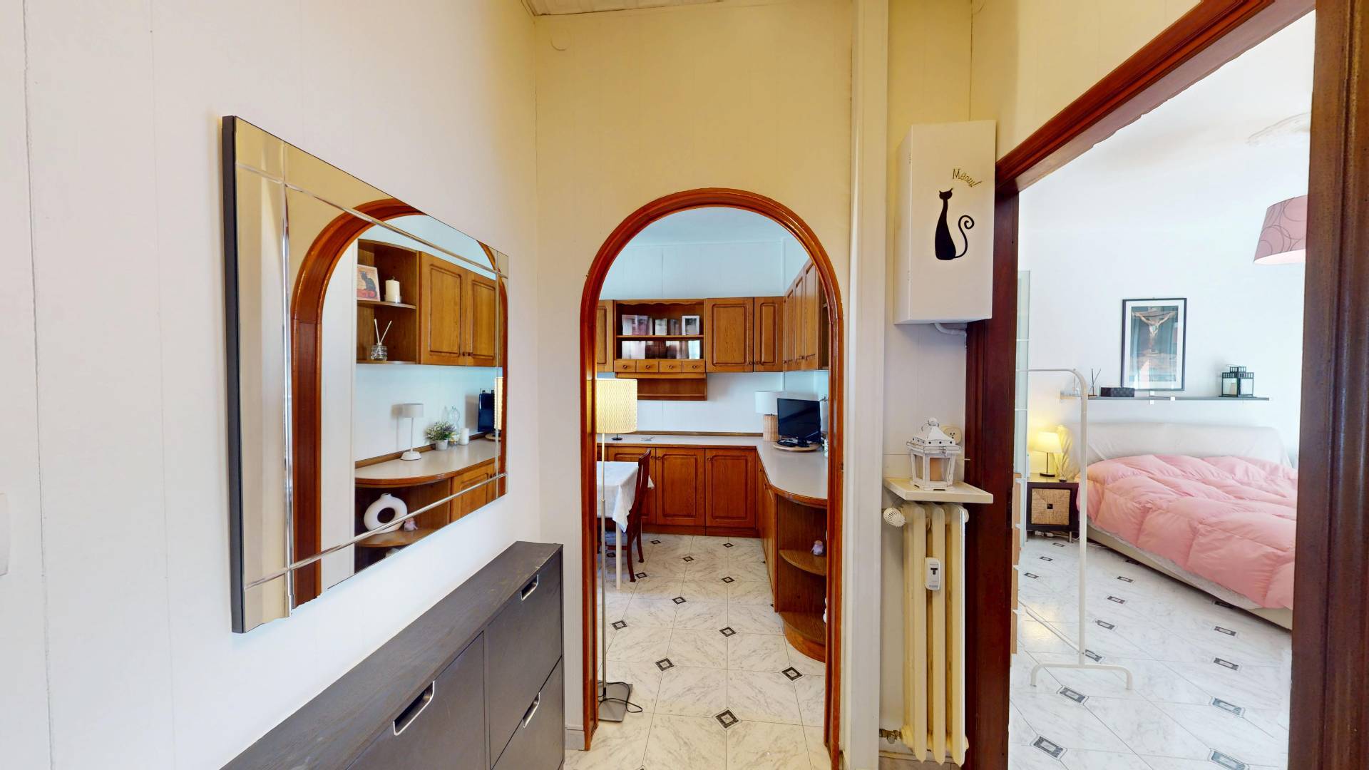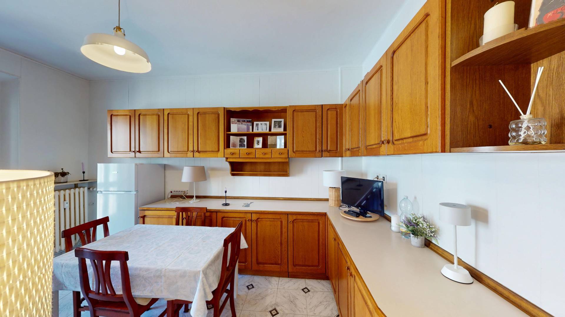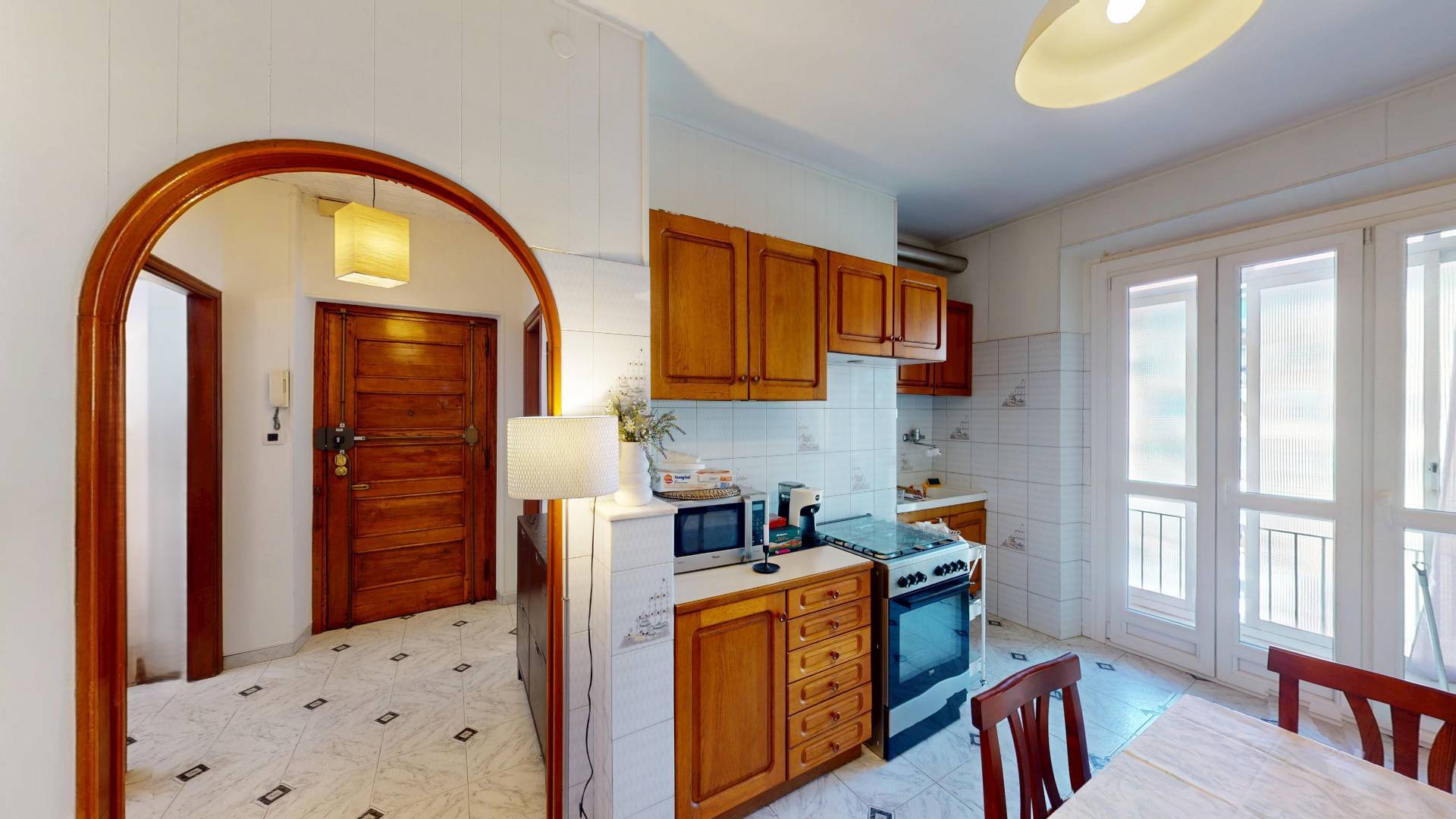 L'immobile, in buone condizioni interne, composto da ingresso su disimpegno, cucina abitabile, due camere da letto, di cui una adibita a soggiorno e bagno con finestra.