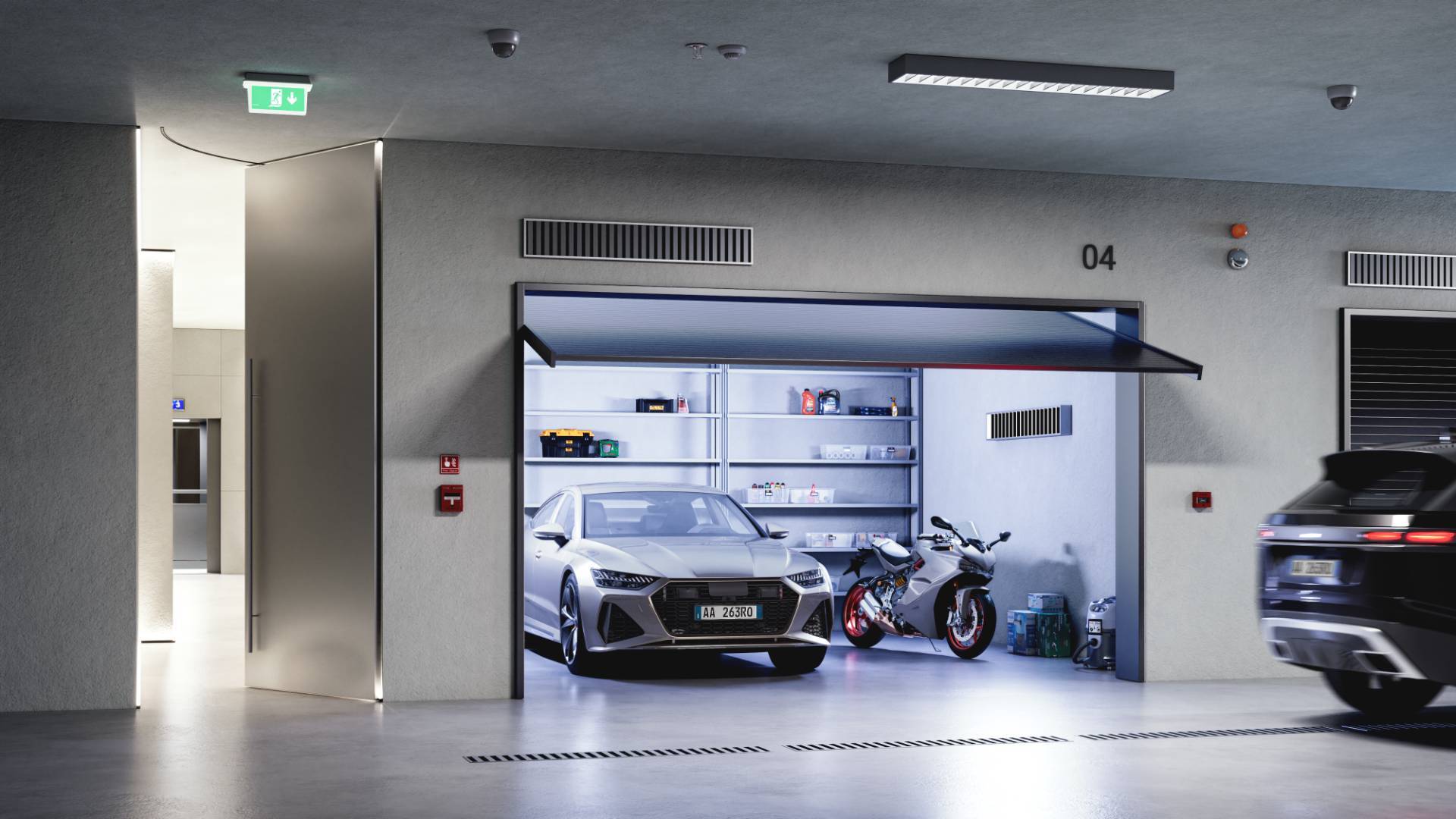 Le autorimesse interrate saranno dotate di ascensore con sbarco diretto in ogni singola unit abitativa e sono previsti posti auto esterni.