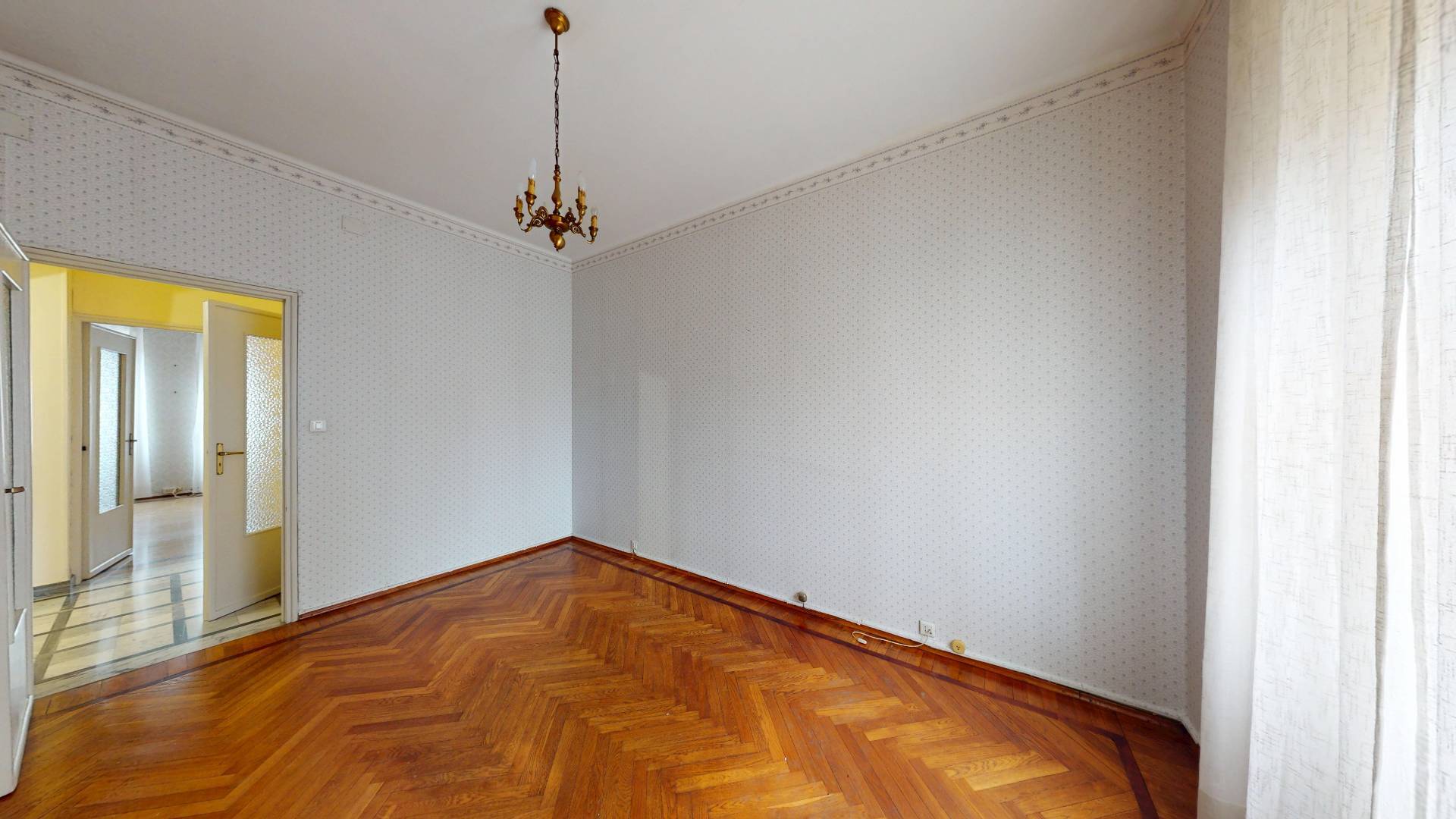 L'appartamento gode di una doppia esposizione con un balcone che affaccia sull'interno cortile.