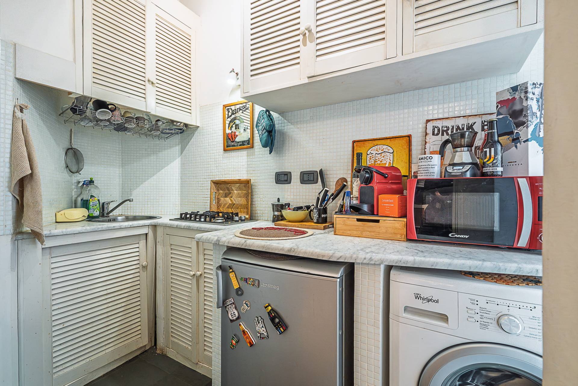 Limmobile, ristrutturato completamente nel 2010, si trova al secondo piano senza ascensore, ed composto da ingresso su salotto, cucinino abitabile con accesso a un lungo balcone verso interno corte, disimpegno, ampio bagno finestrato e camera da letto matrimoniale, anchessa con accesso al balcone tramite unampia porta finestra.