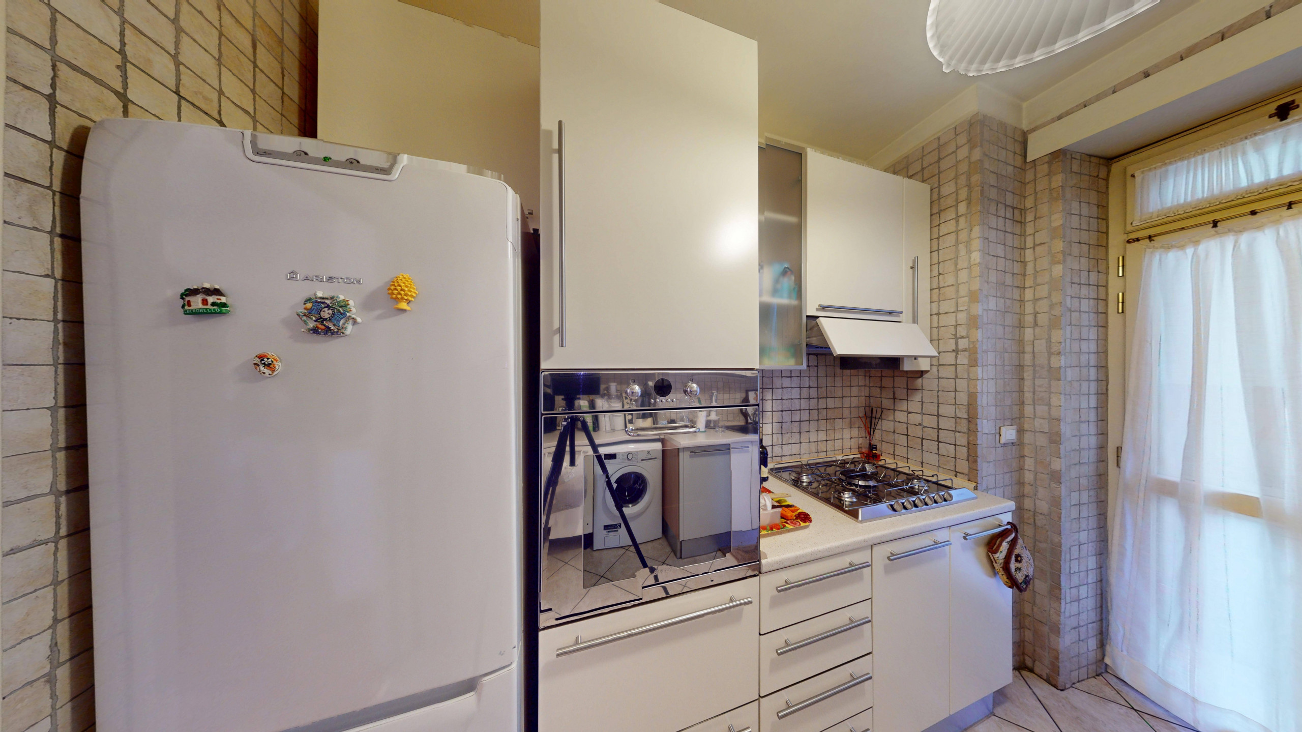 L'immobile composto da ingresso su soggiorno doppio, cucina abitabile, camera da letto, ulteriore stanza adibita a cabina armadi, locale lavanderia e bagno con finestra.