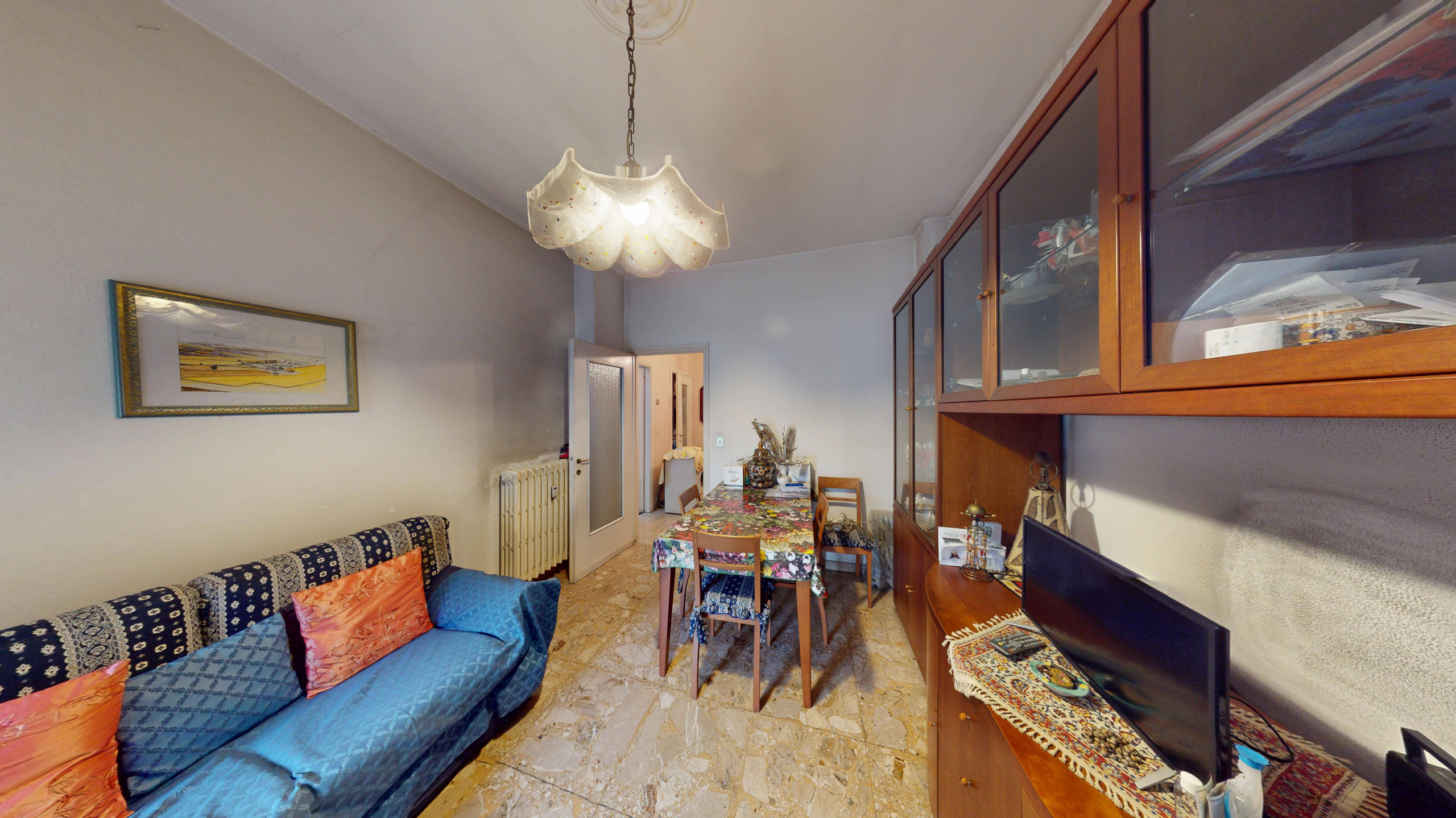 L'immobile, da personalizzare, cos composto: ingresso su disimpegno, ampia zona giorno con cucinino, due camere da letto e bagno con finestra.